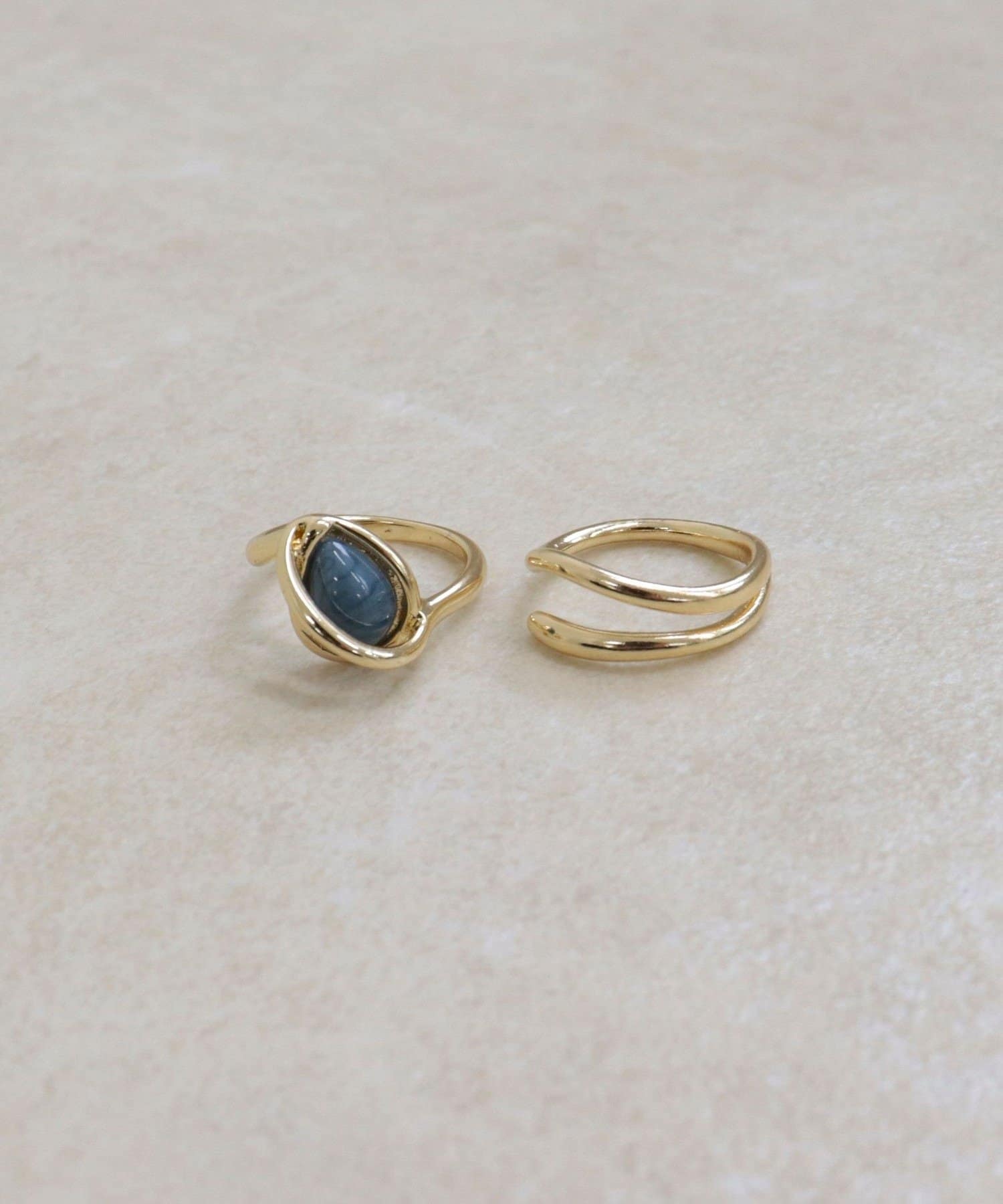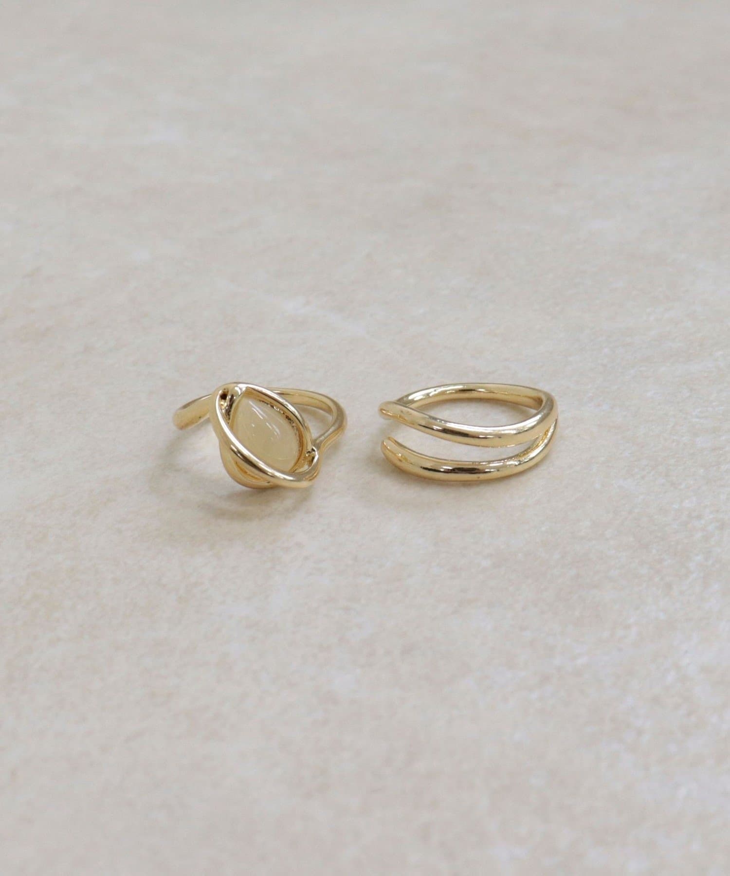 ・上品なフェイクストーンとニュアンス感のあるラインが特徴の2セットリング