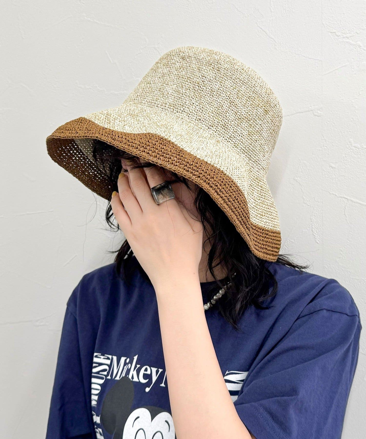 ・つばの淵がバイカラーデザインになったペーパーハットです
