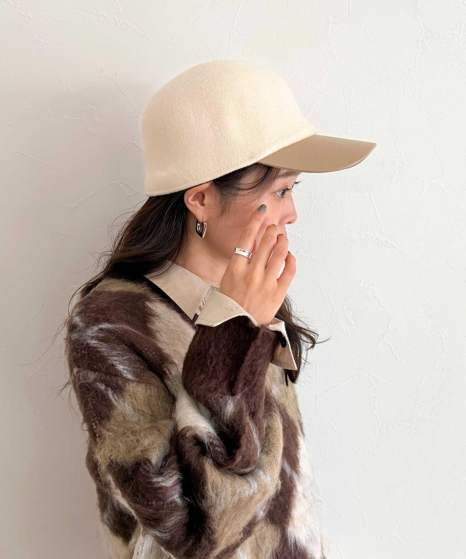 秋冬コーデのアクセントにオススメなフェルトコンビキャップ