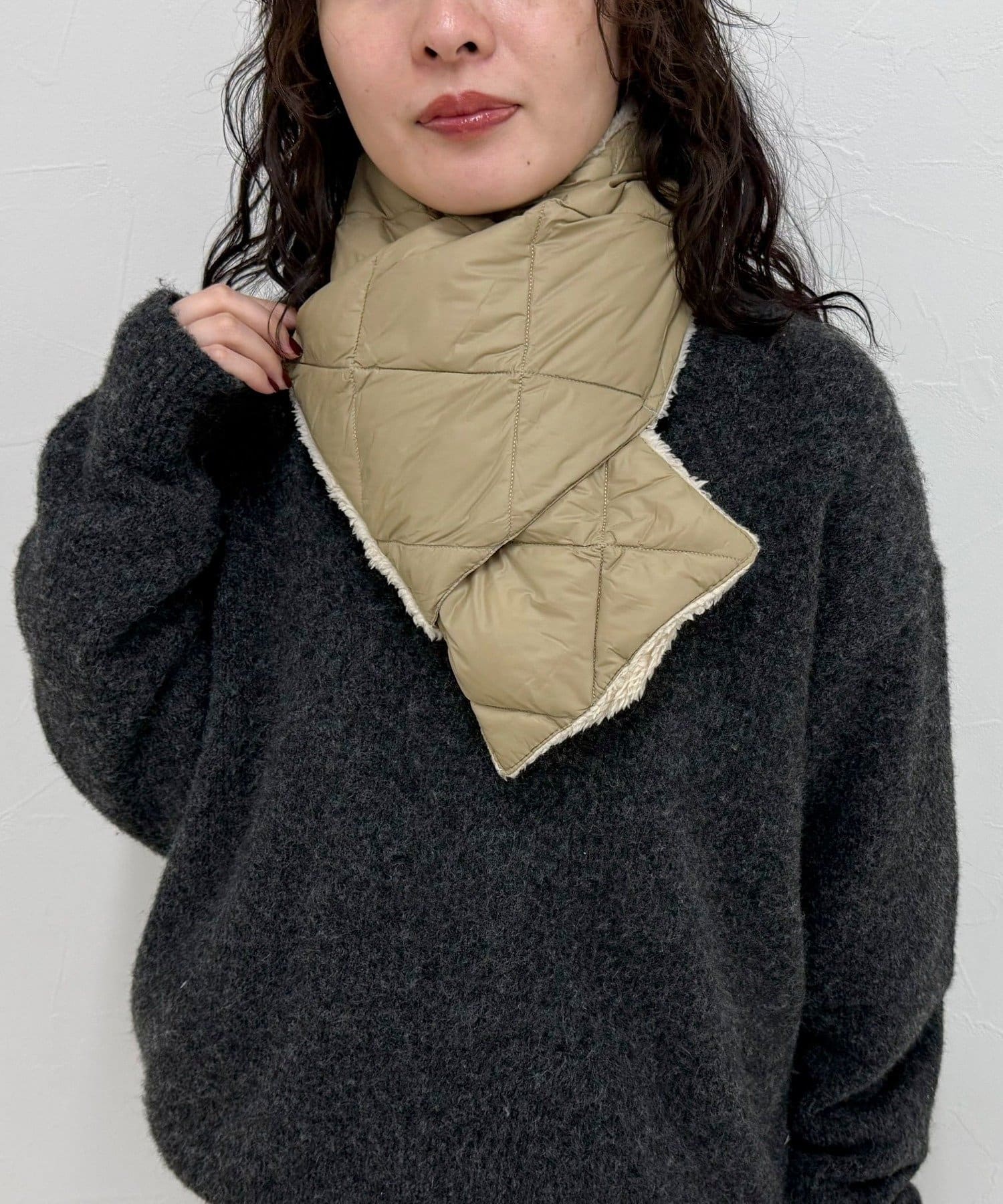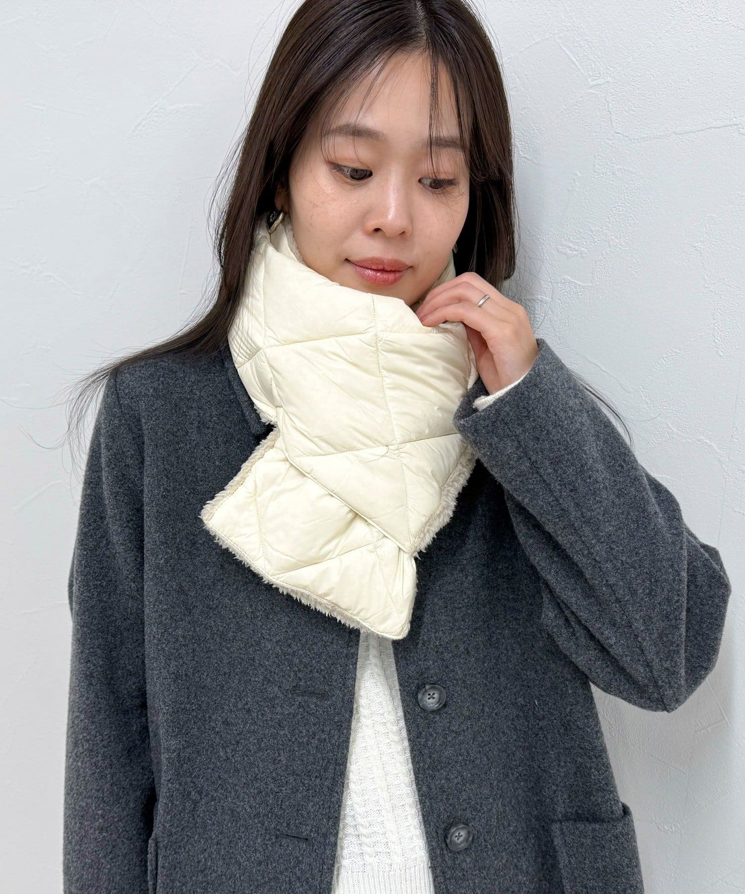 2種類の素材感を楽しめる!リバーシブルダウンマフラー