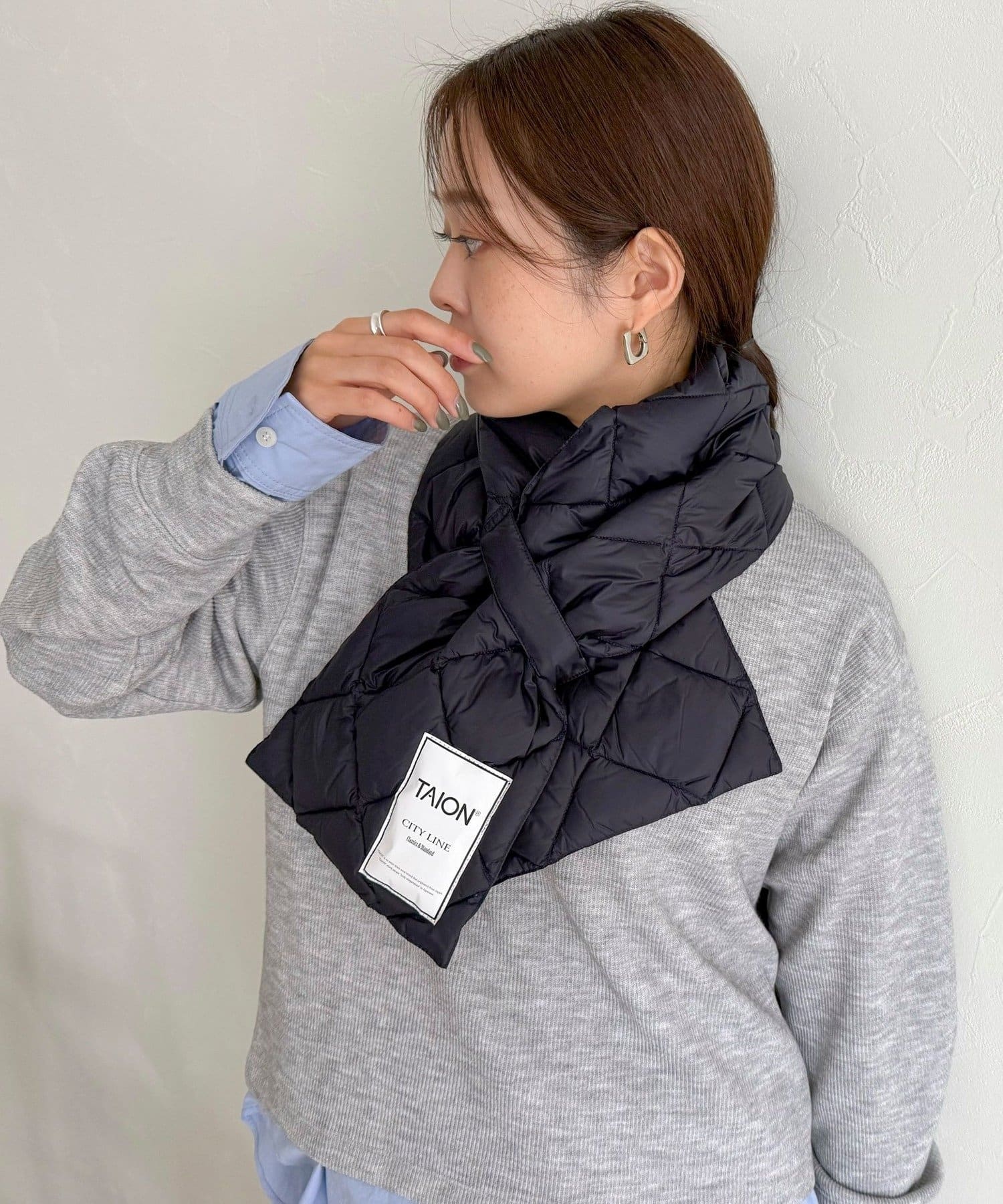 ・ダイヤ型のキルティング柄で首元を上品に演出するCITY LINEのダウンマフラー