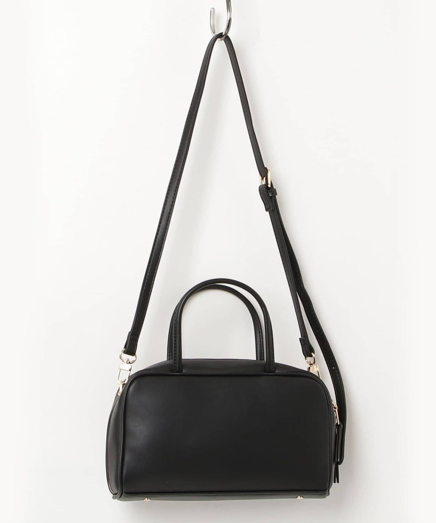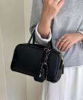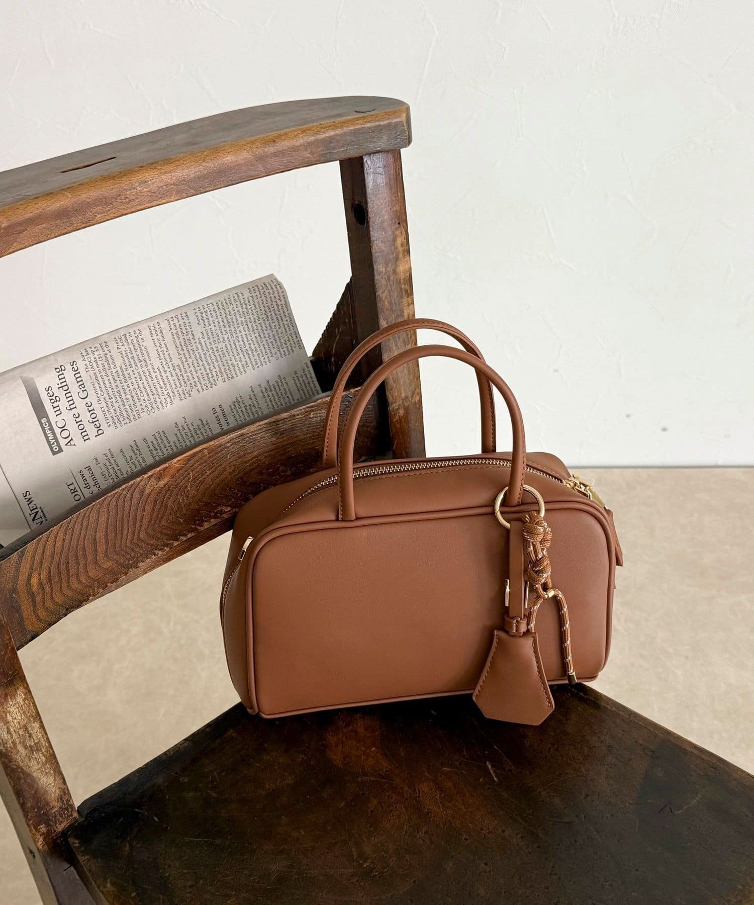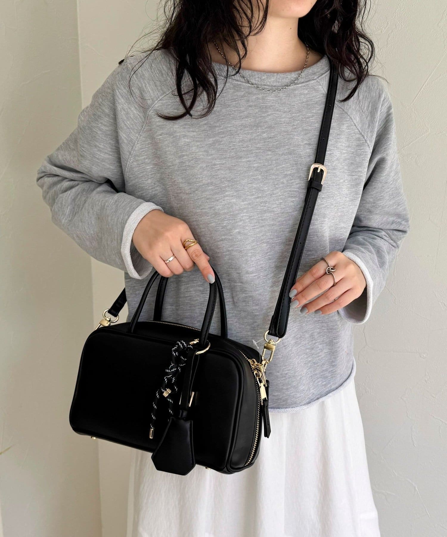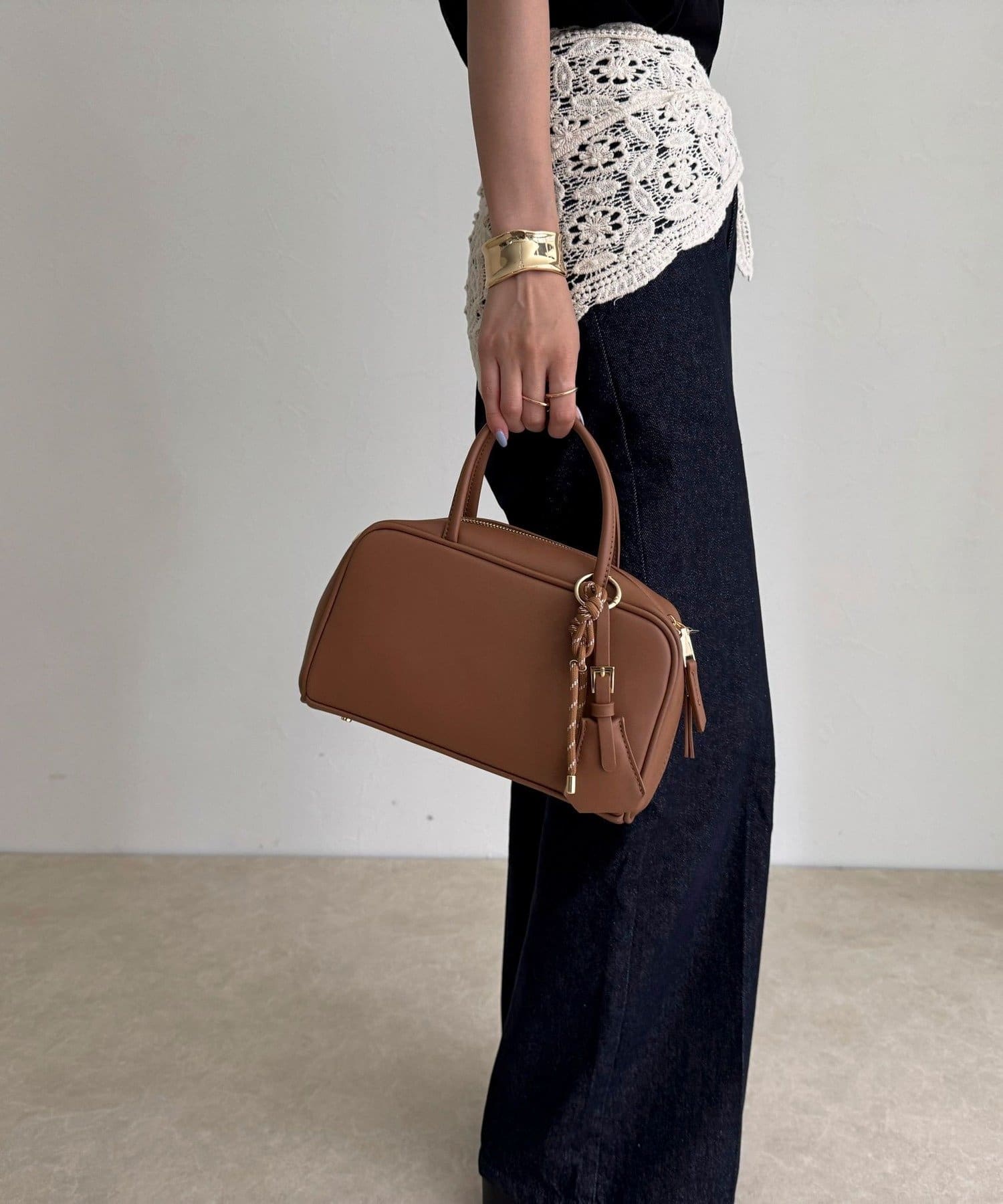 ・シンプルな横長ボストンにトレンド感のあるチャームをプラス