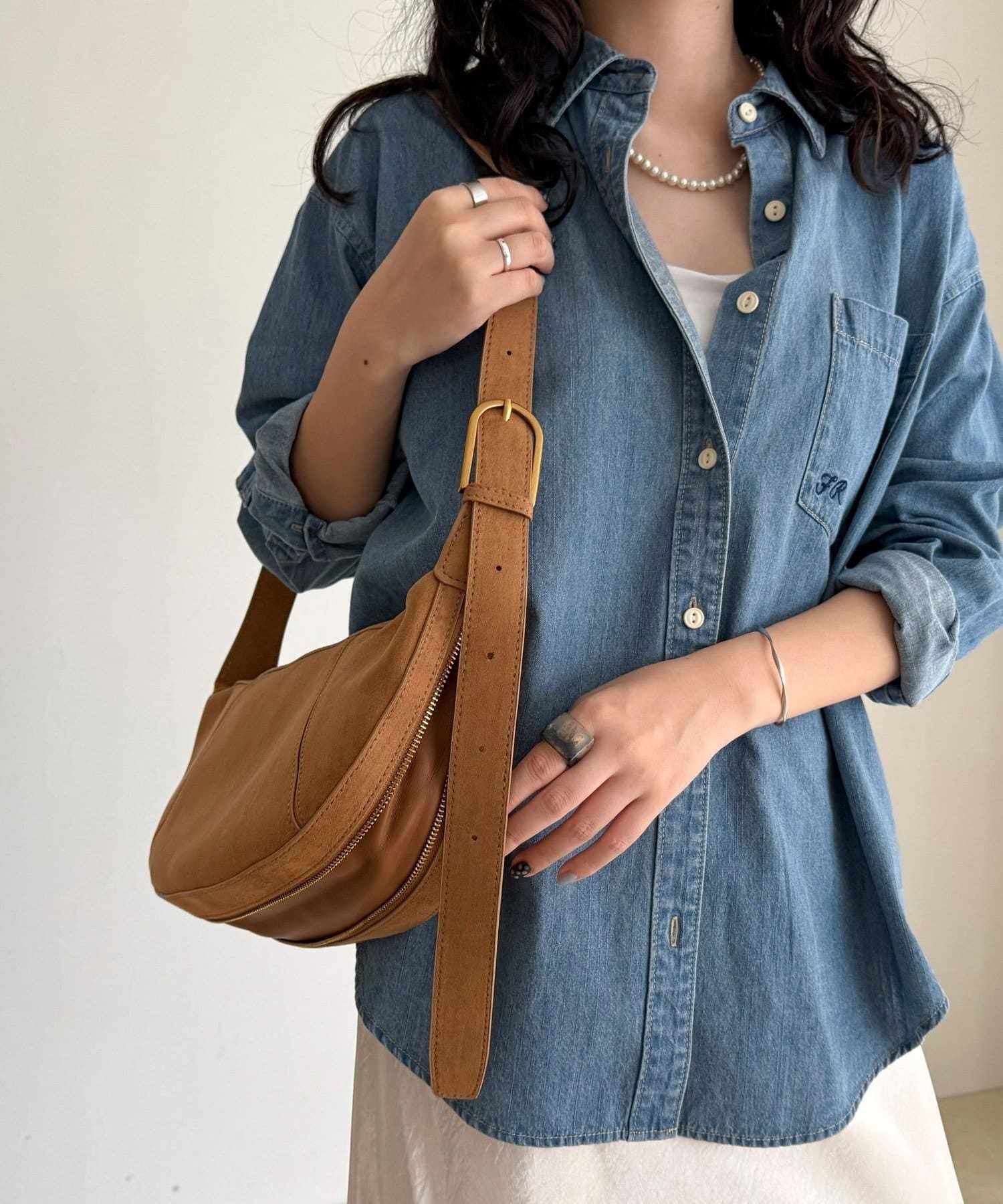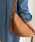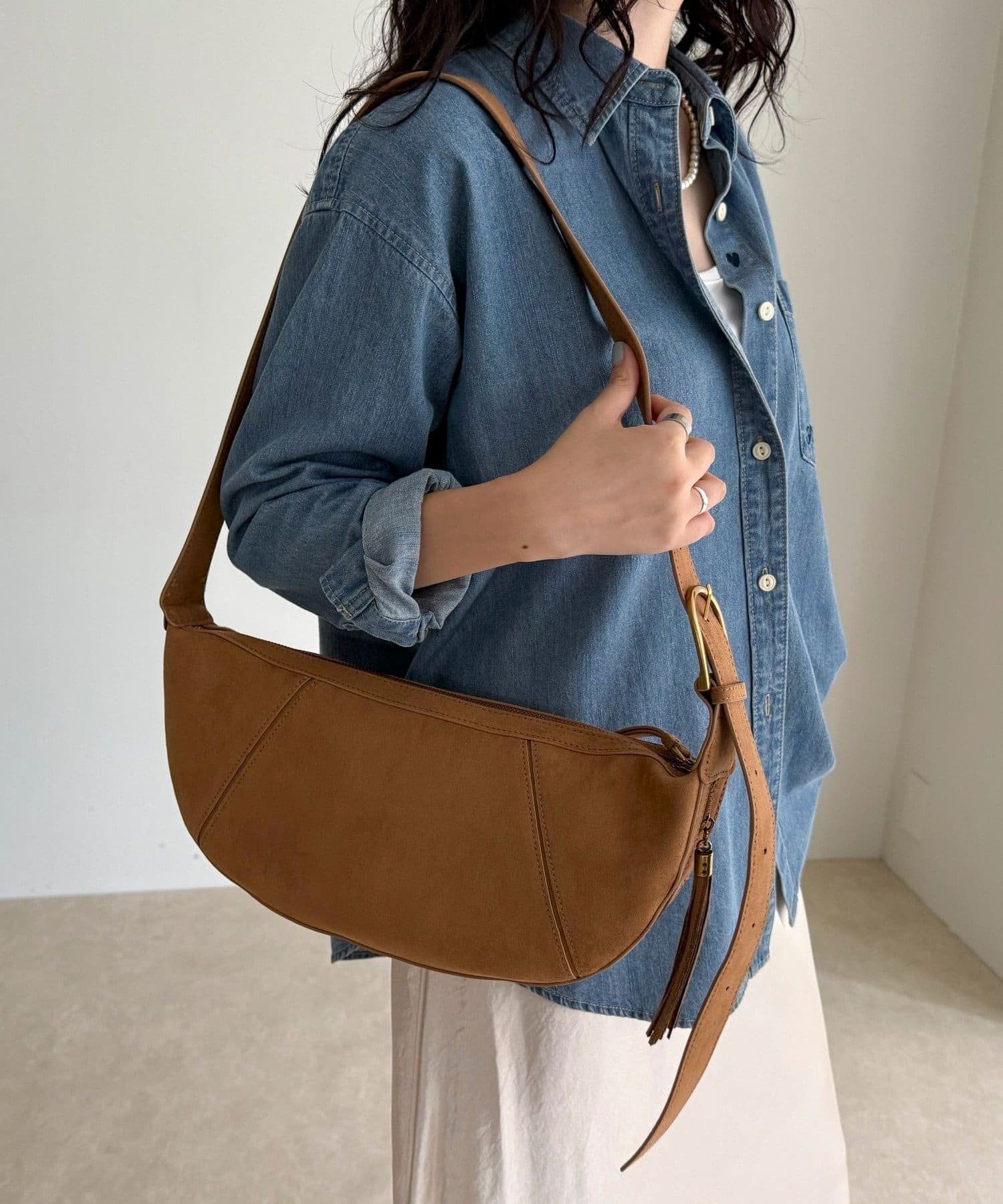 ・柔らかなスエード素材で上品さと温かみのあるショルダーバッグ