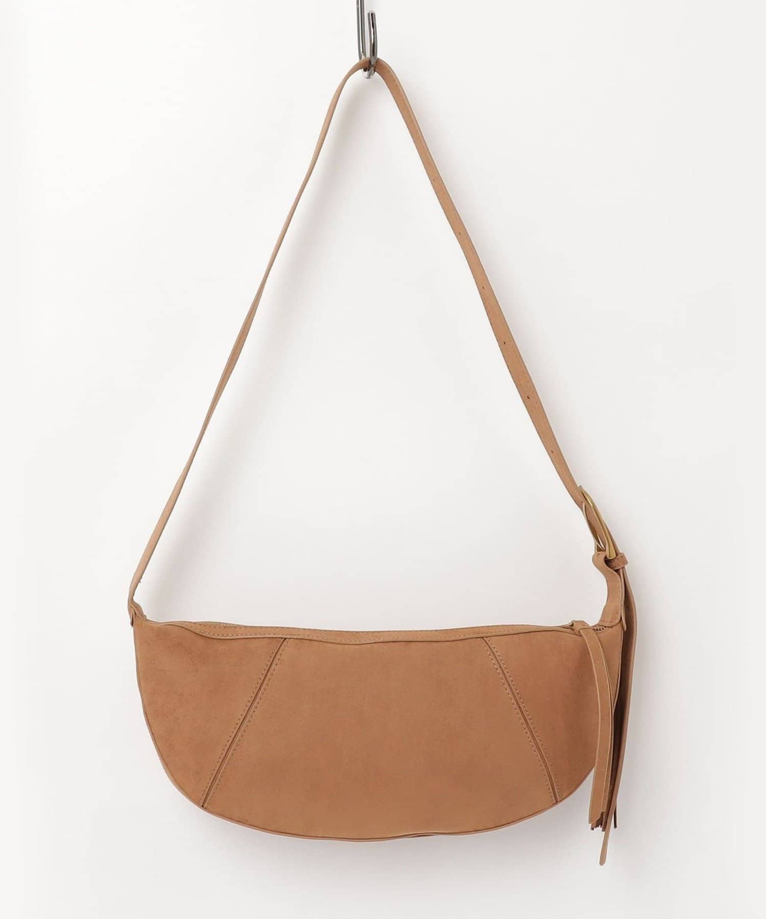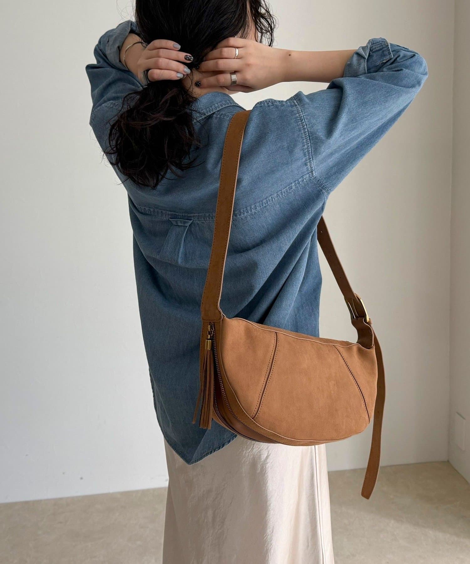 丸みのあるフォルムが可愛い、スエードラウンドショルダーバッグ