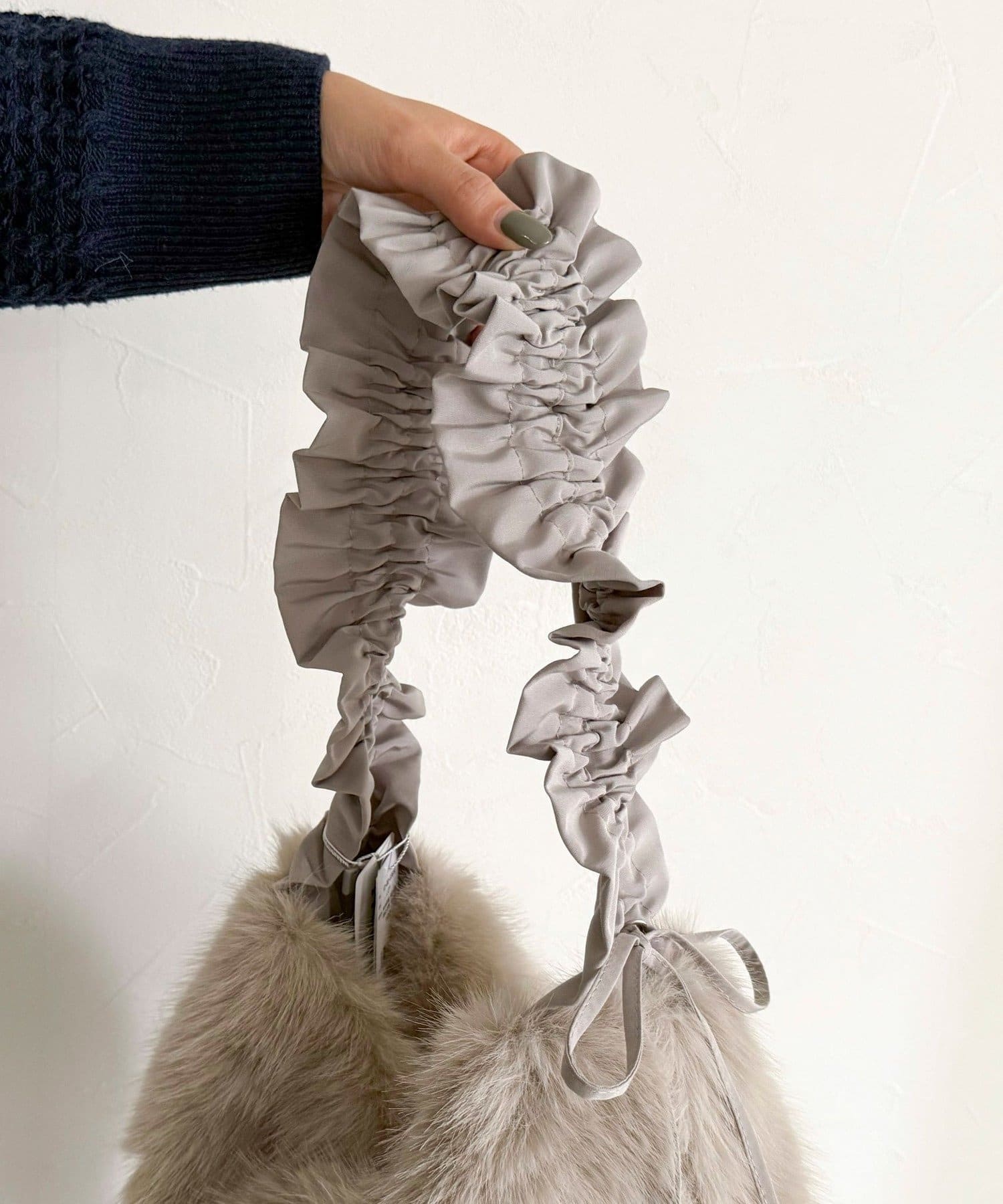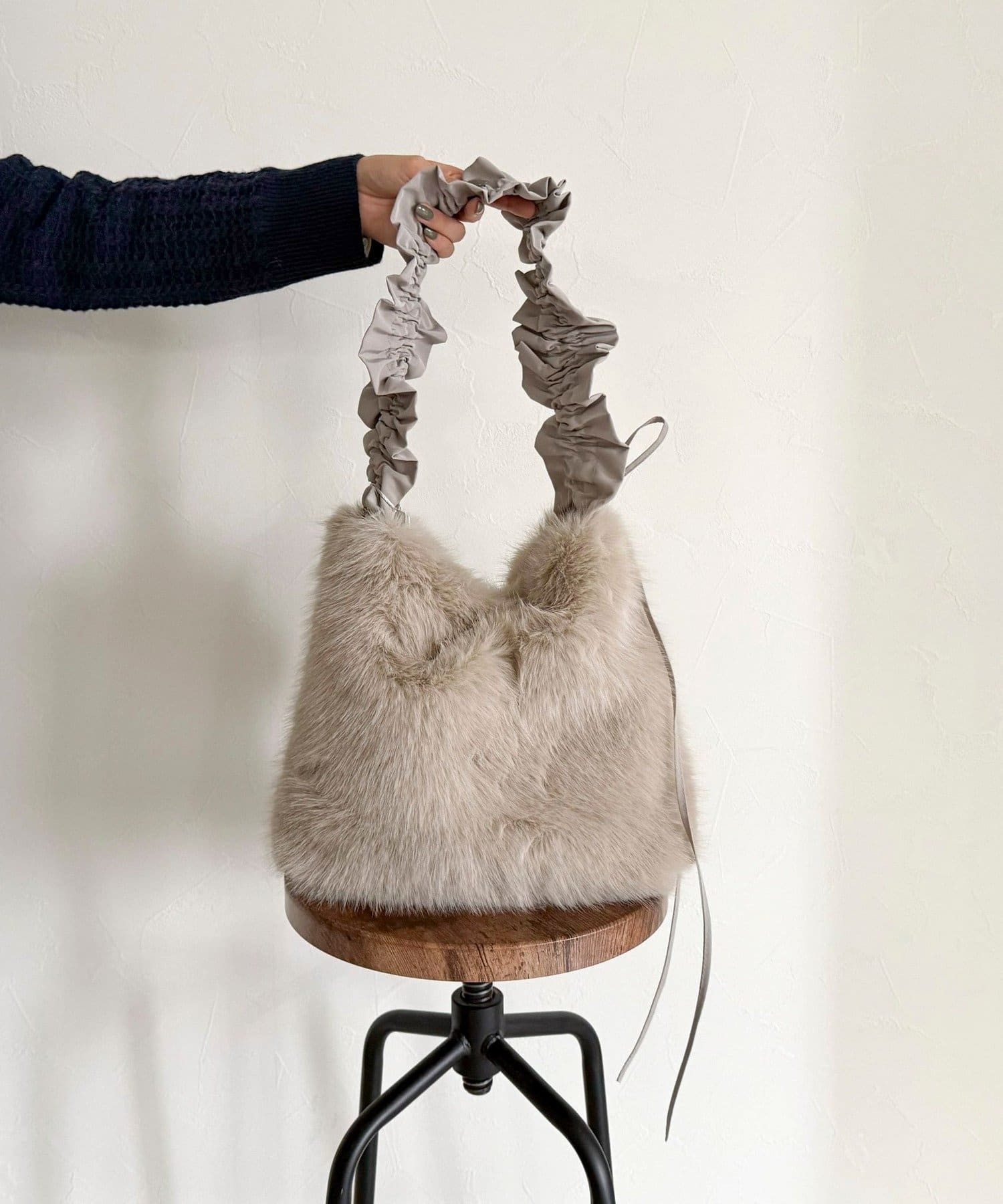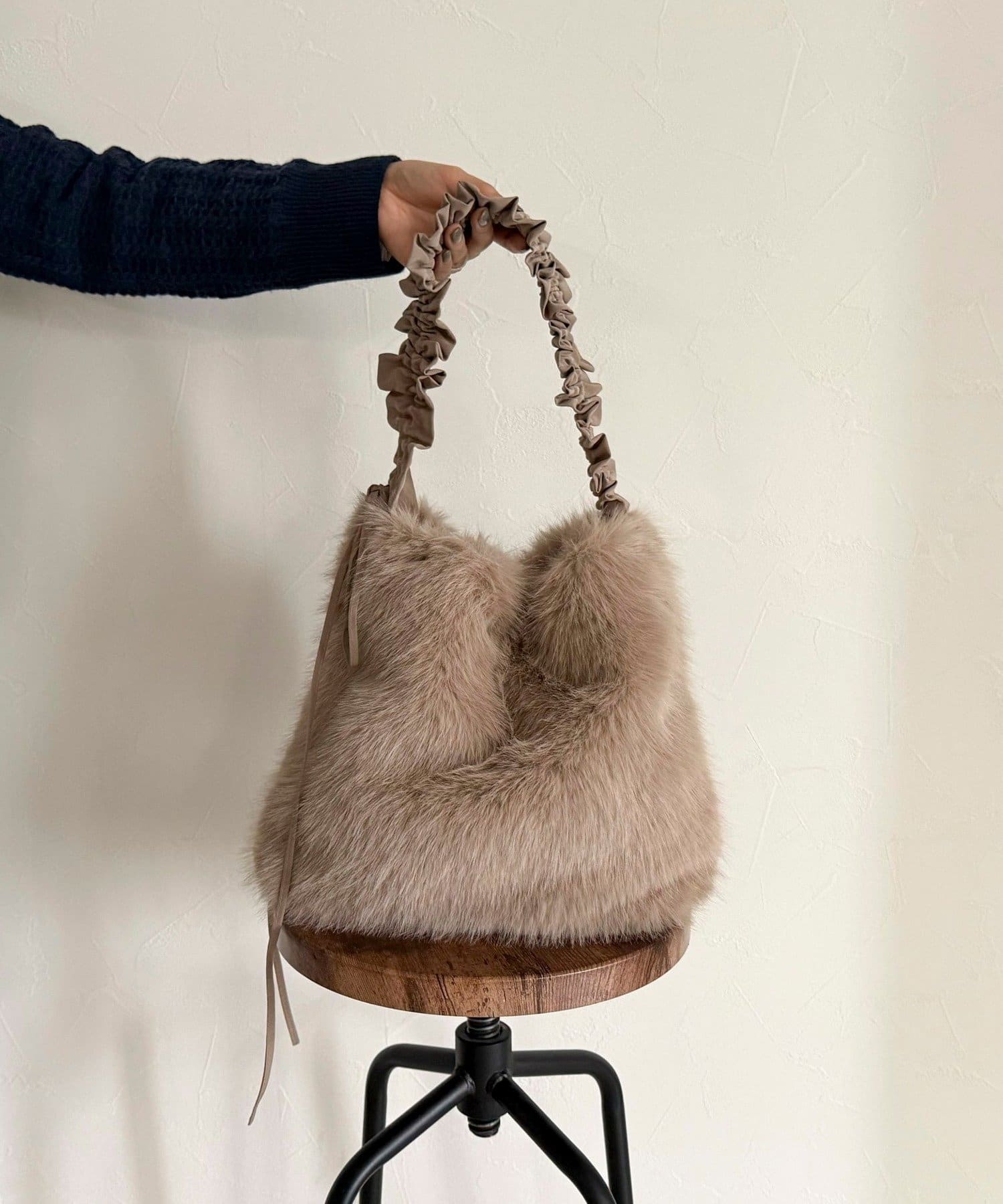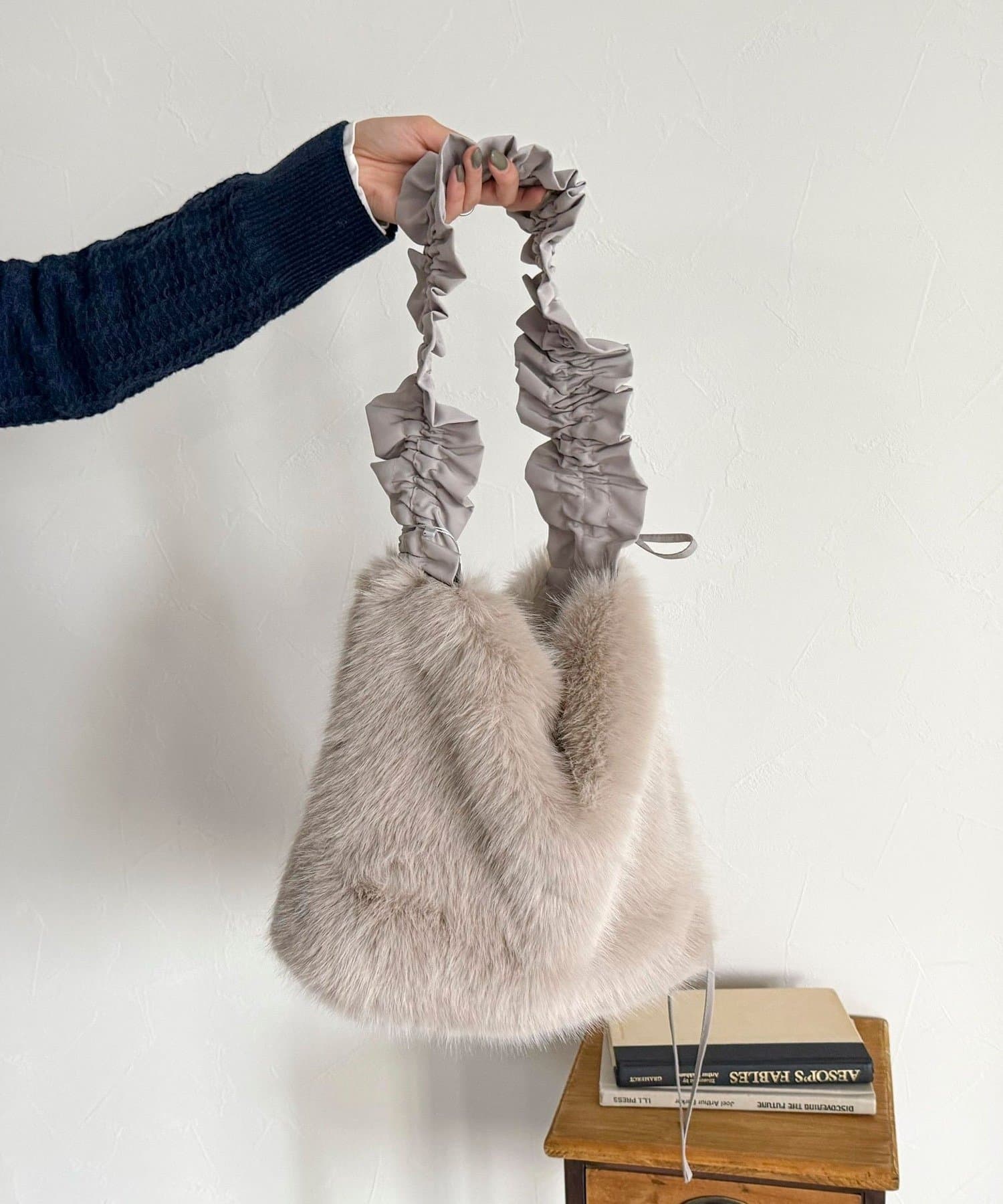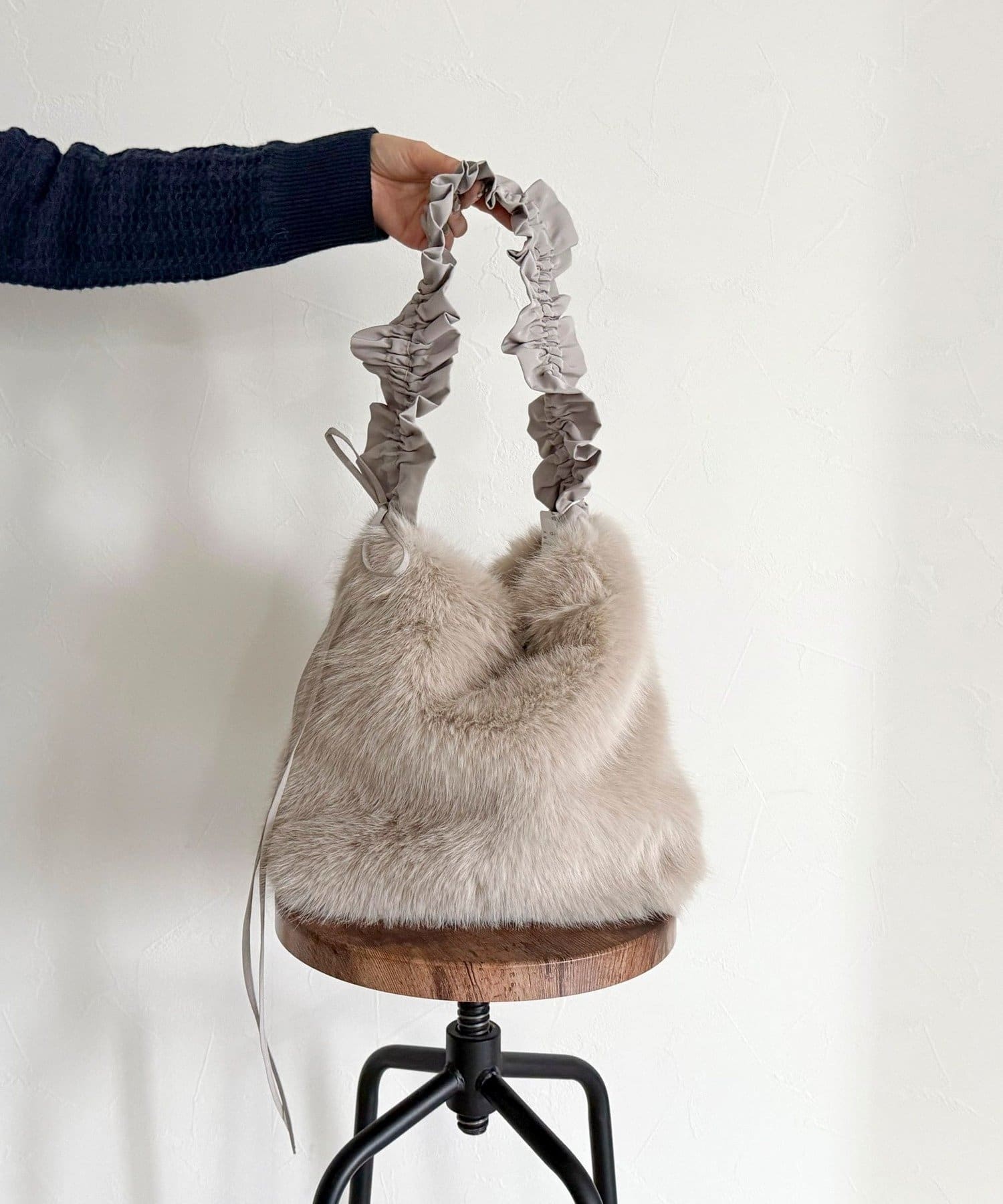 ・冬らしいファー素材とギャザーハンドルの組み合わせが可愛いトートバッグ