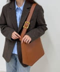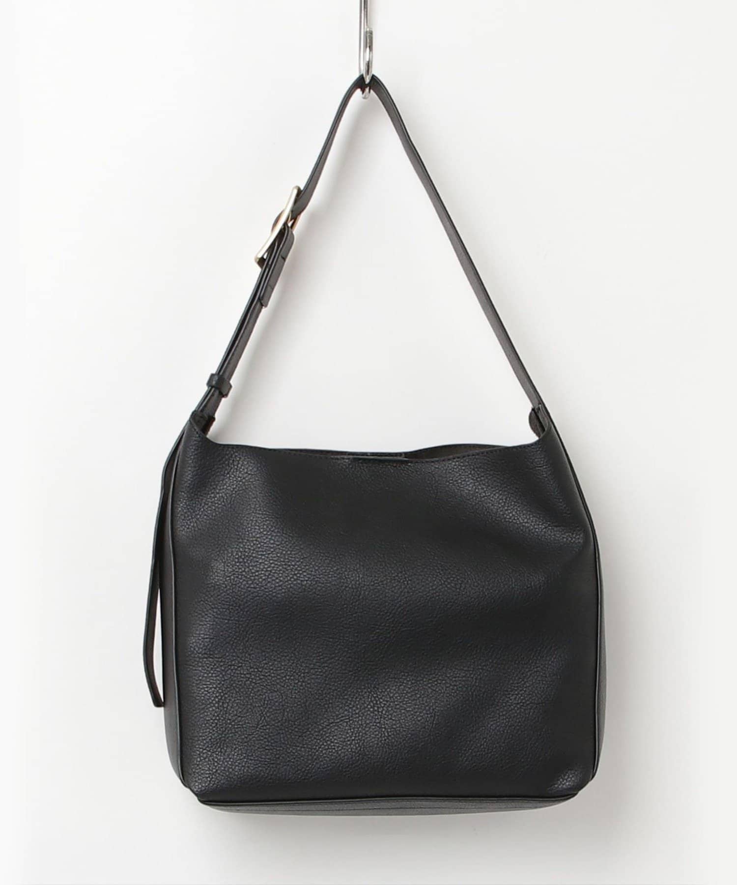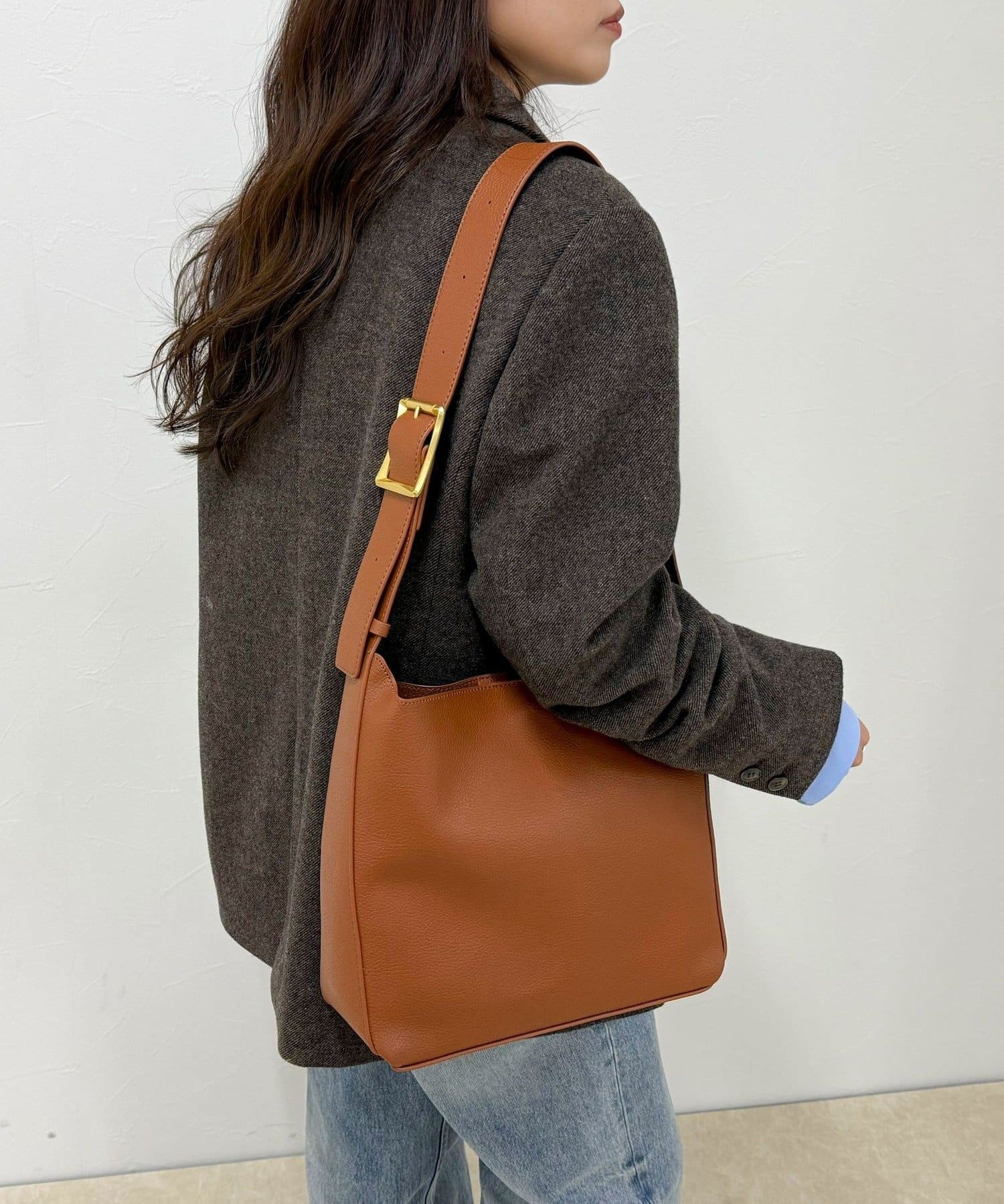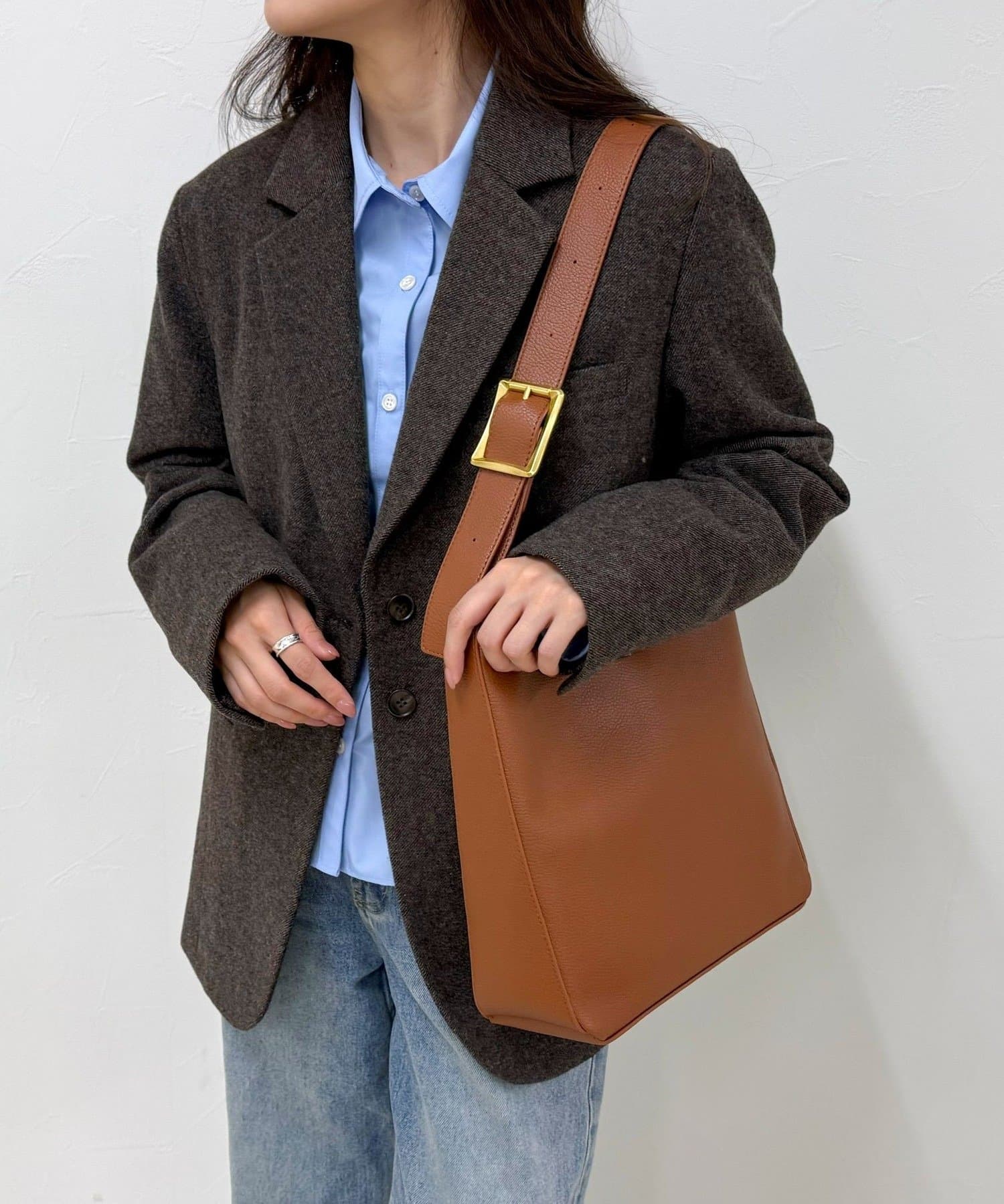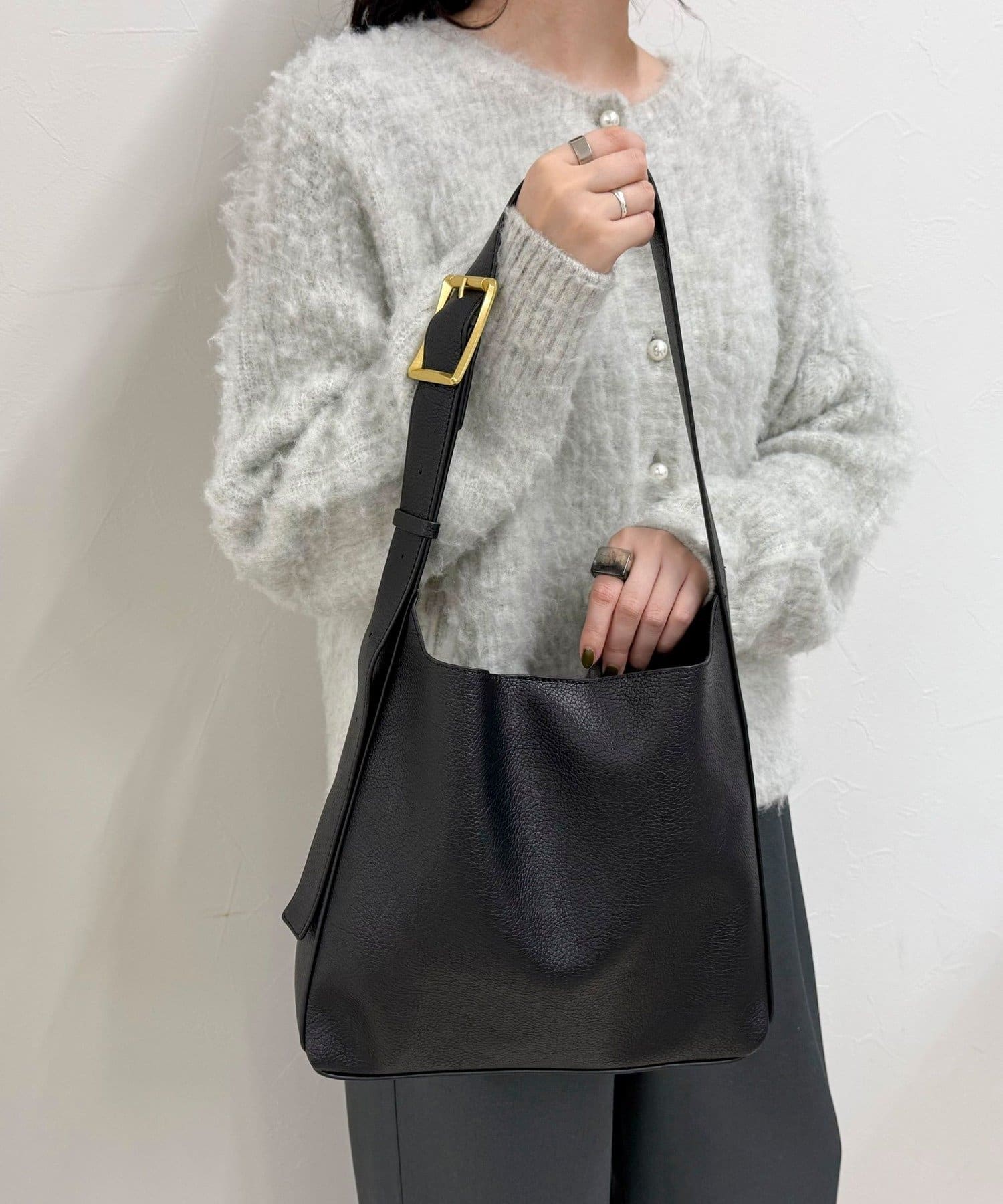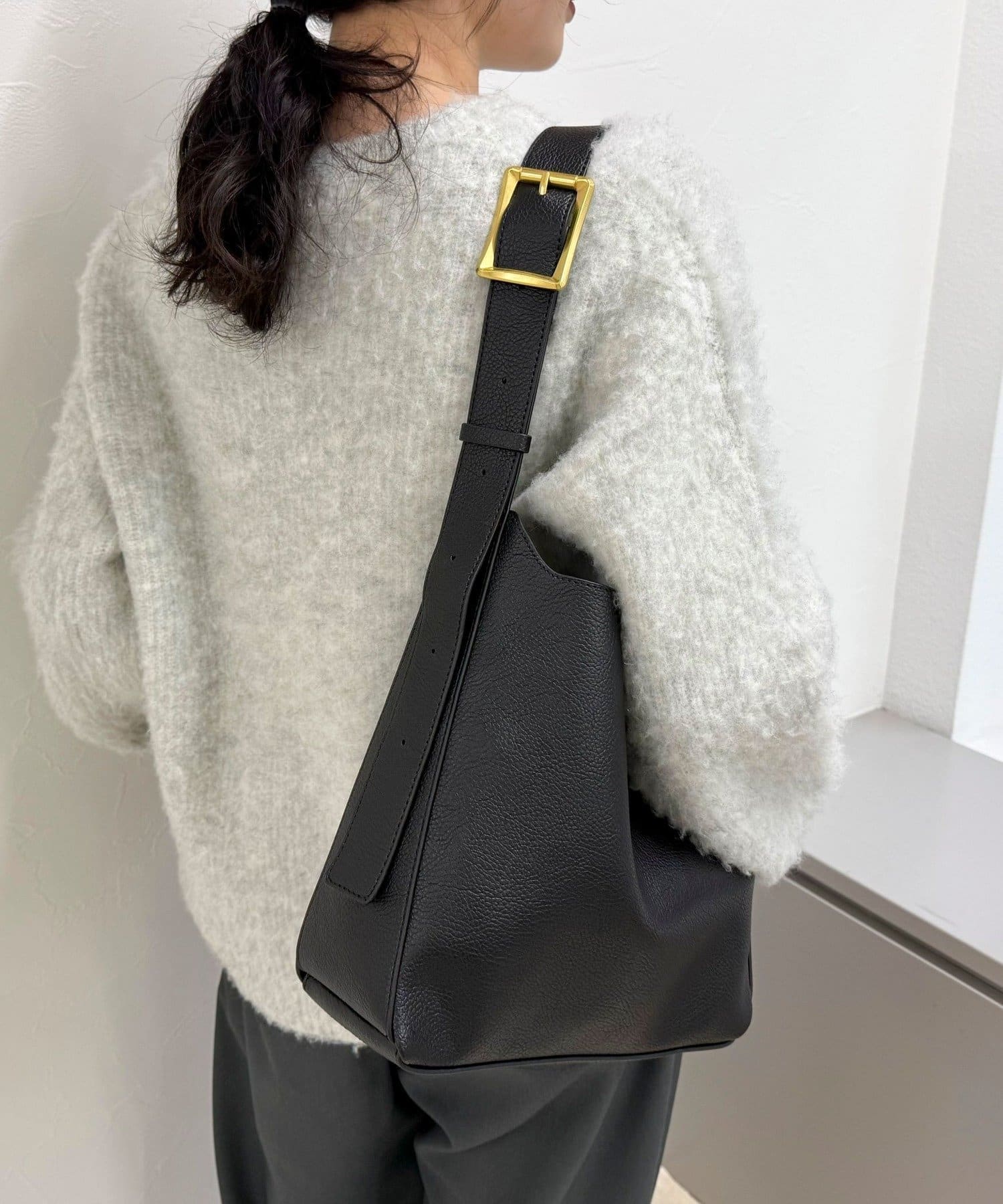 ・ショルダーのバックルディテールが洗練されたアクセントに
