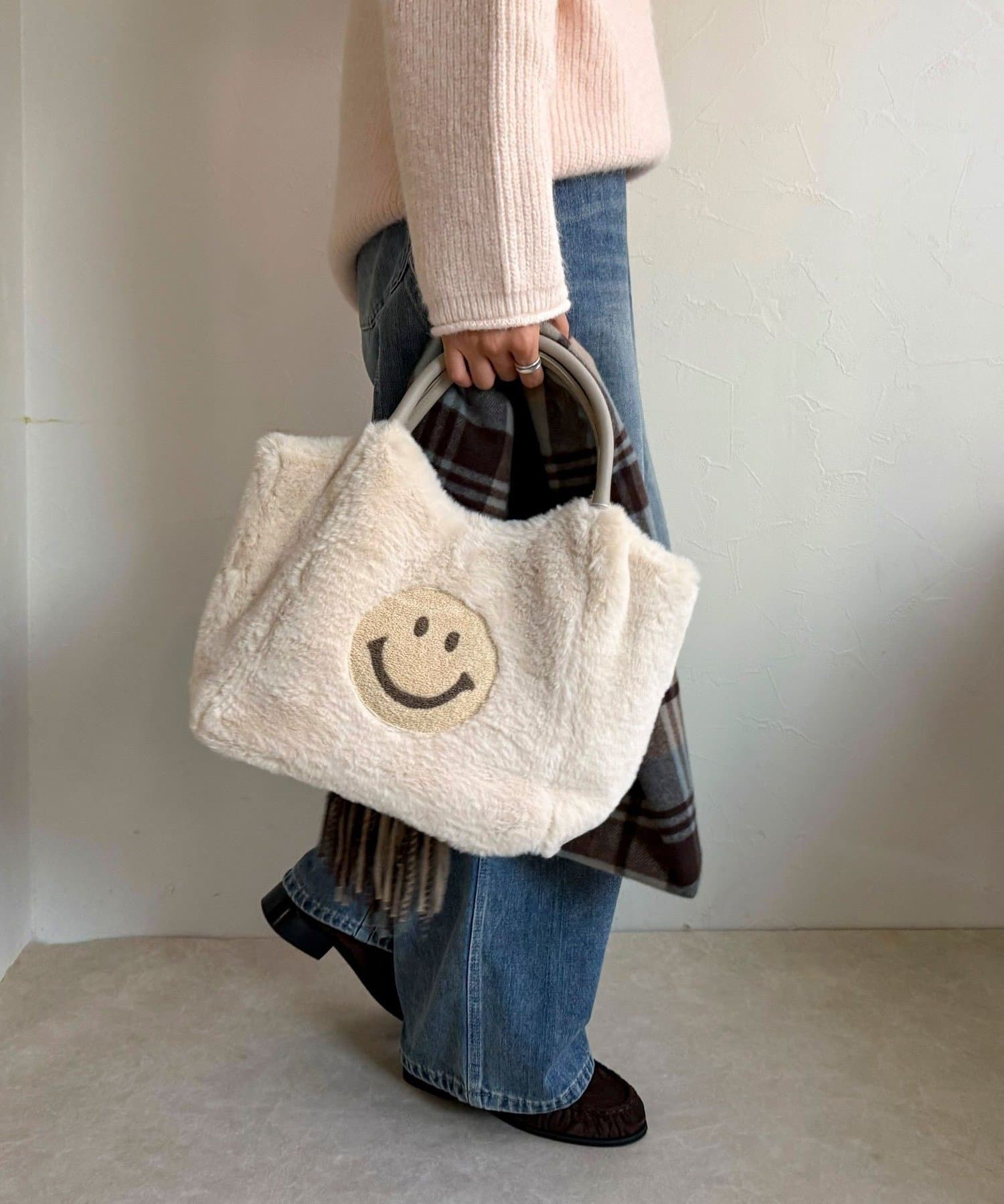 遊び心と上品さを両立したSMILY刺繍ファートート