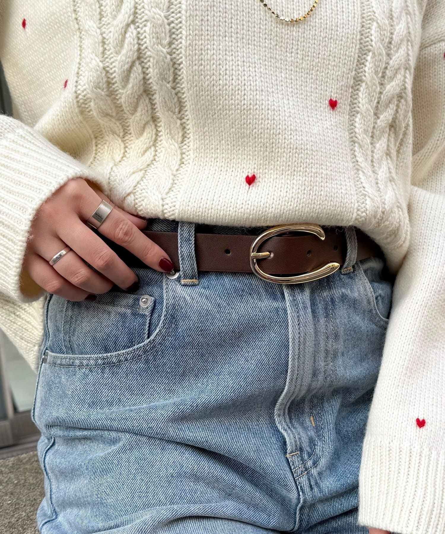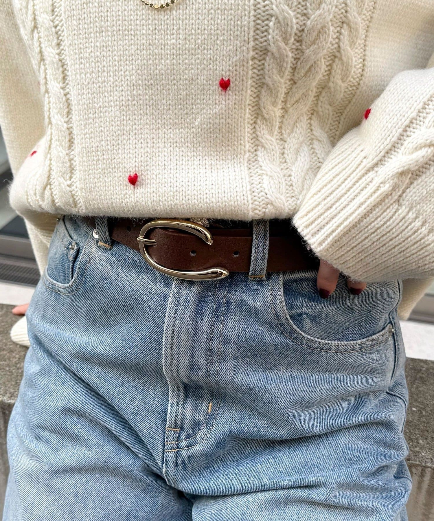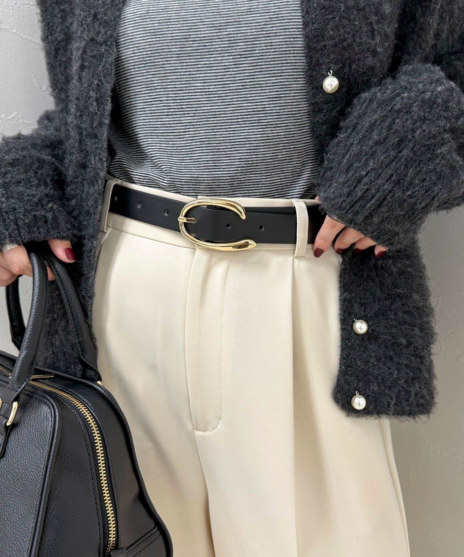 ・目を惹くCバックルがウエスト周りのアクセントになるベルトです