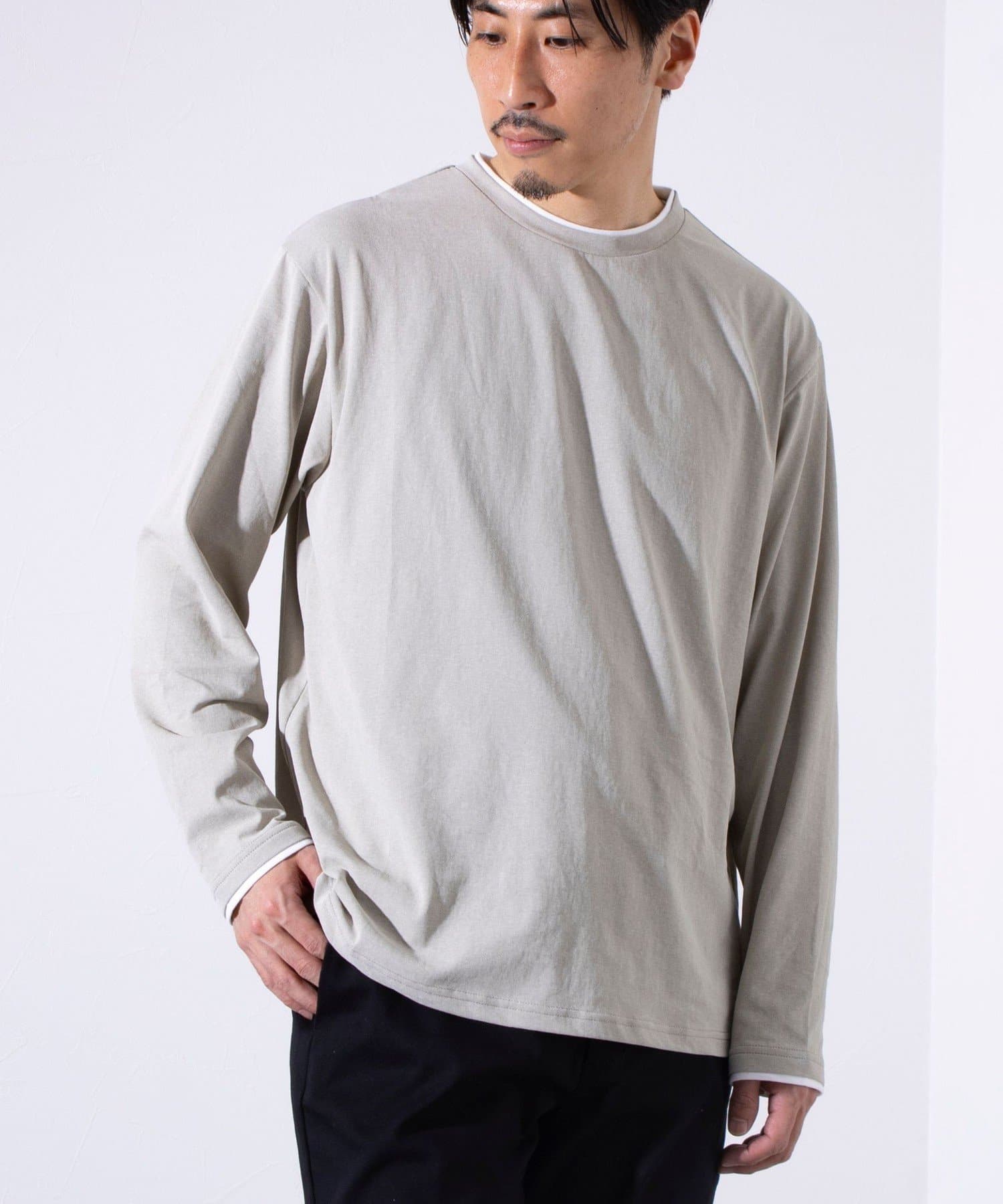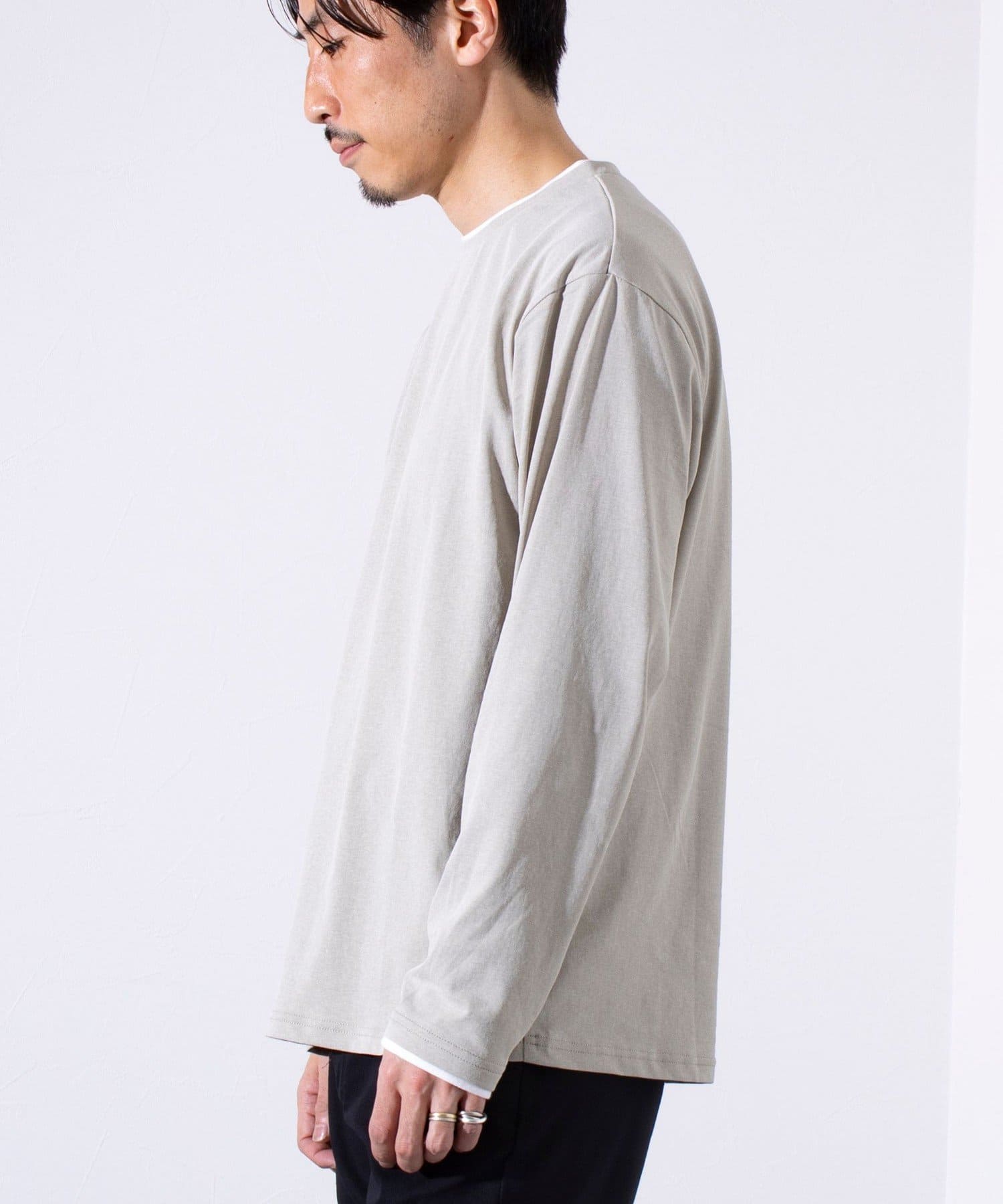 【GLOSTER】フェード加工 天竺 フェイクレイヤード ロングスリーブTシャツ