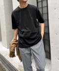 柔らかさと美しい白度の高いスーピマ超長綿を空気紡績し、カジュアルな表情がありながら上品な光沢感も合わせ持った糸を吊り編機で編立したアイテム。吊り編機特有の着心地の良いテンションと丸胴ならではのストレスフリーなTシャツです。