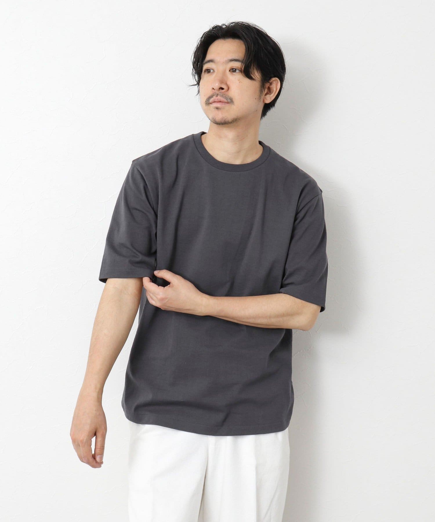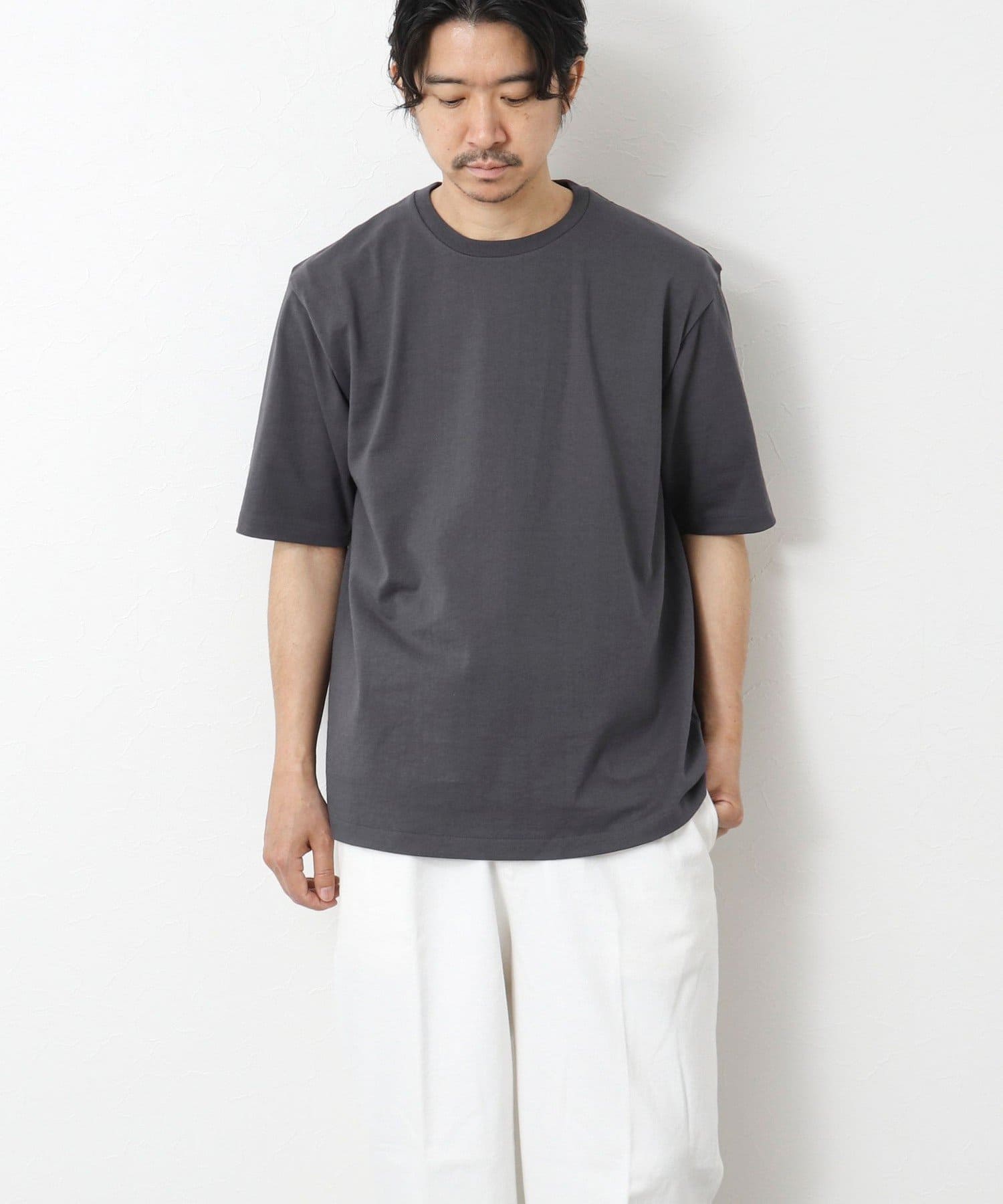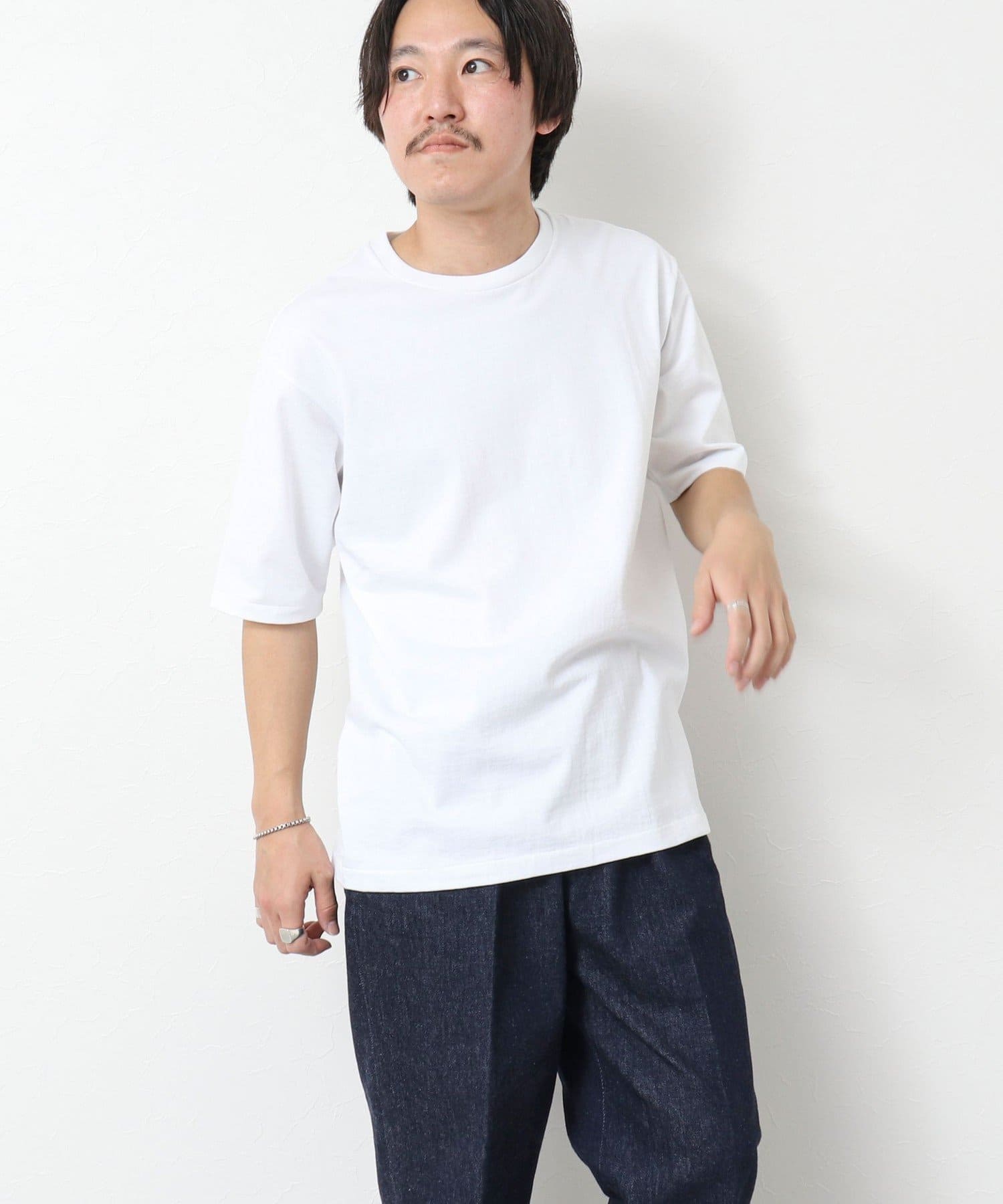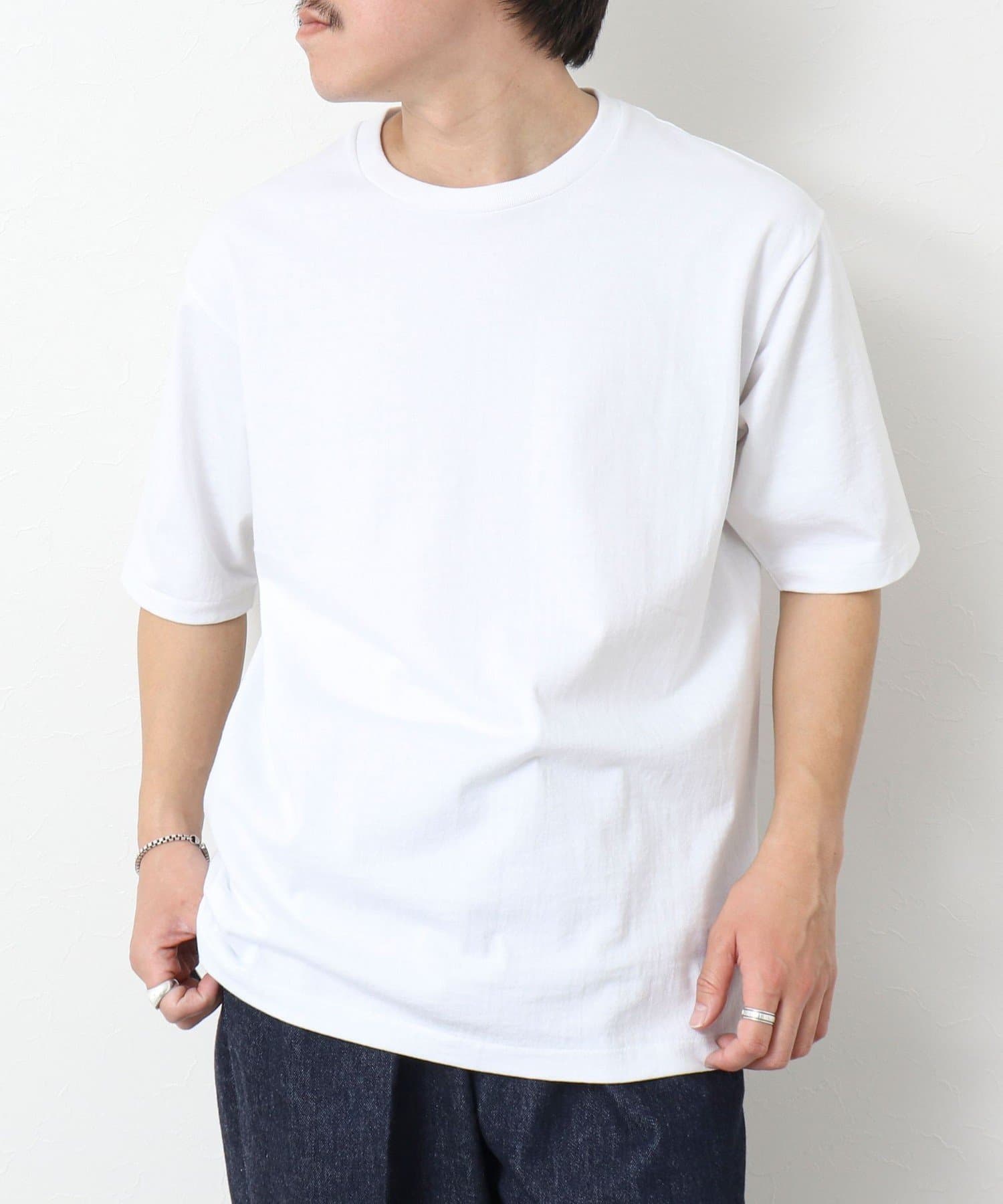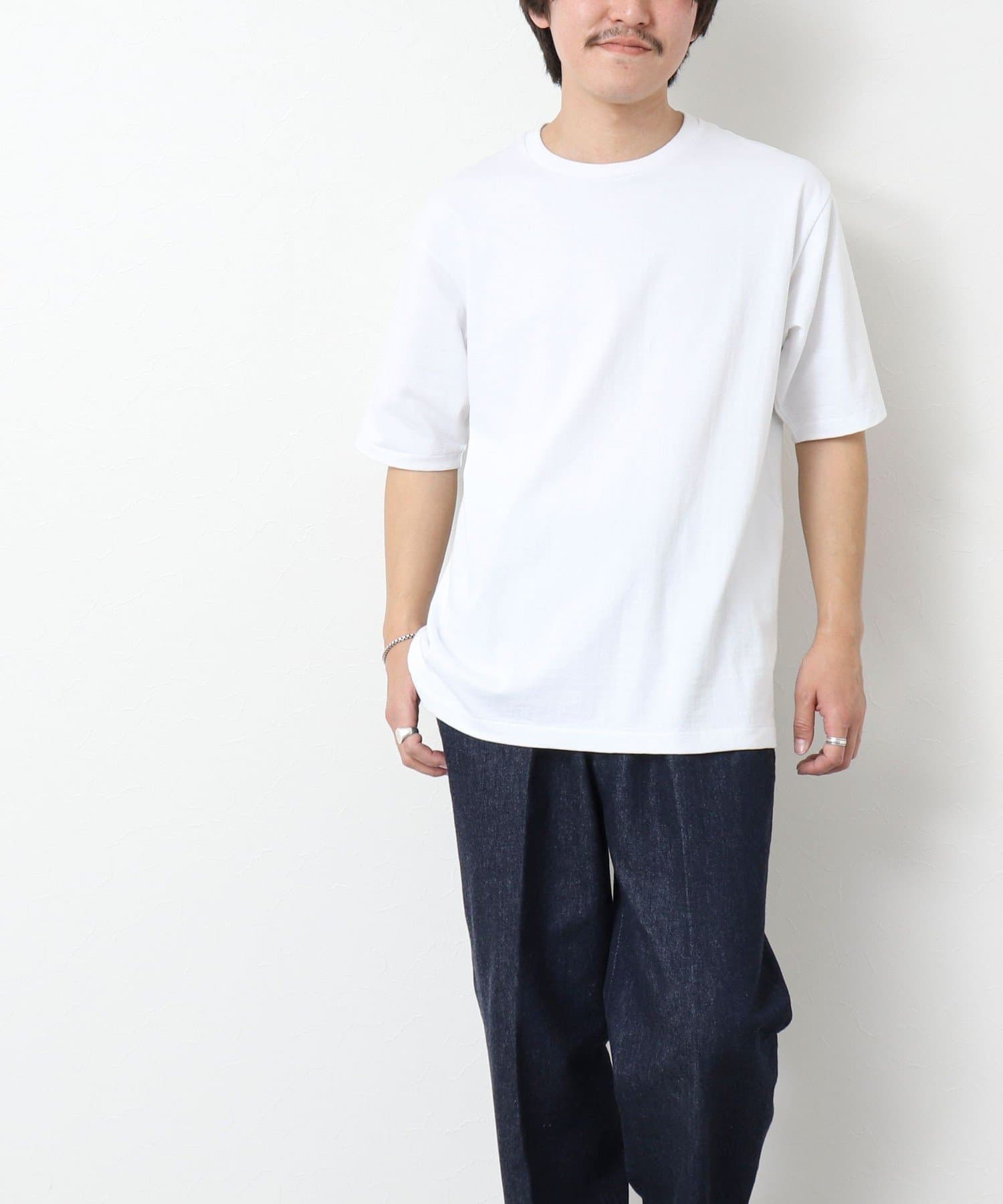 柔らかさと美しい白度の高いスーピマ超長綿を空気紡績し、カジュアルな表情がありながら上品な光沢感も合わせ持った糸を吊り編機で編立したアイテム。吊り編機特有の着心地の良いテンションと丸胴ならではのストレスフリーなTシャツです。