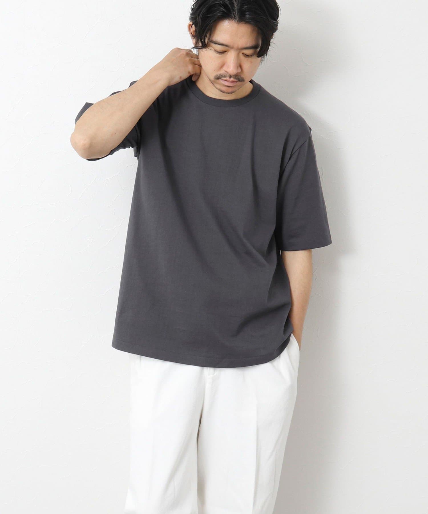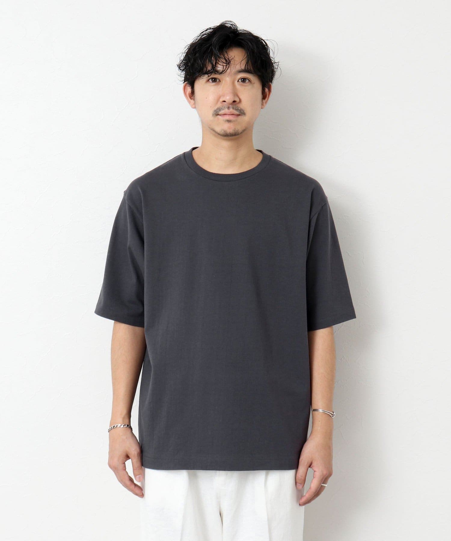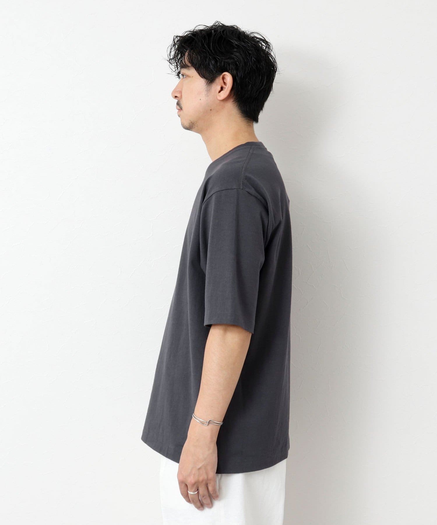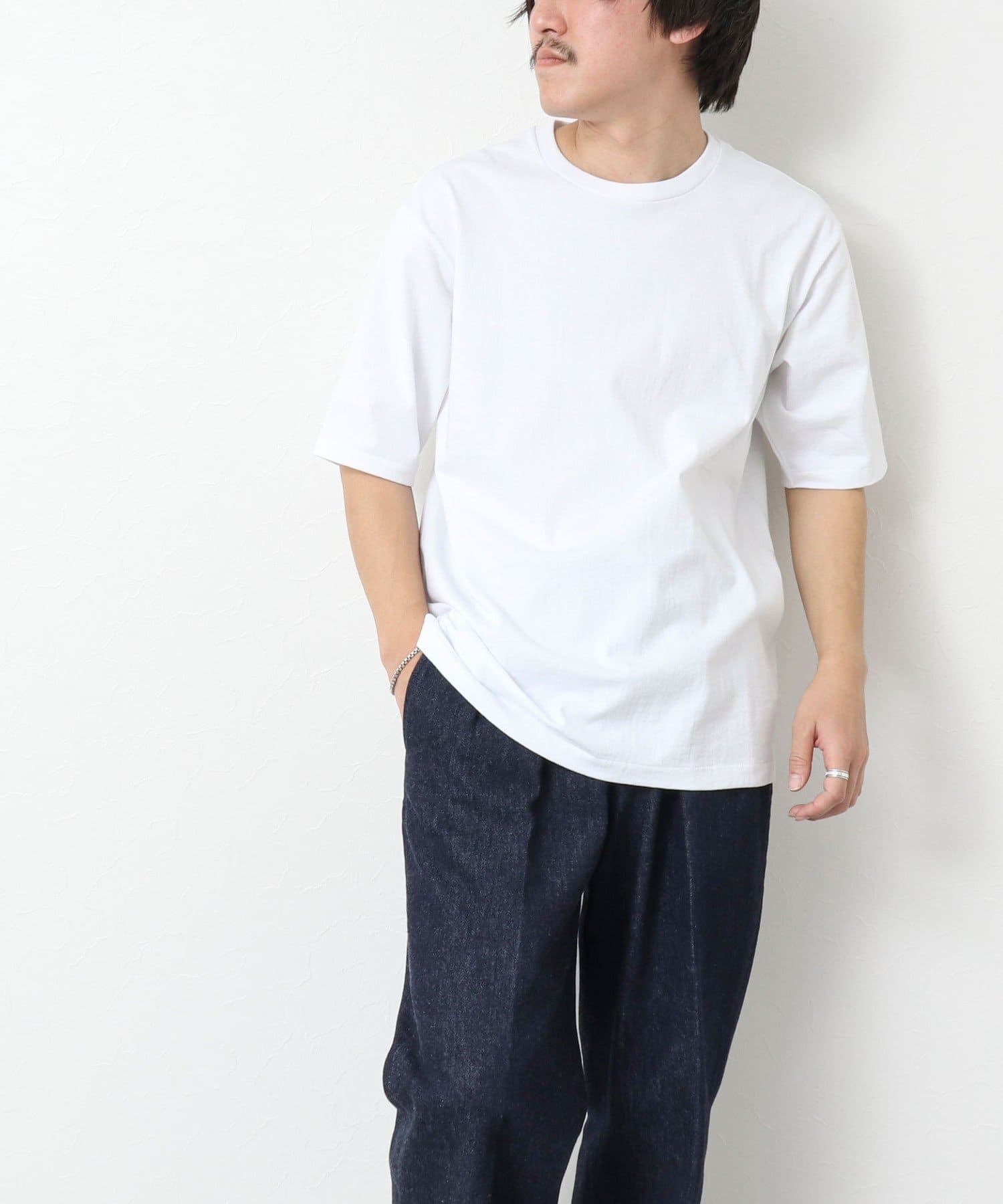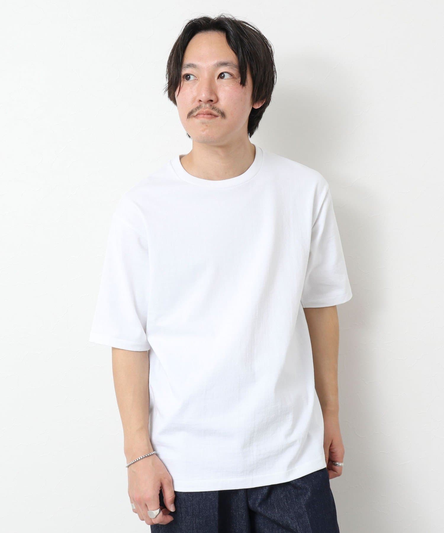柔らかさと美しい白度の高いスーピマ超長綿を空気紡績し、カジュアルな表情がありながら上品な光沢感も合わせ持った糸を吊り編機で編立したアイテム。吊り編機特有の着心地の良いテンションと丸胴ならではのストレスフリーなTシャツです。