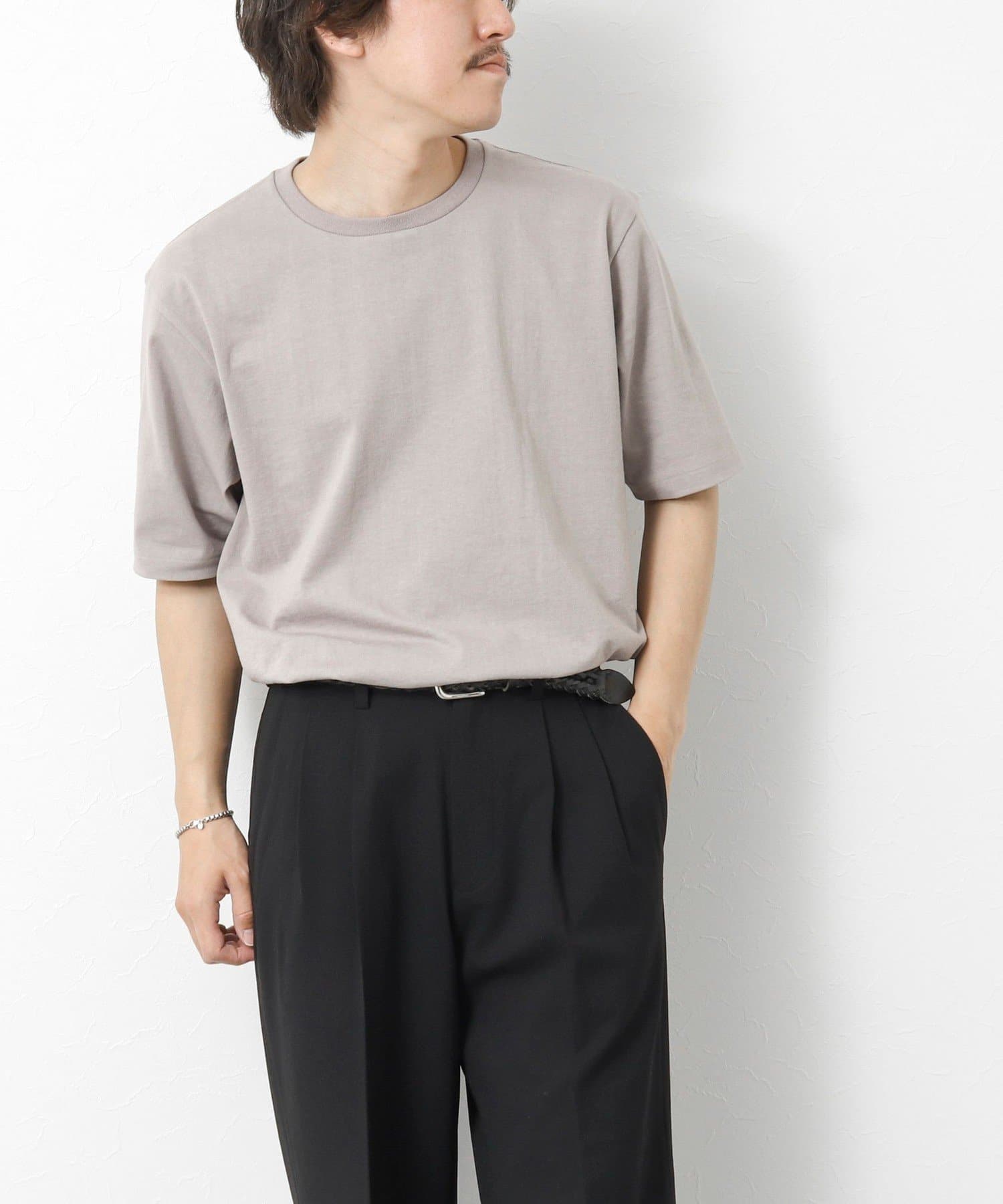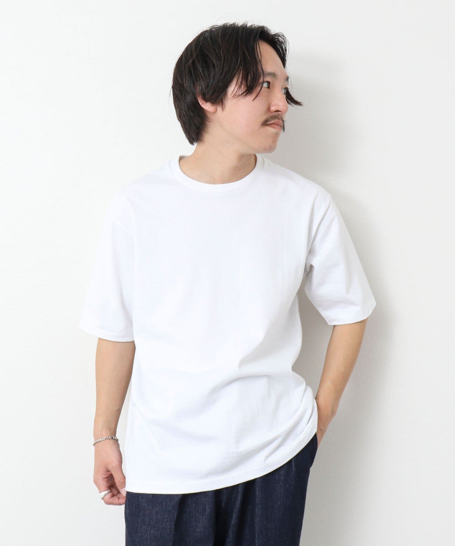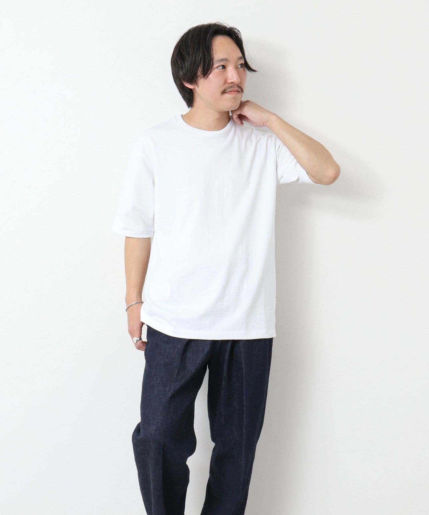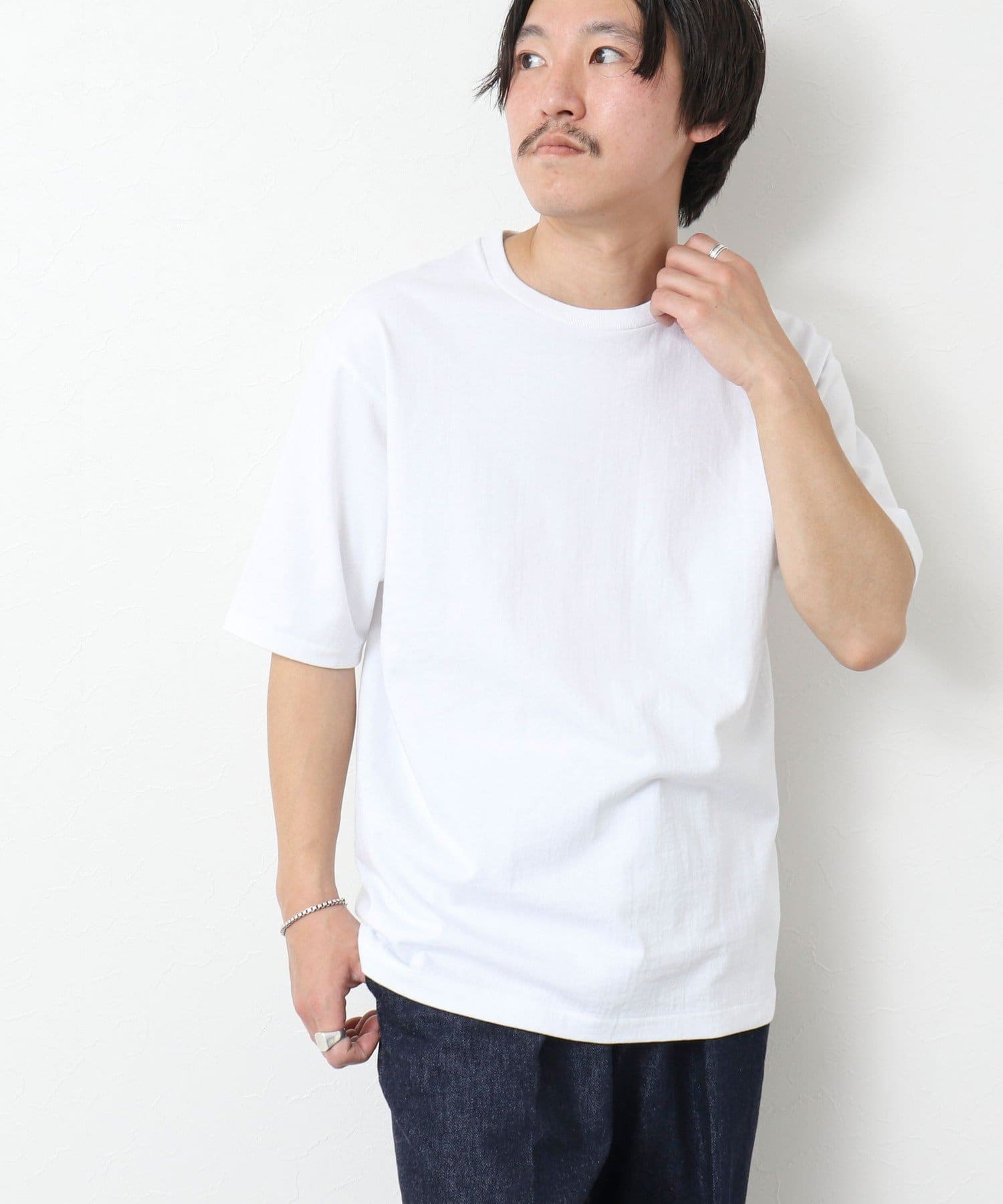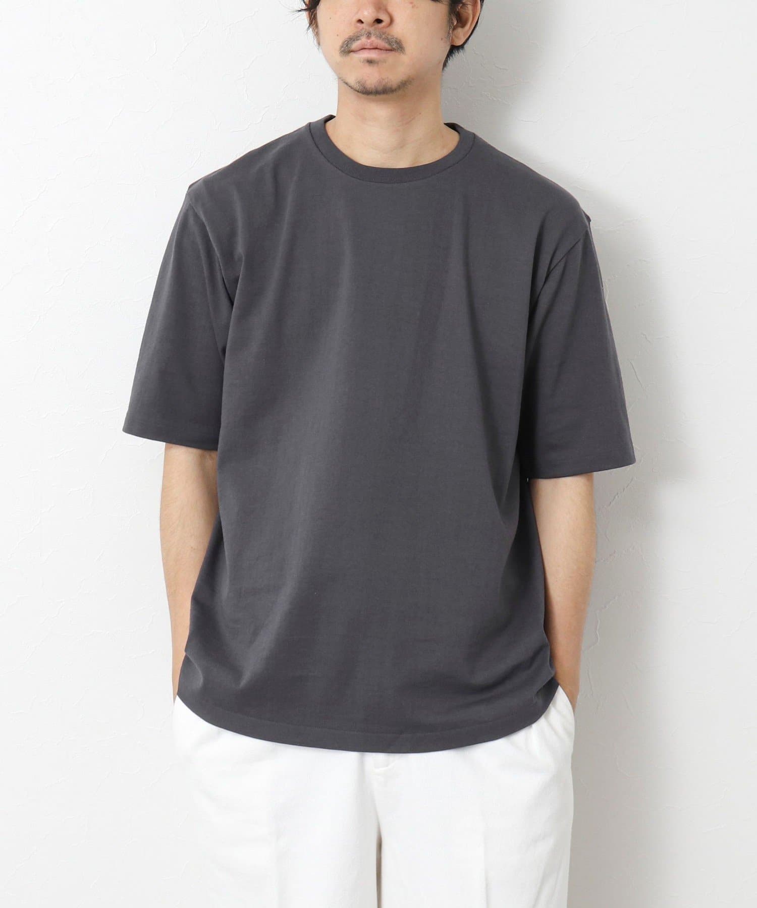 柔らかさと美しい白度の高いスーピマ超長綿を空気紡績し、カジュアルな表情がありながら上品な光沢感も合わせ持った糸を吊り編機で編立したアイテム。吊り編機特有の着心地の良いテンションと丸胴ならではのストレスフリーなTシャツです。