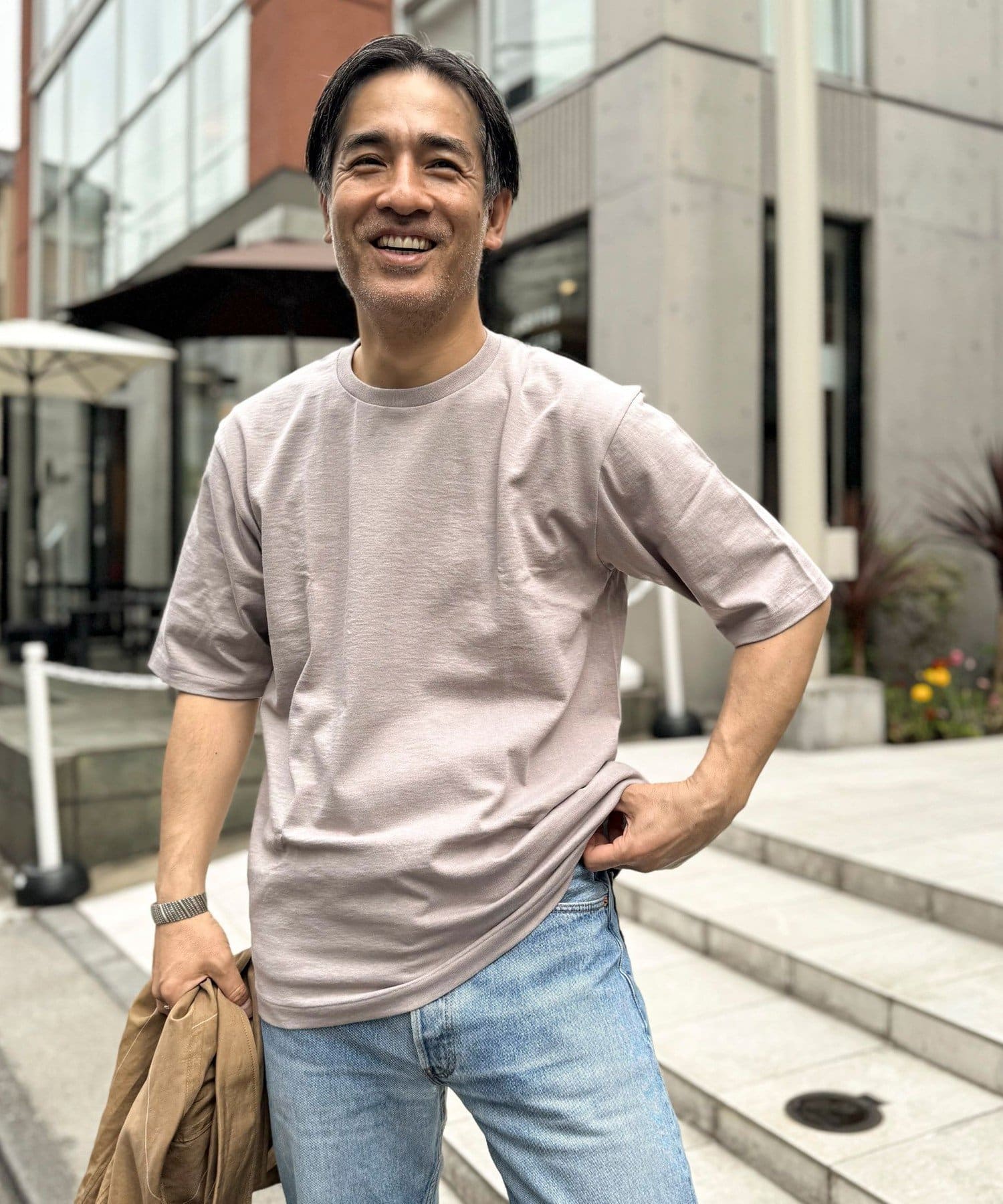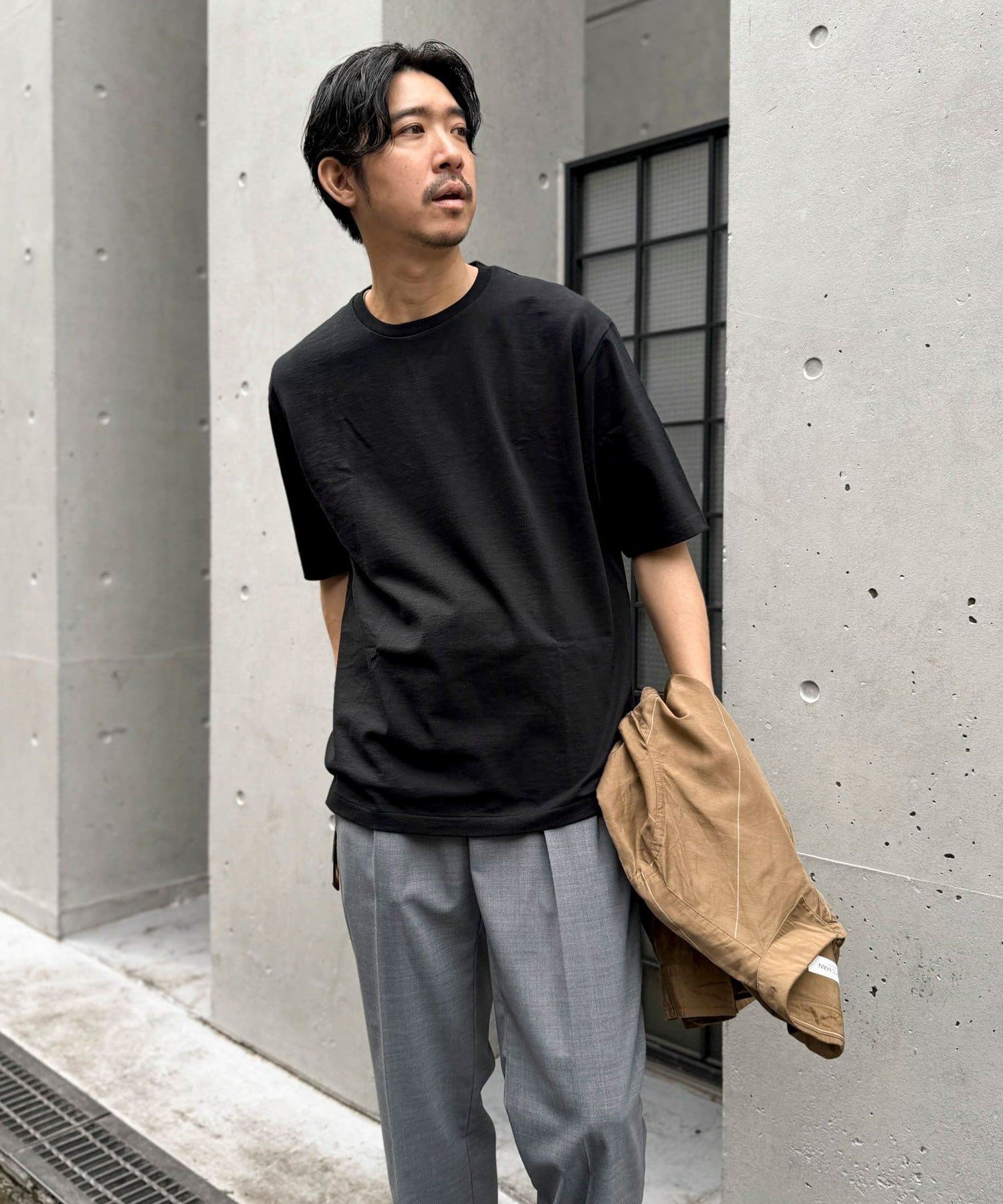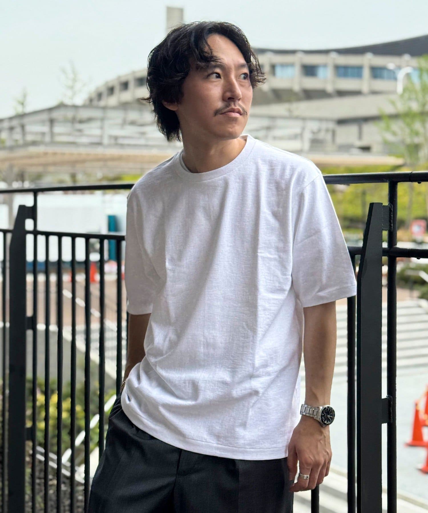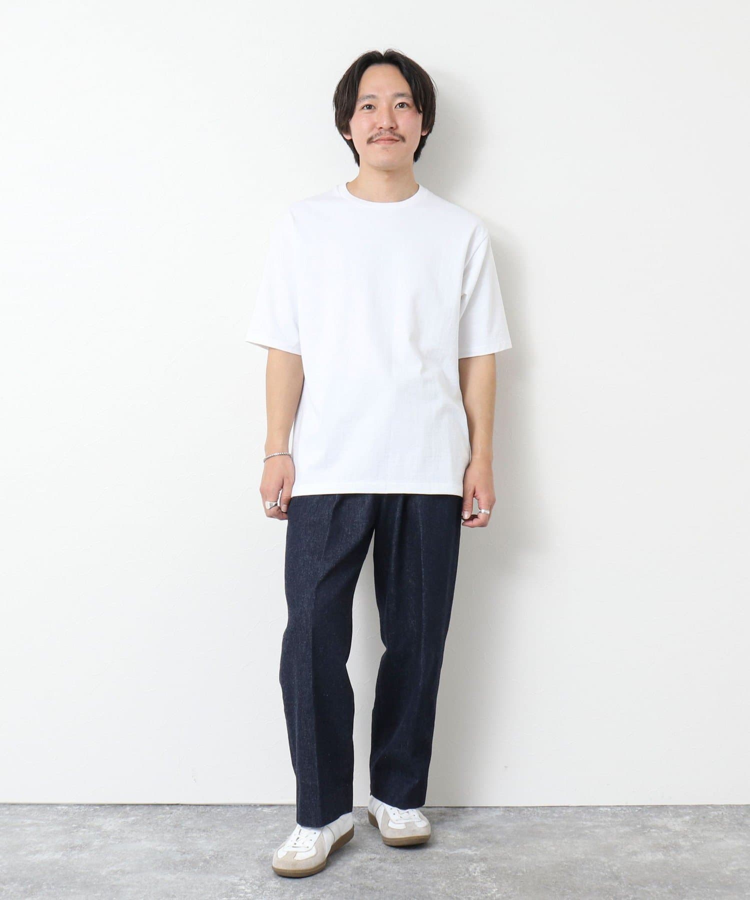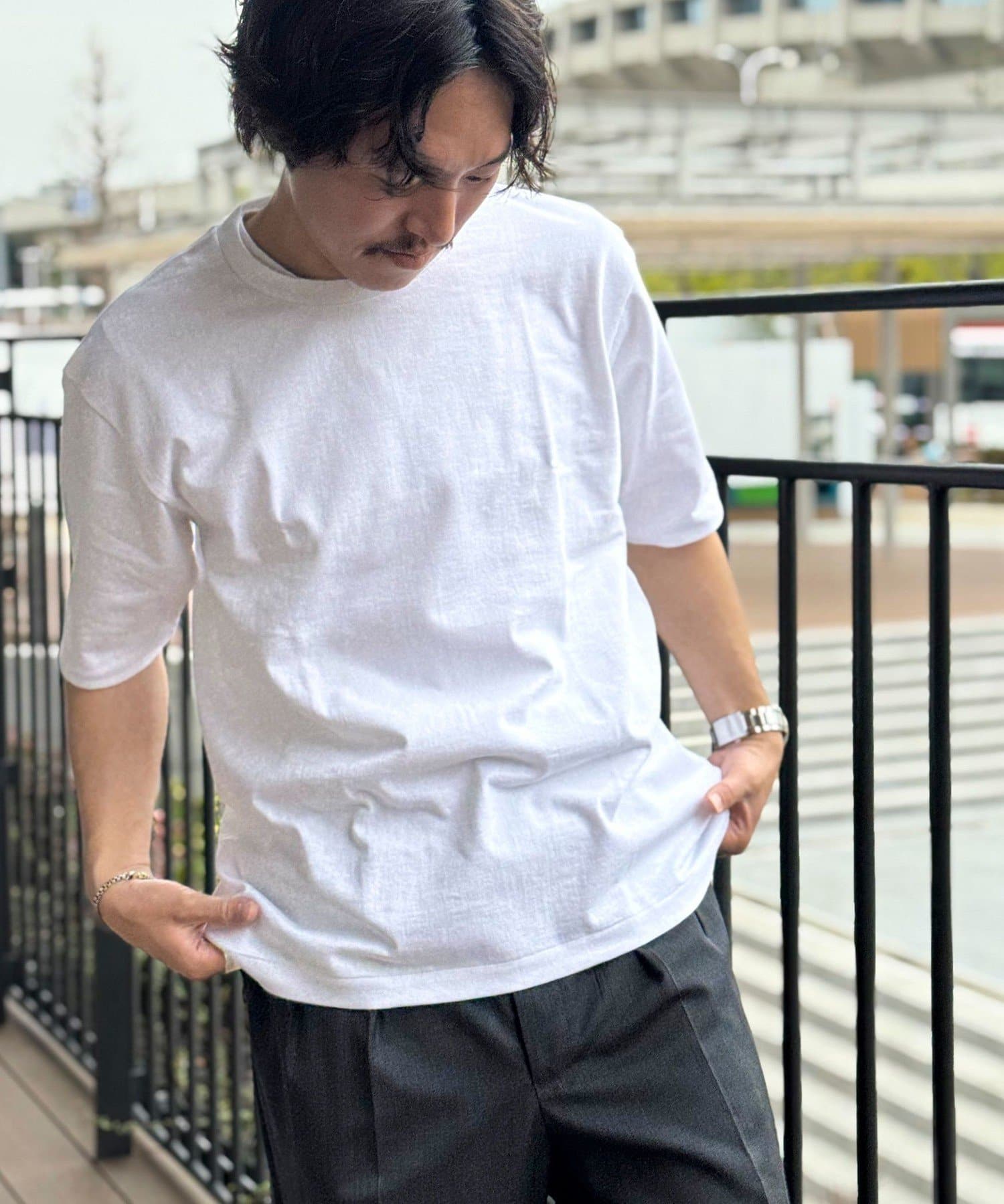 柔らかさと美しい白度の高いスーピマ超長綿を空気紡績し、カジュアルな表情がありながら上品な光沢感も合わせ持った糸を吊り編機で編立したアイテム。吊り編機特有の着心地の良いテンションと丸胴ならではのストレスフリーなTシャツです。