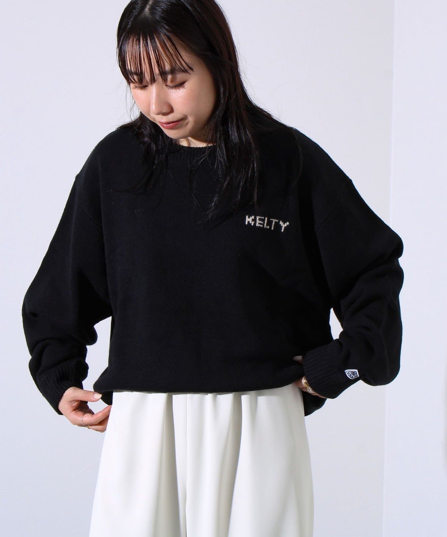 ・ブランドを象徴するKELTYロゴをフロントとバックにジャガード編みで大胆に表現。