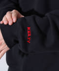 ・胸元のクラシックロゴワッペンと袖口の刺繍ロゴがアクセントに