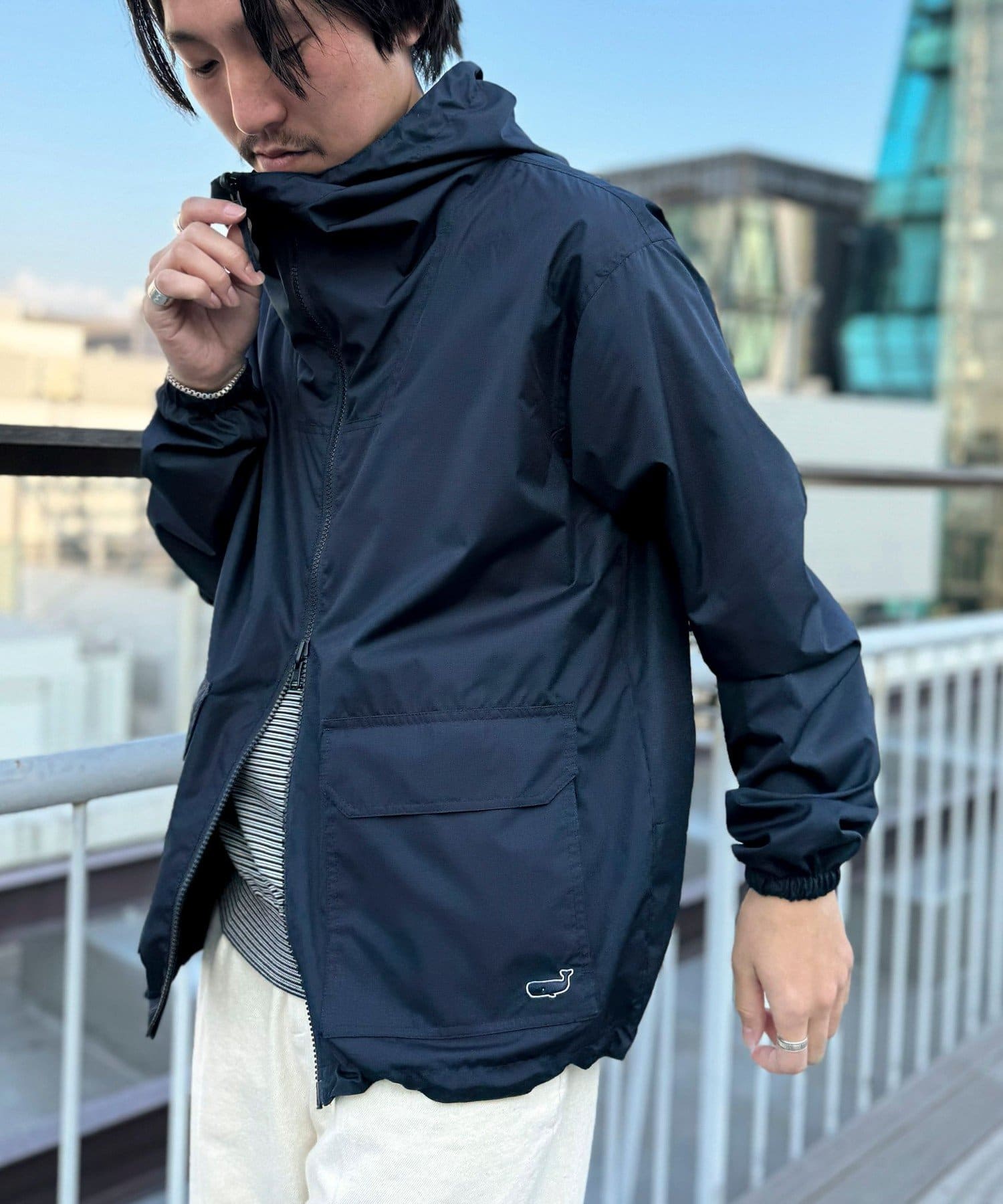 表側左ポケットにクジラのワンポイントを配置