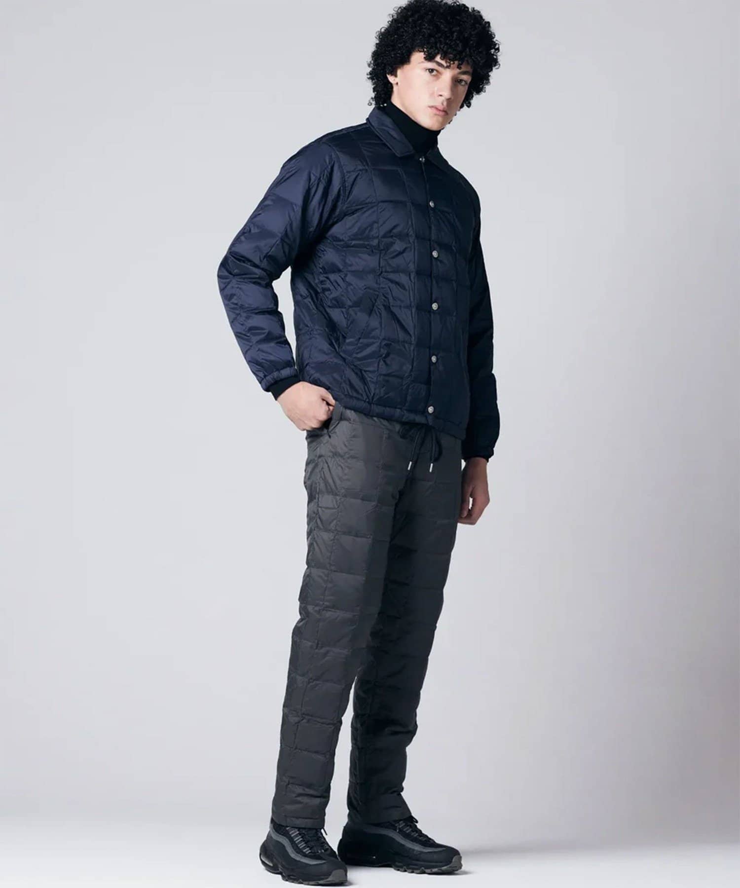 TAIONの定番、ベーシックインナーダウンは、ジャケットやコートの下に着るのはもちろん、Tシャツ・シャツなどの上にも気軽に羽織れる、軽くて暖かく着回しやすいシンプルなデザインが特徴です。