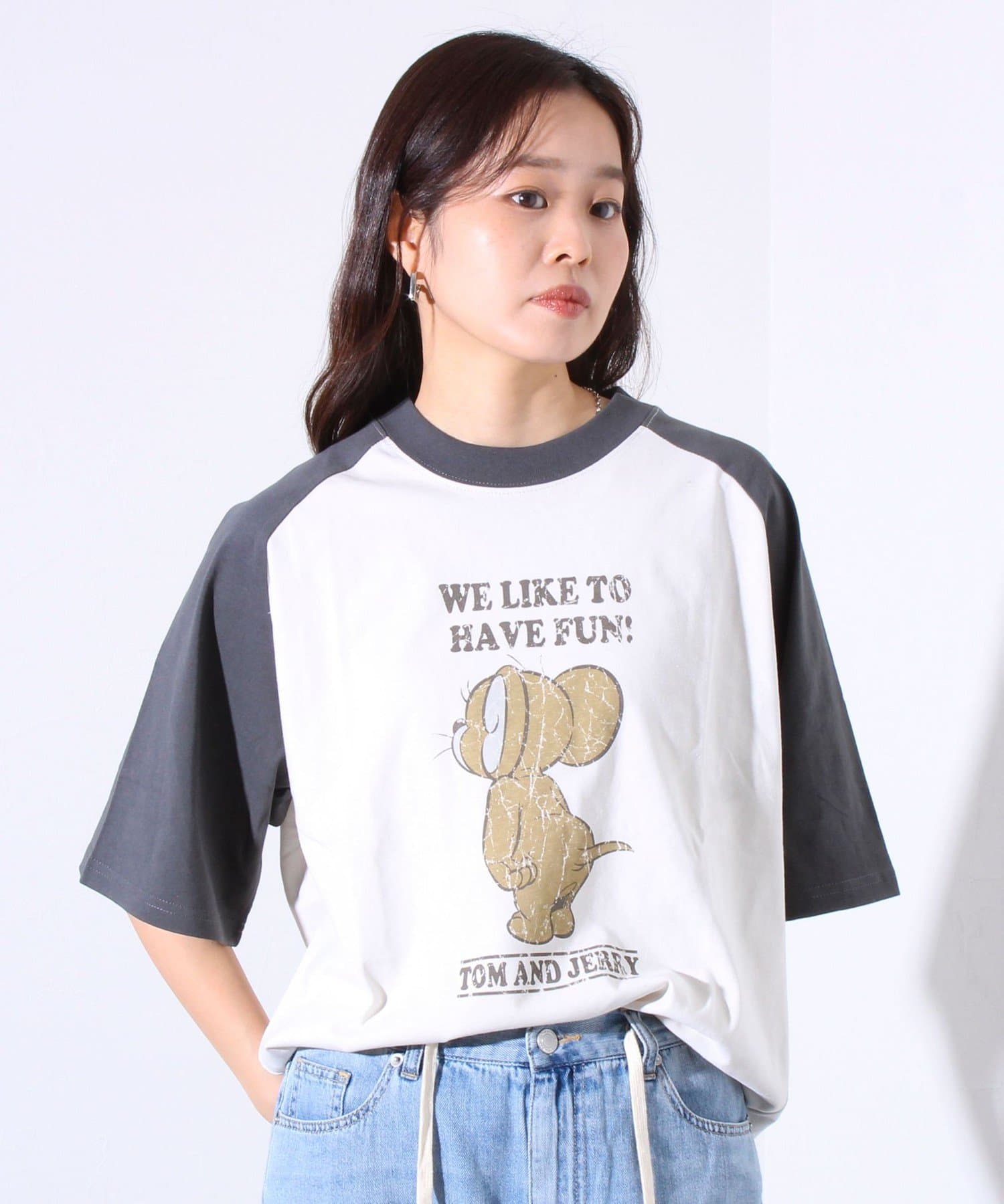 【Disney】【TOM&JERRY】ピグメント/ラグランスリーブ プリントT