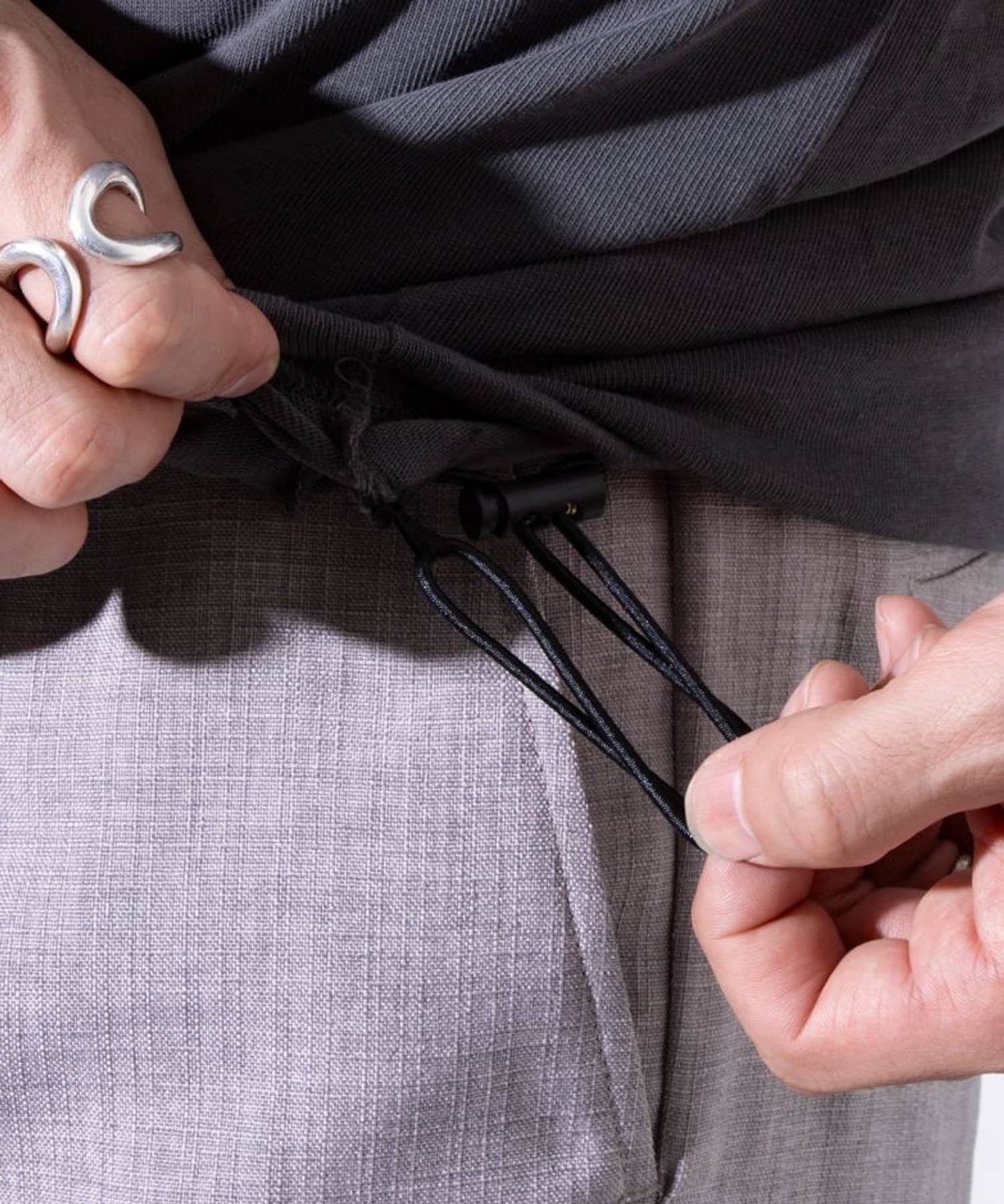 ・裾のドローストリングを絞ることでシルエットの変化を楽しめる