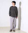 ワイドパンツやイージーパンツに合わせ、ゆるっとしたシルエットを楽しむ休日コーデ。