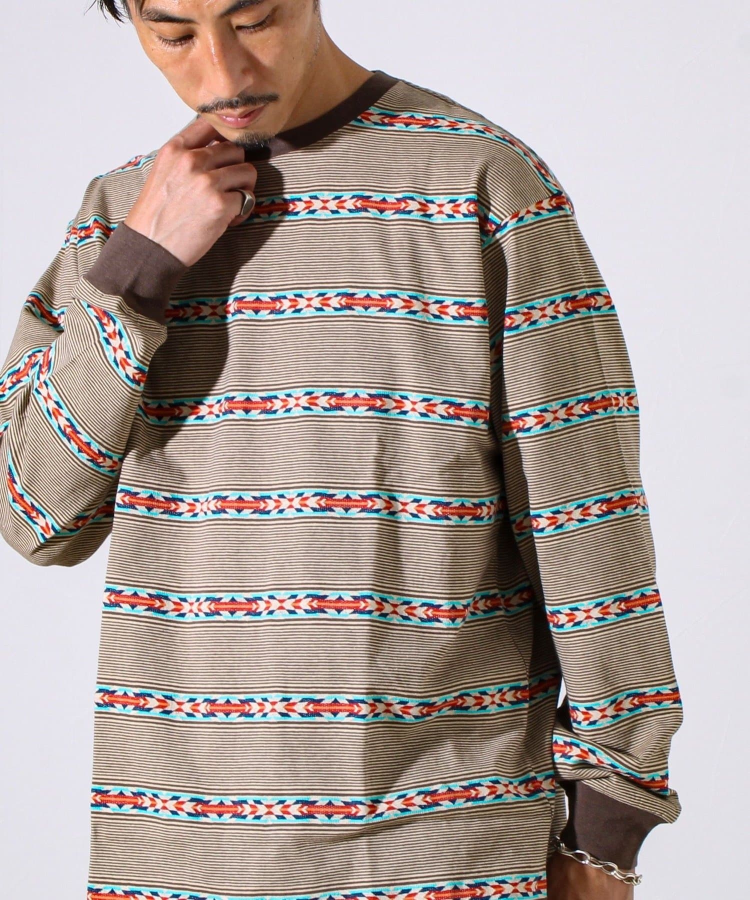 #PENDLETON #ペンドルトン #ジャガードロンT #ネイティブ柄 #ボーダー柄ロンT #秋冬コーデ #大人カジュアル #リラックススタイル #ユニセックスコーデ #アメカジスタイル