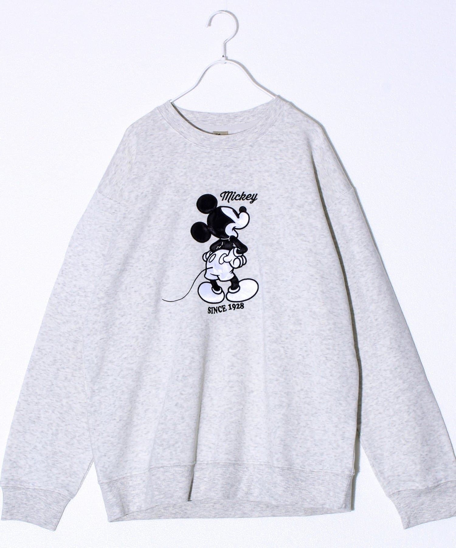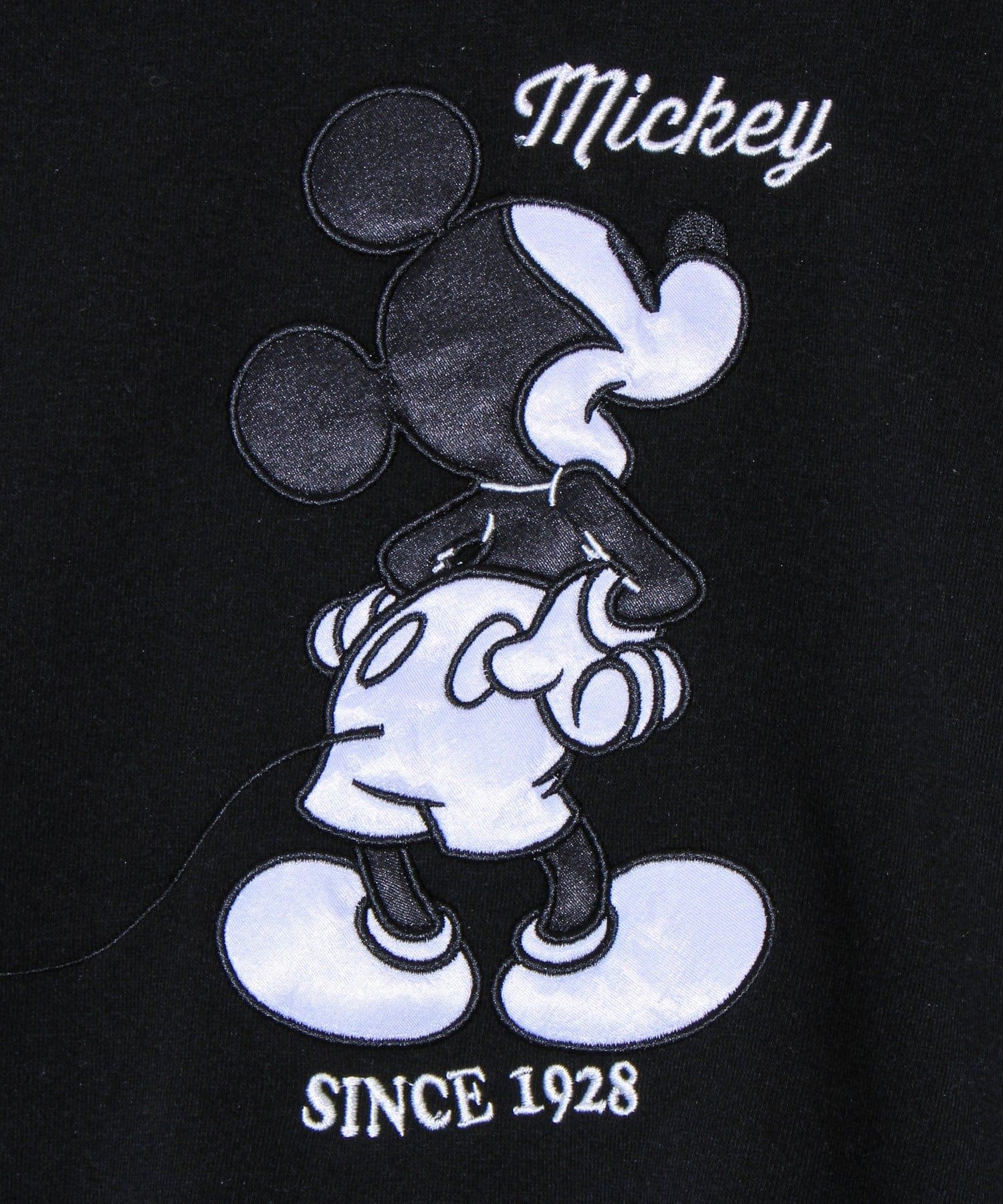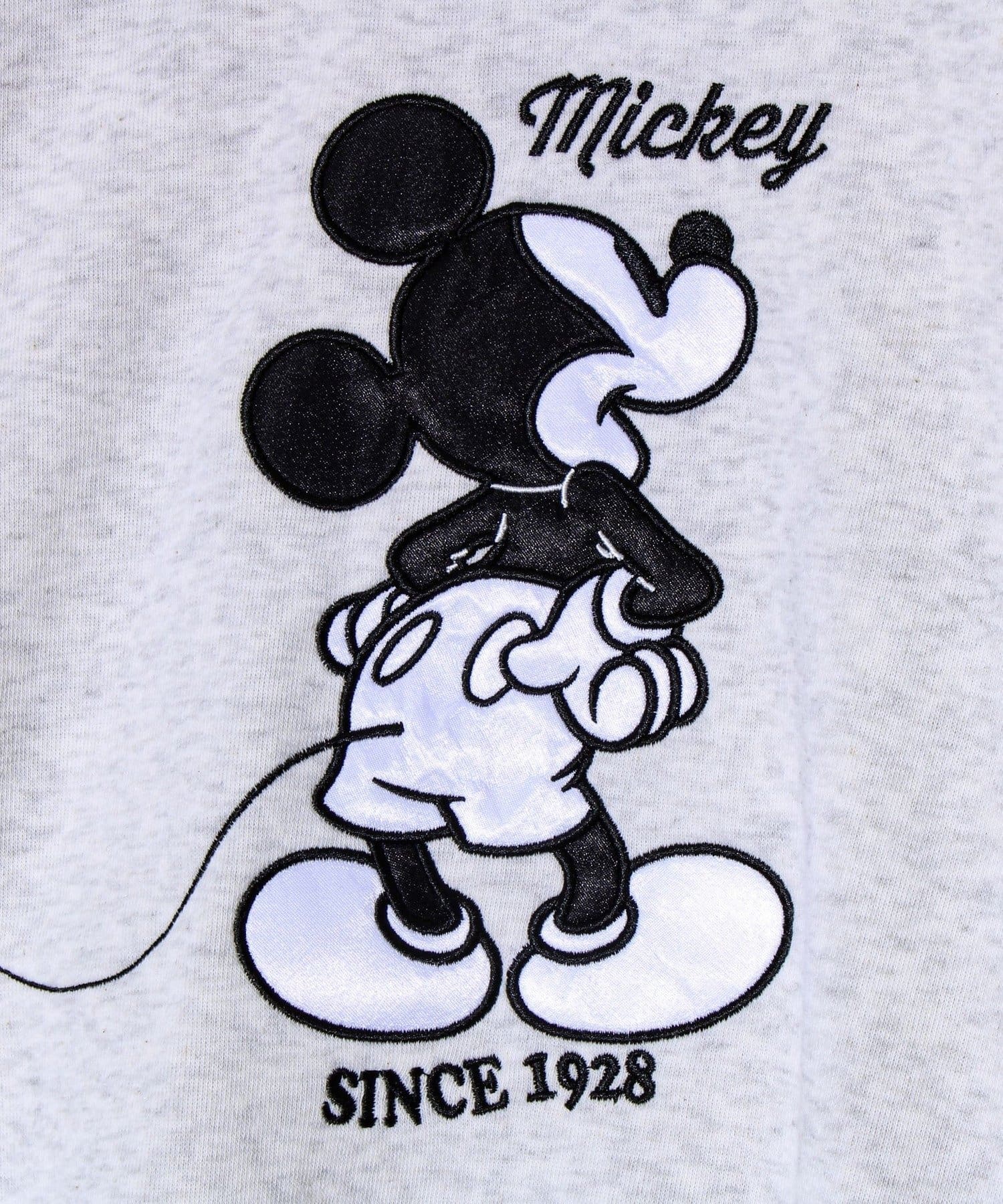 【ミッキー】UNISEX アップリケ&フロッキー&横振り刺繍 裏起毛スウェット