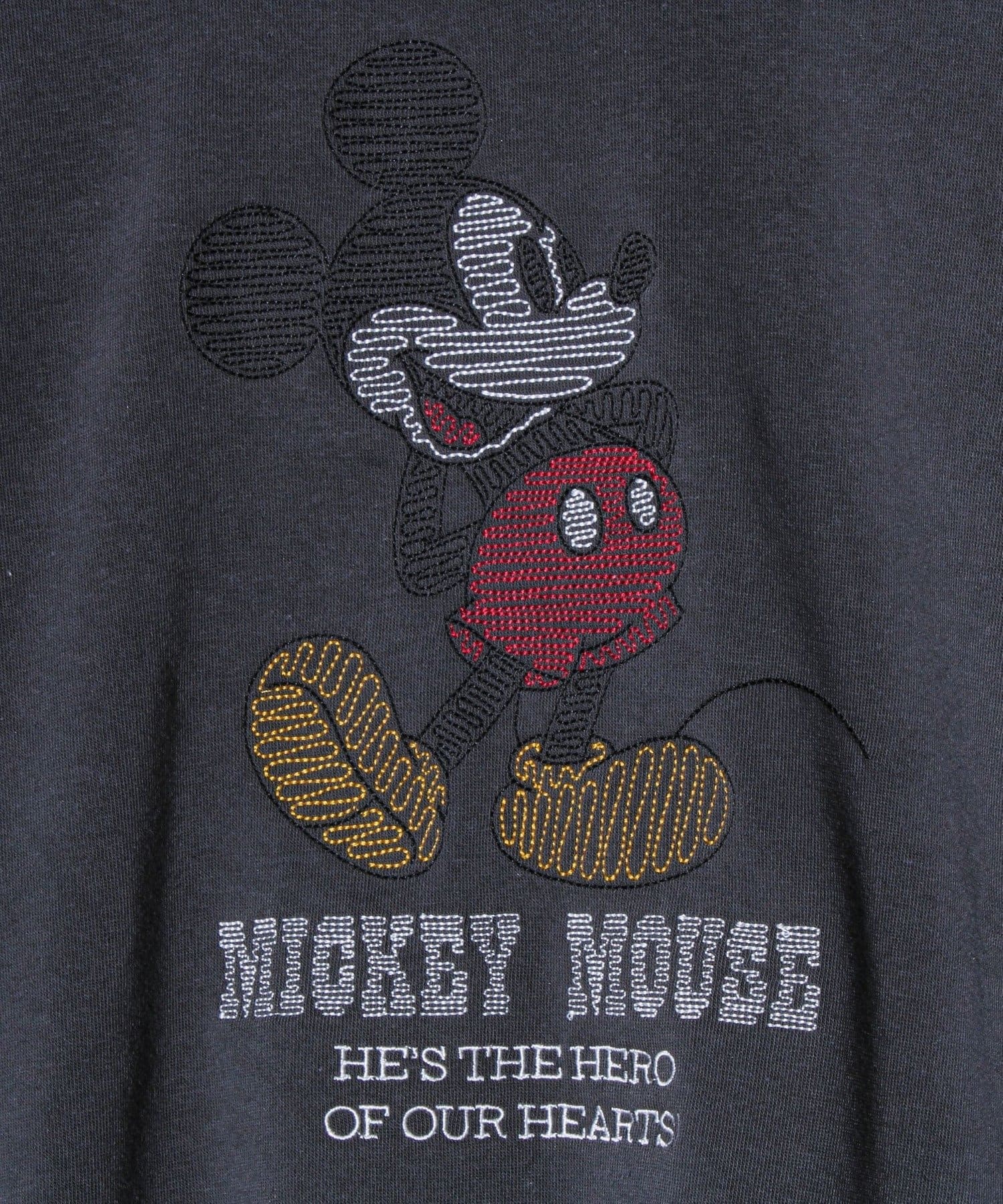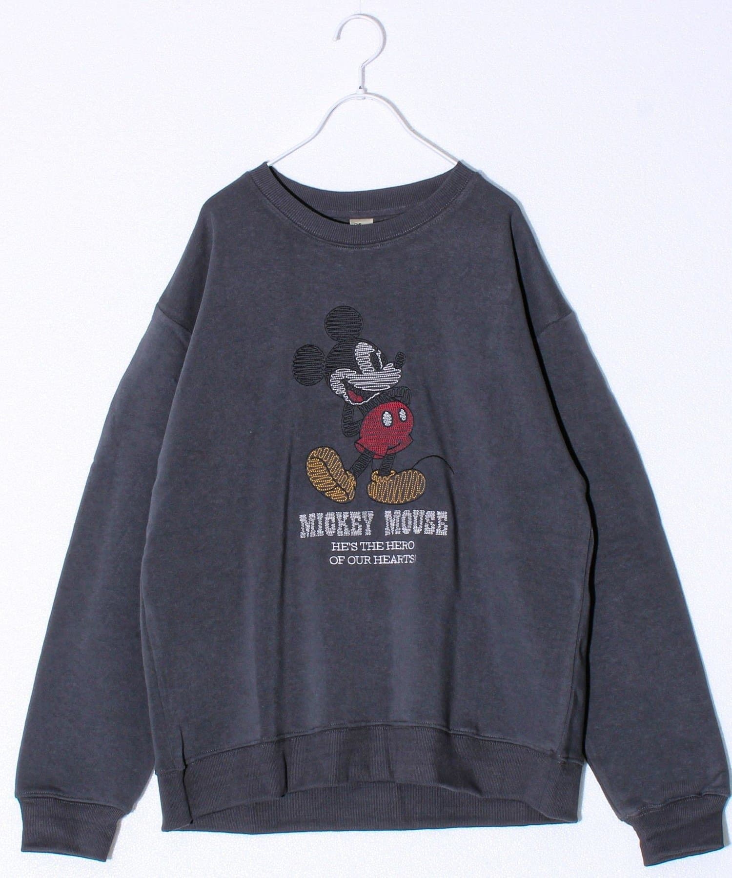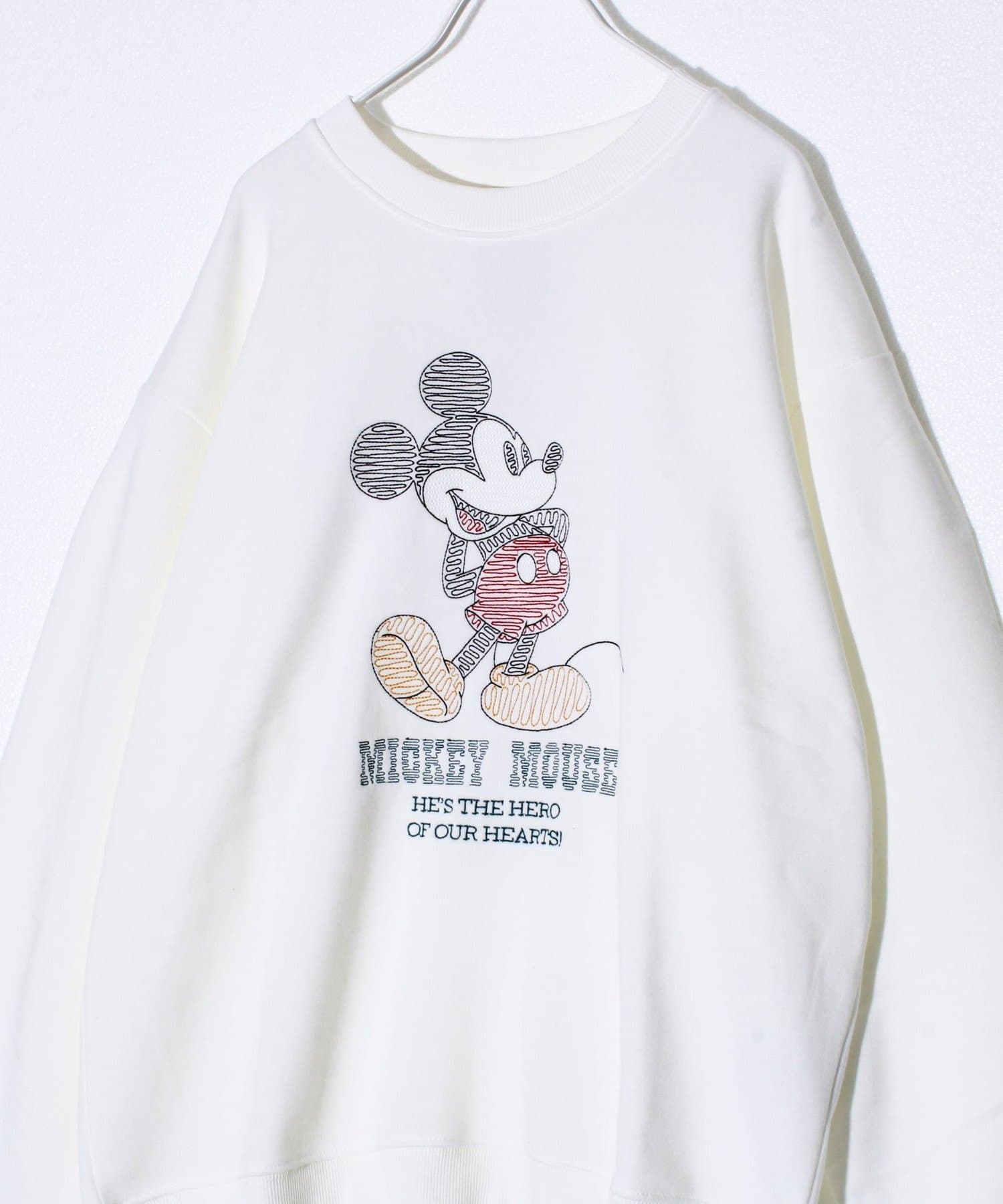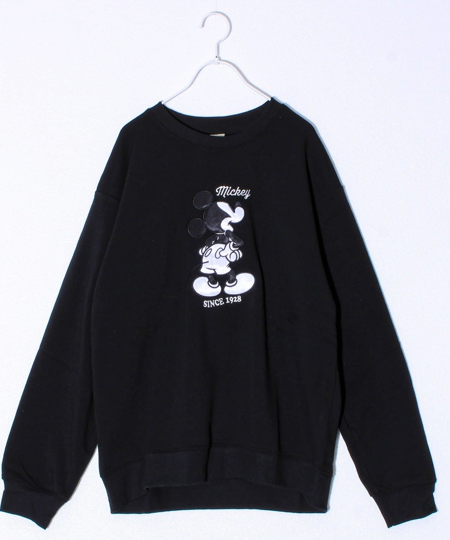【ミッキー】UNISEX アップリケ&フロッキー&横振り刺繍 裏起毛スウェット
