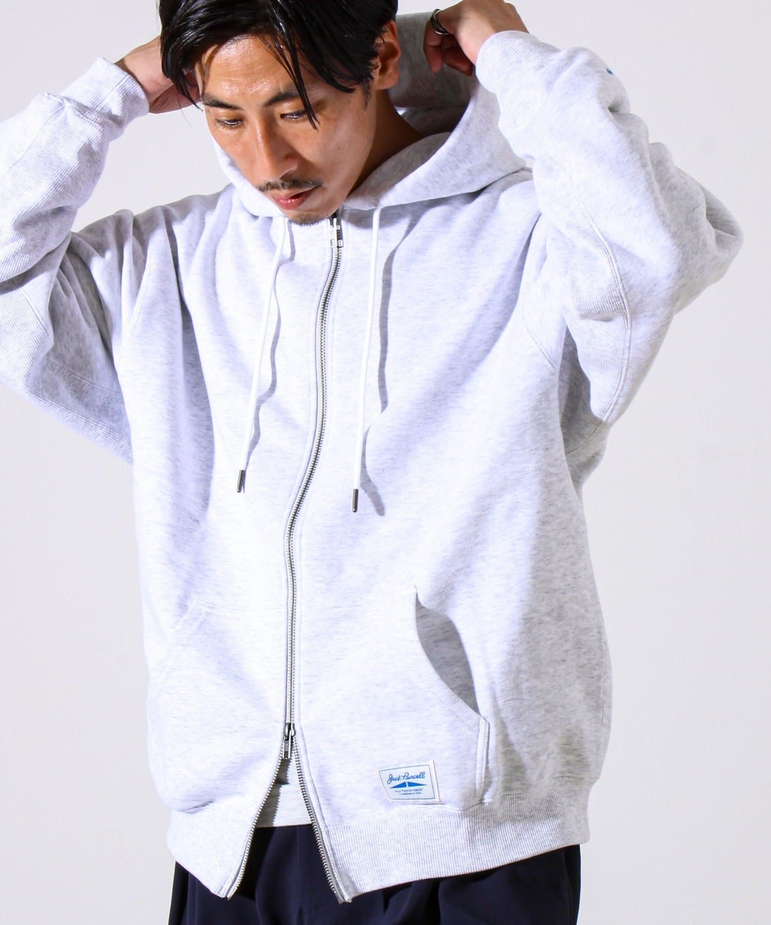 #ジップパーカー #スウェットパーカー #裏毛スウェット #ユニセックスパーカー #大人カジュアル #ストリートスタイル #セットアップ対応 #JackPurcell #シンプルフーディ #フルジップフーディ