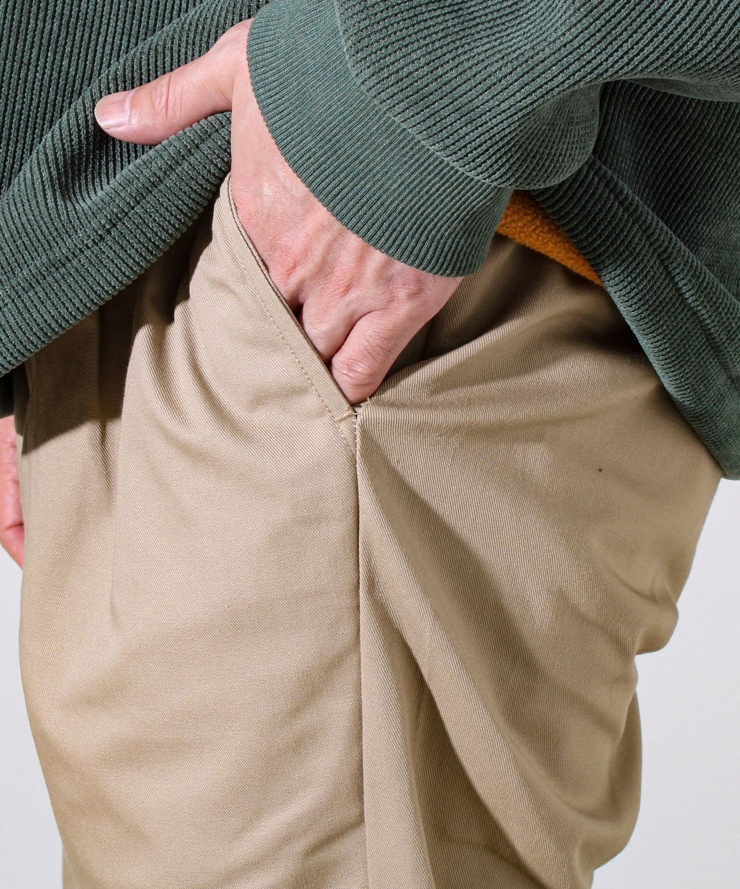 ・Dickiesの代表素材“TCツイル”を使用した、ハリと耐久性のある上品ワークパンツ