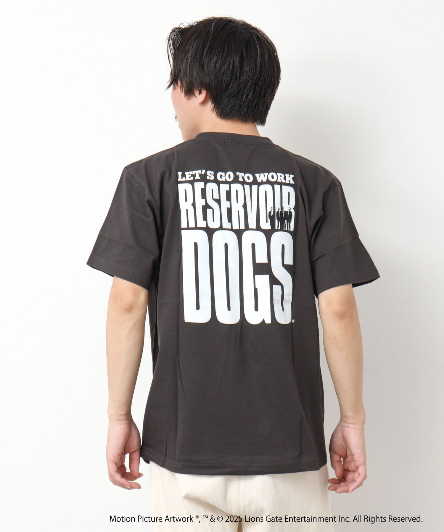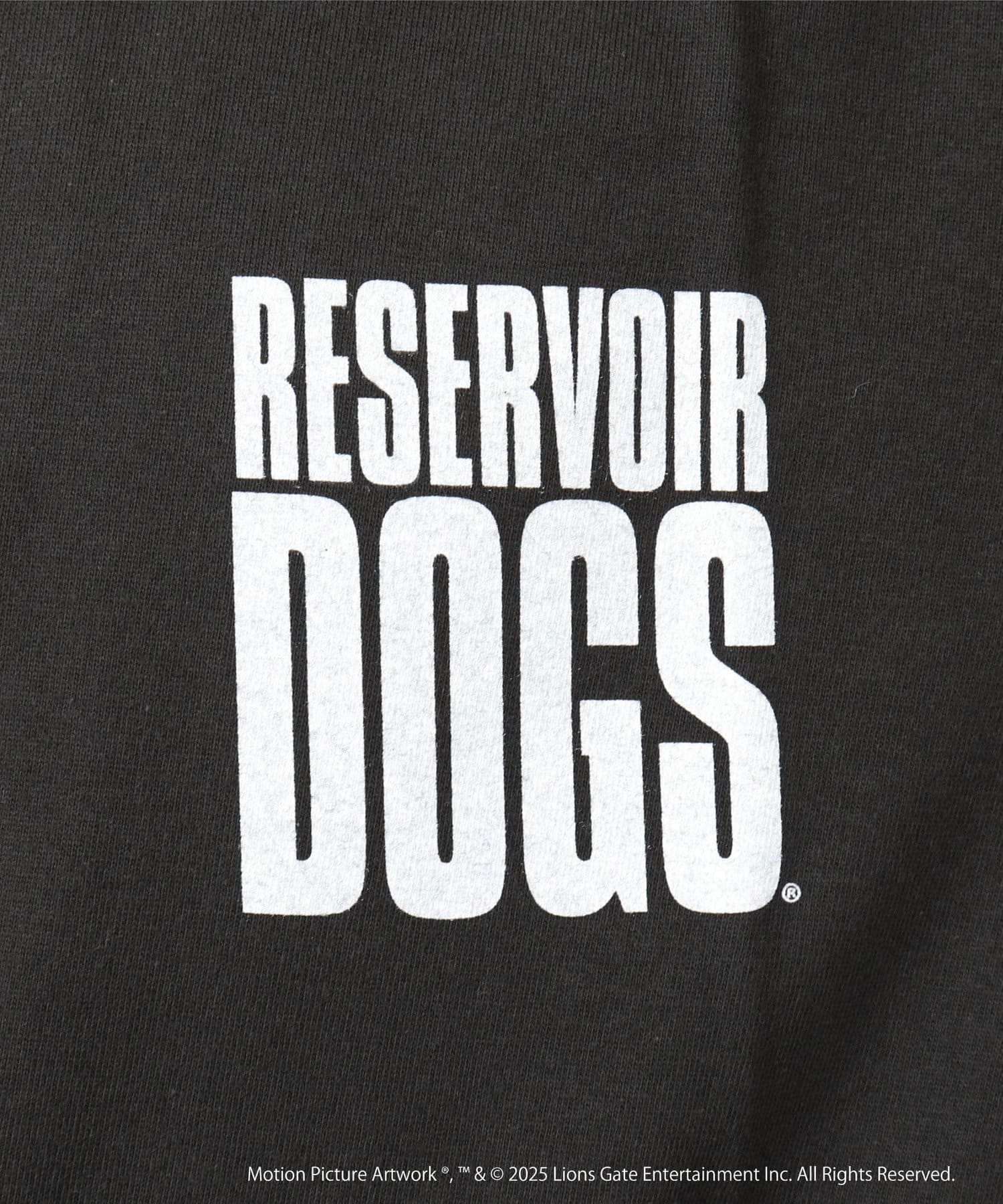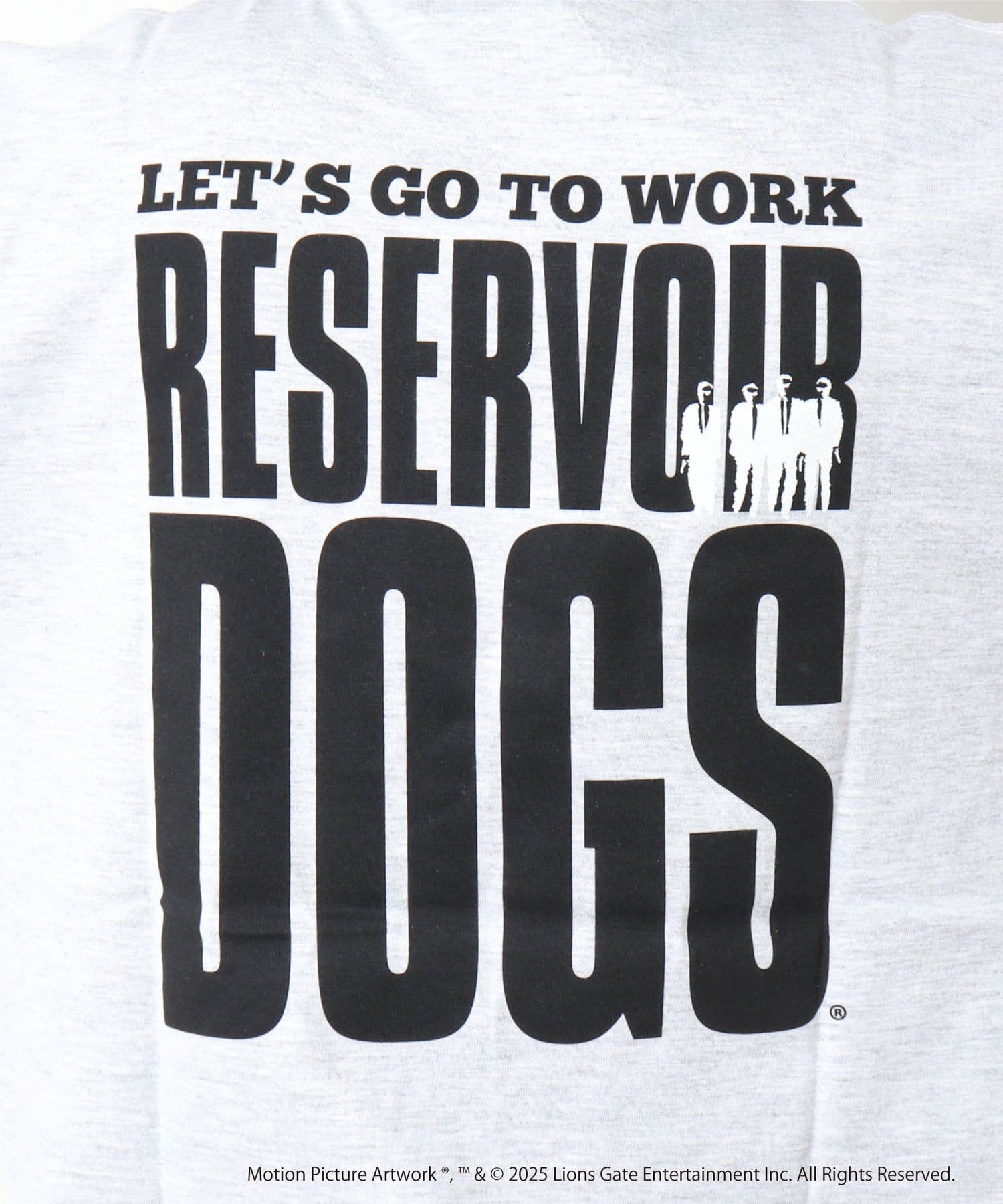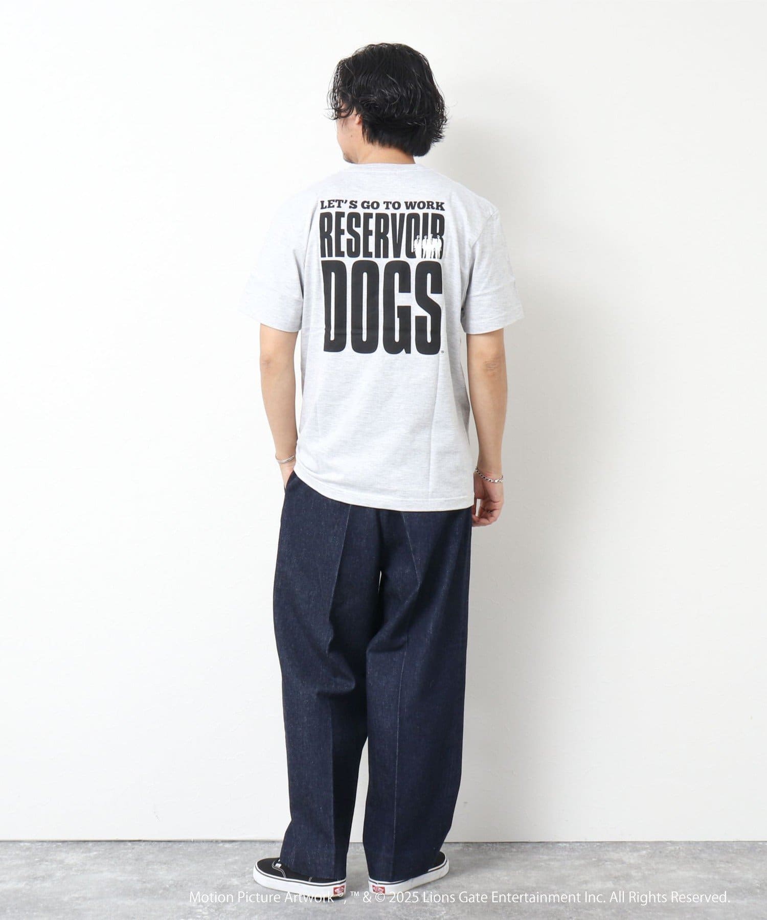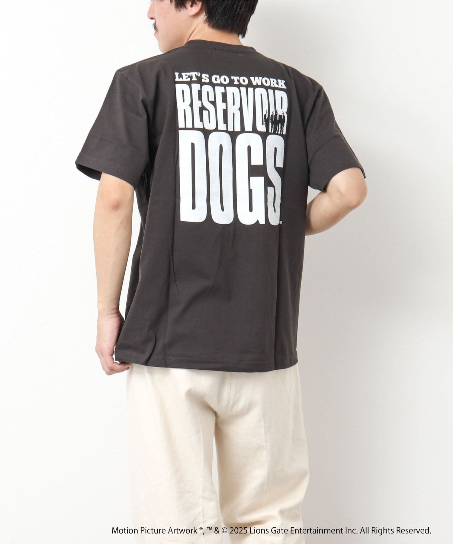 映画のオープニングのワンシーンと共にジョーのセリフ「LETS GO TO WORK」をバックに、フロント左胸には「RESERVOIR DOGS」のロゴをプリント。