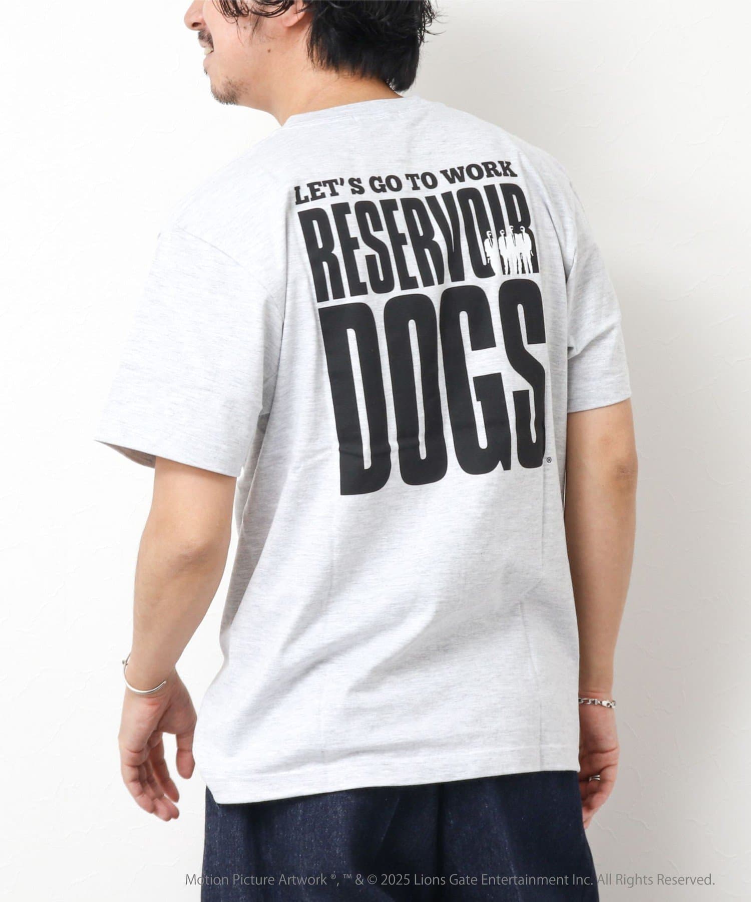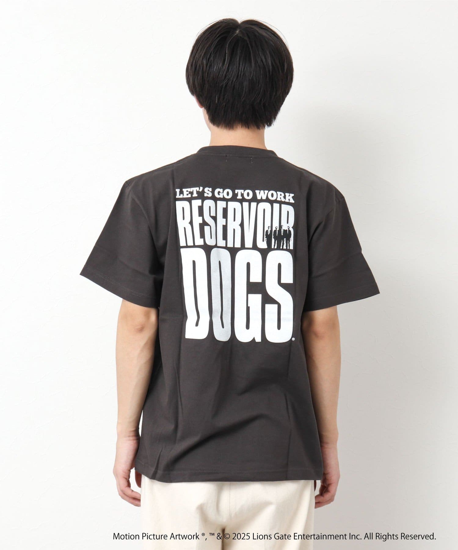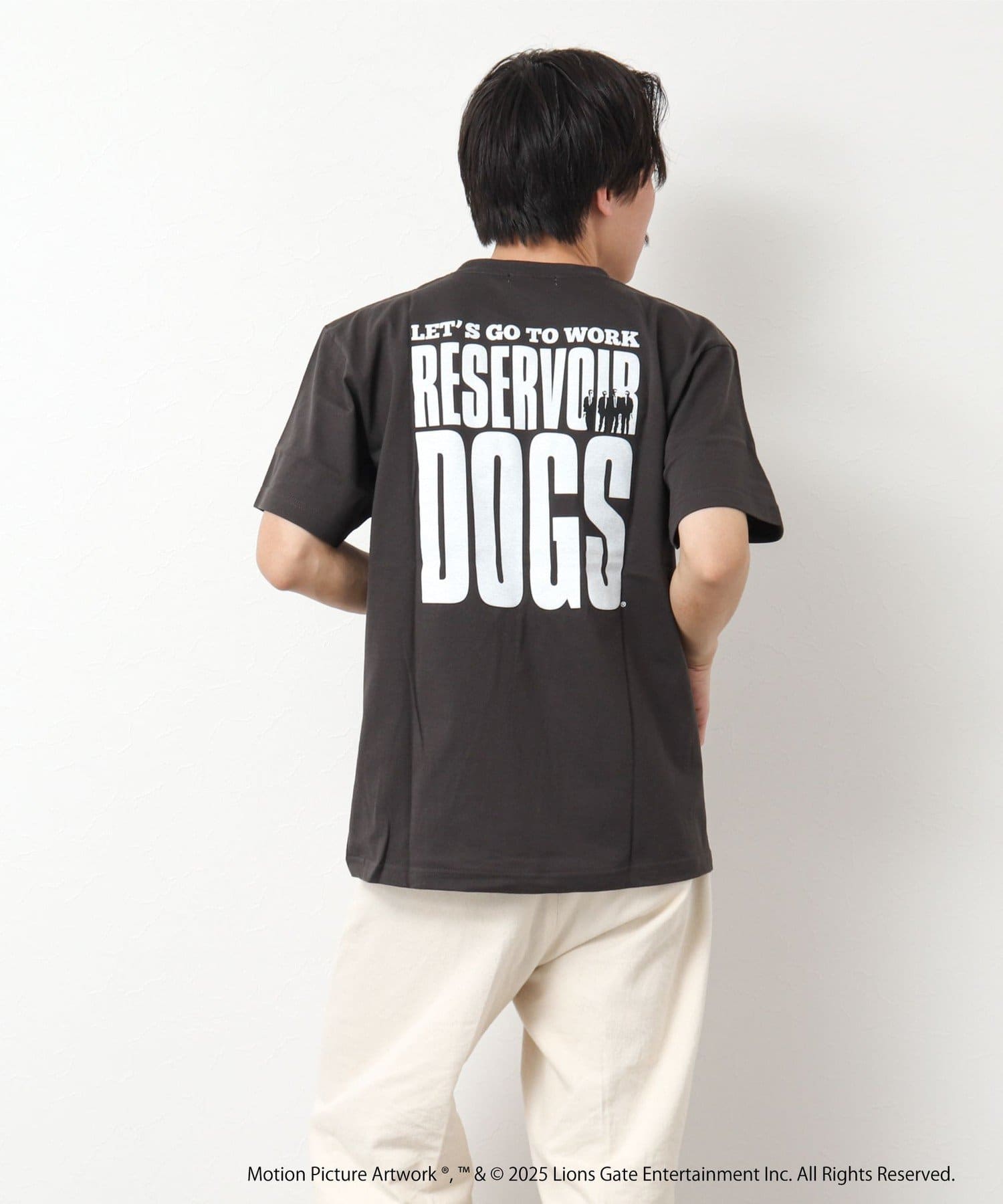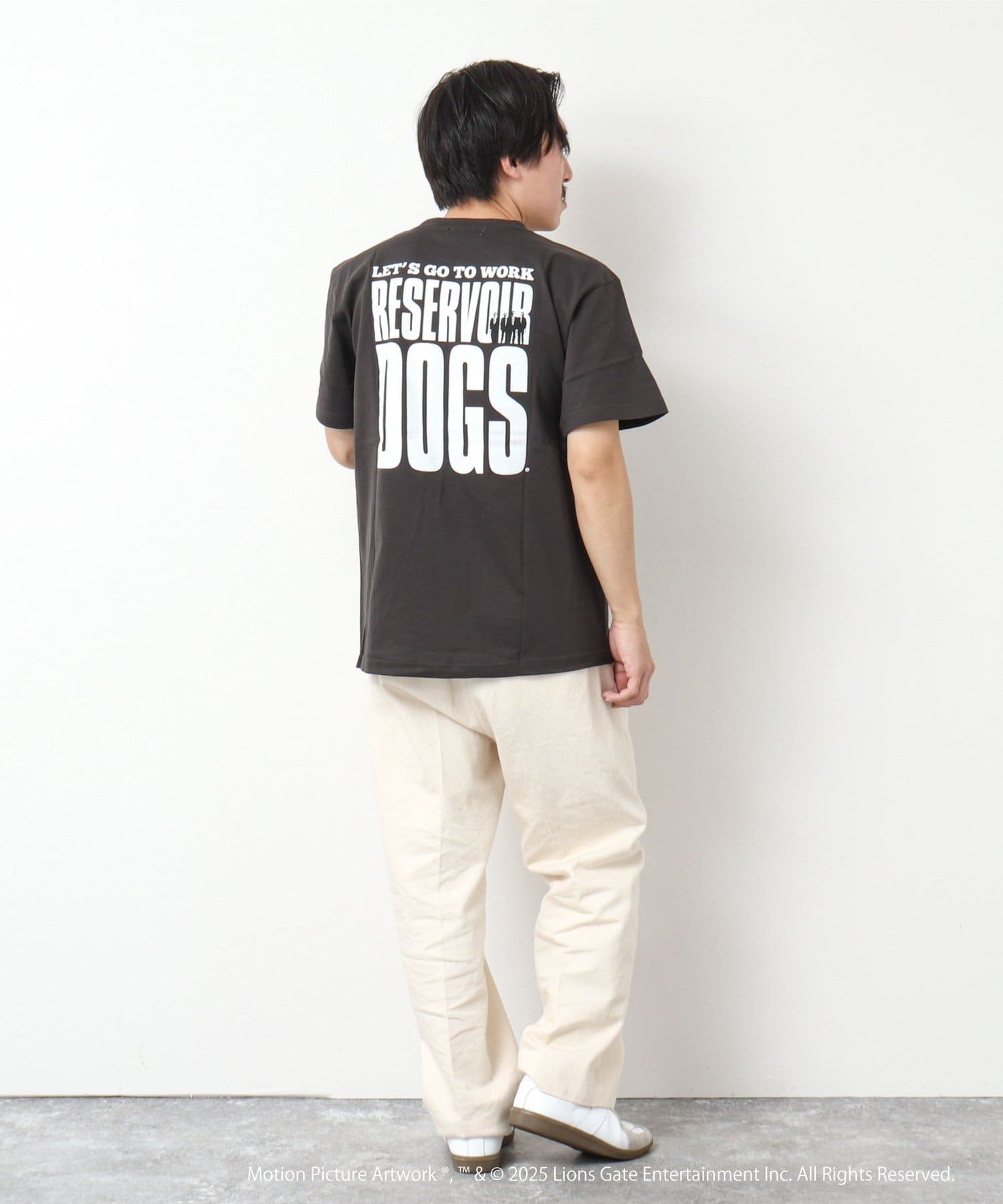映画のオープニングのワンシーンと共にジョーのセリフ「LETS GO TO WORK」をバックに、フロント左胸には「RESERVOIR DOGS」のロゴをプリント。