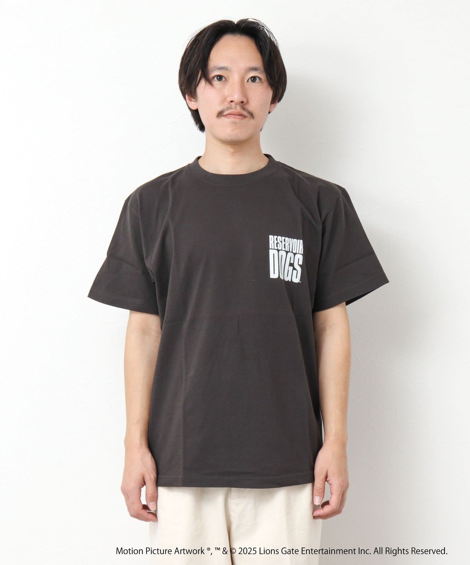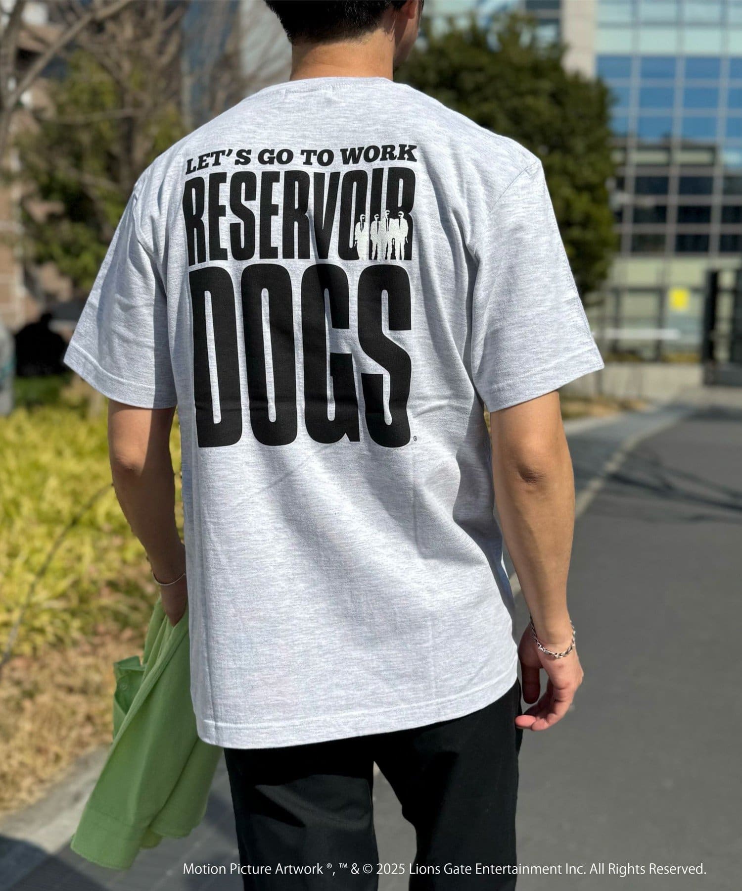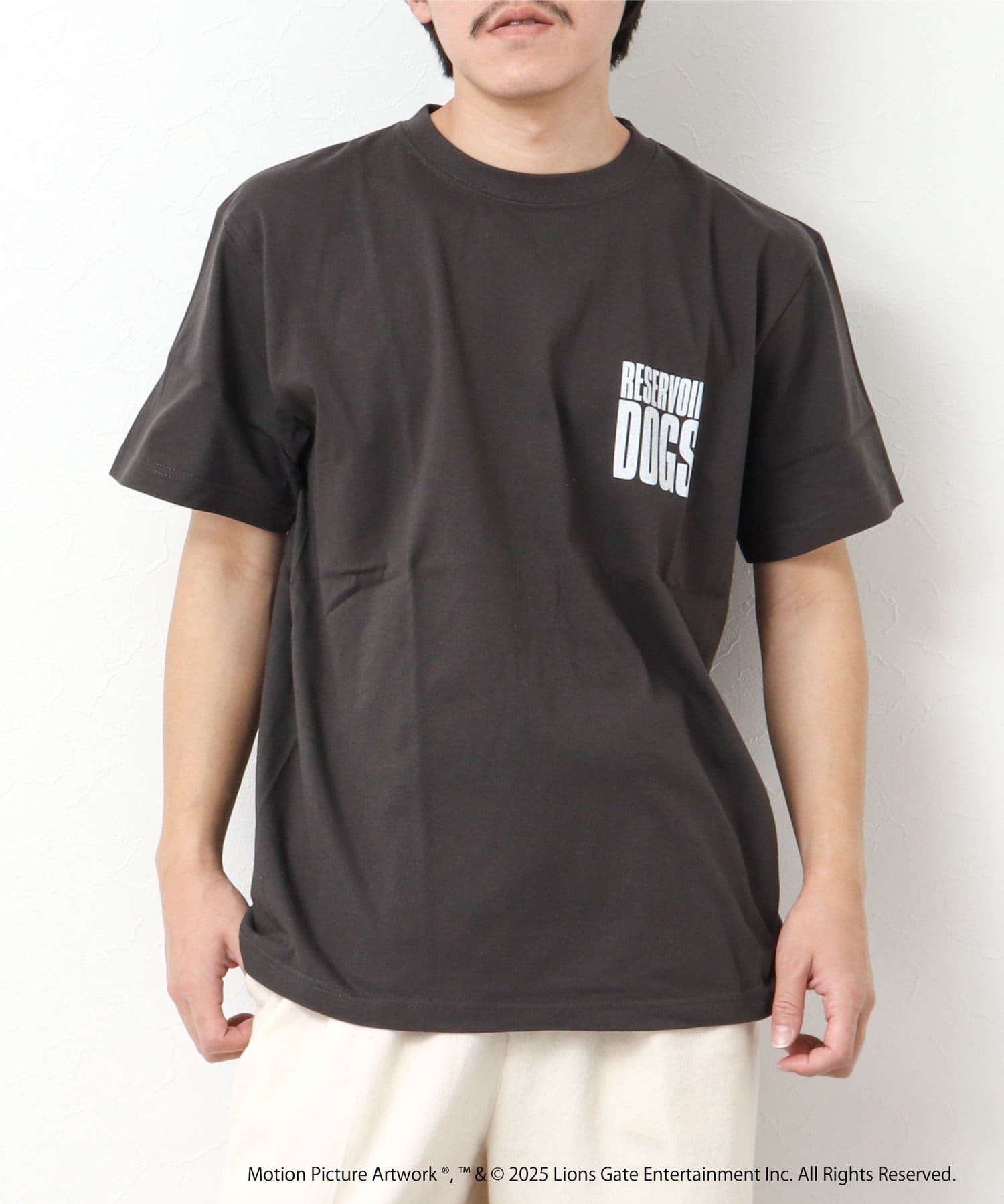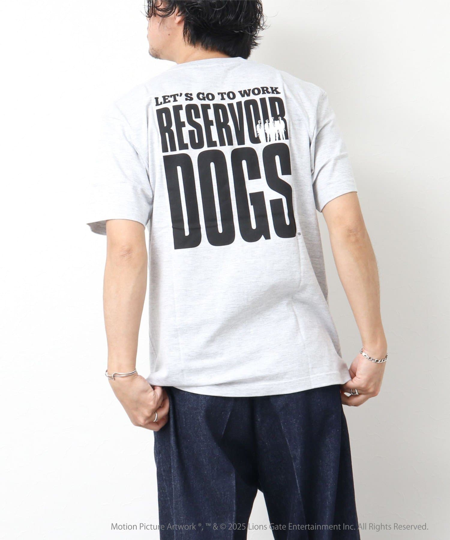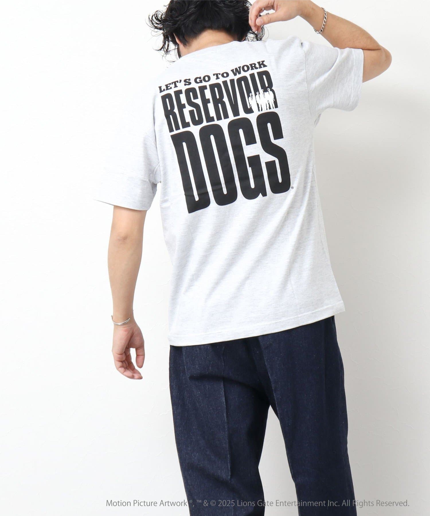 映画のオープニングのワンシーンと共にジョーのセリフ「LETS GO TO WORK」をバックに、フロント左胸には「RESERVOIR DOGS」のロゴをプリント。