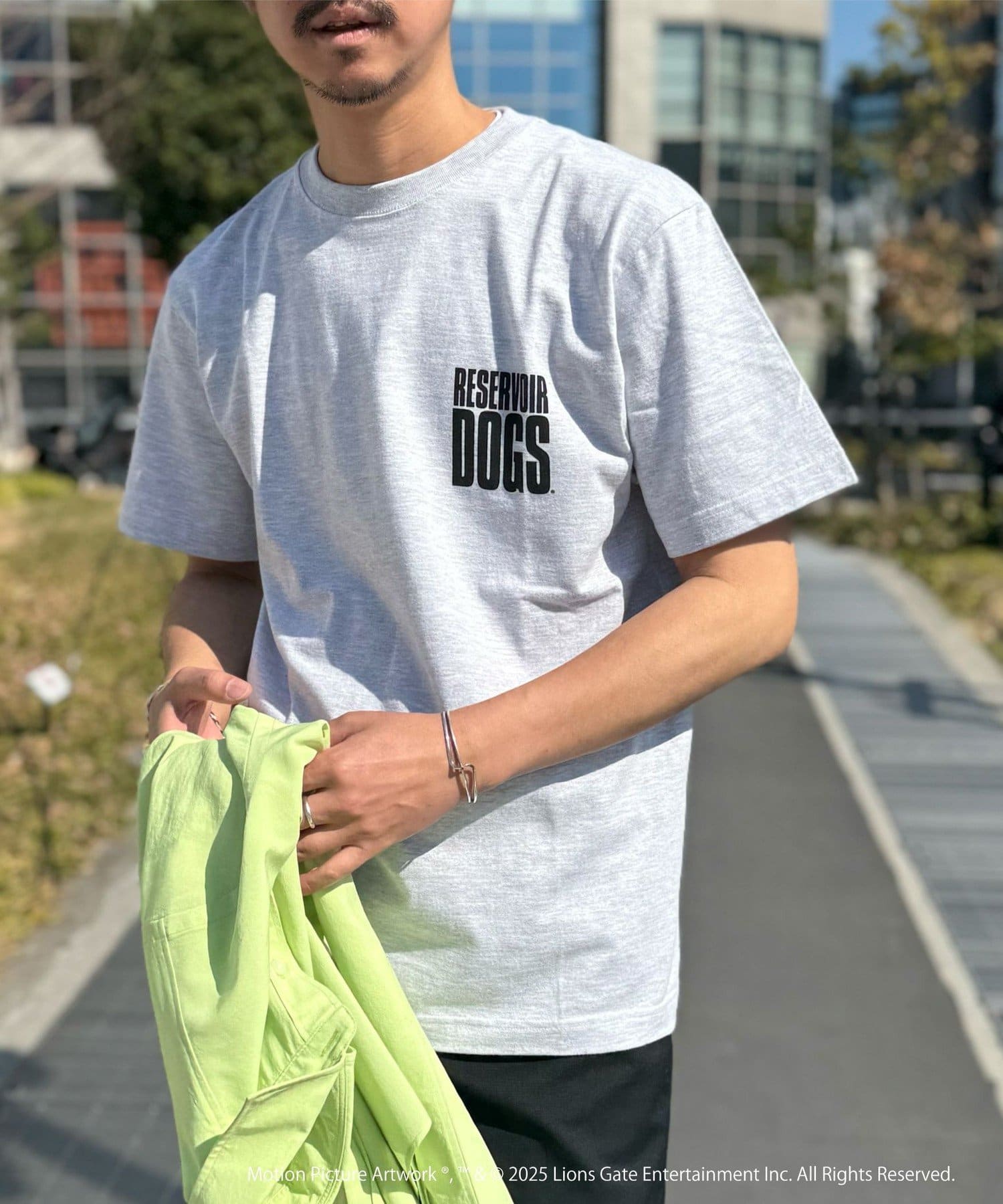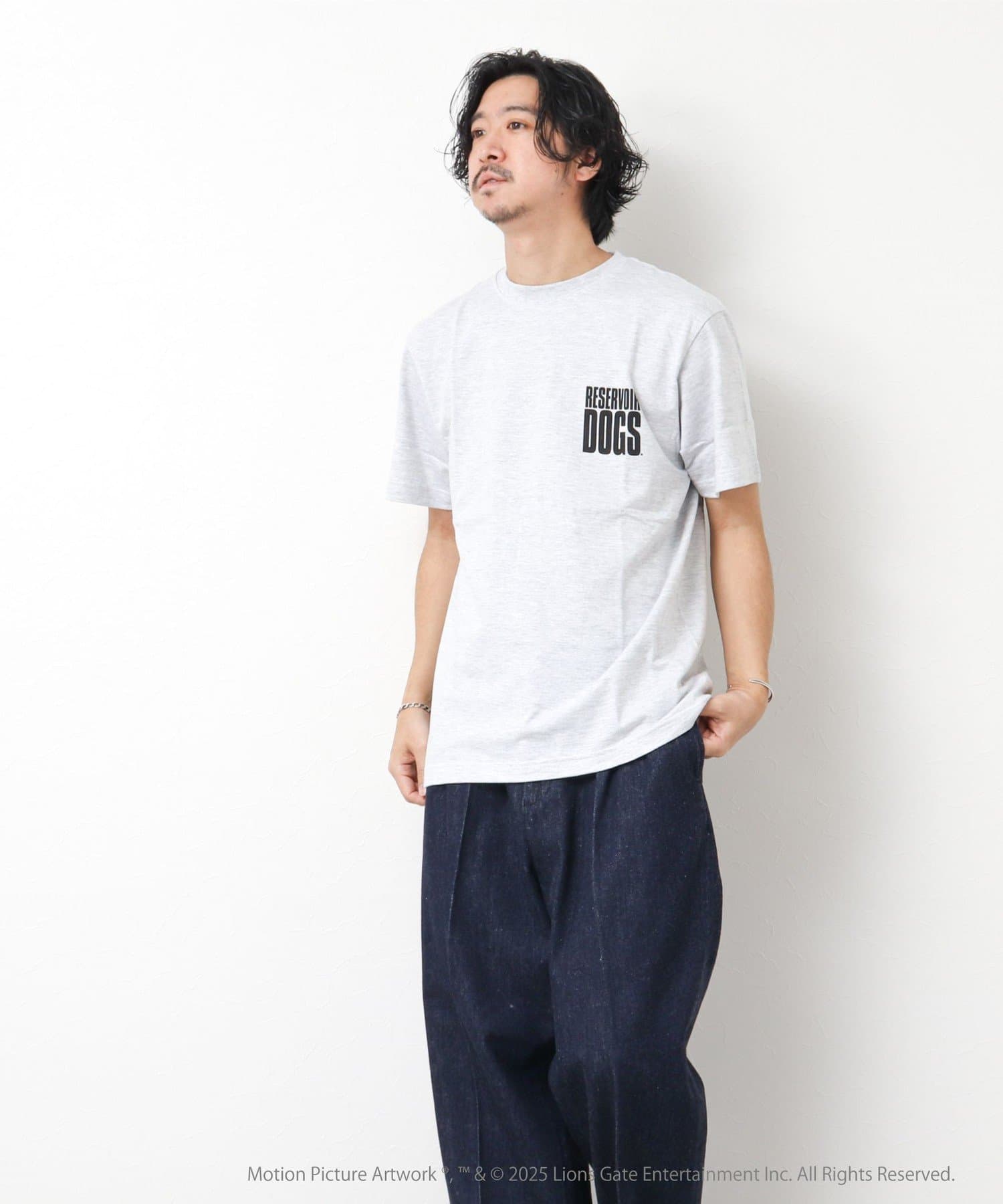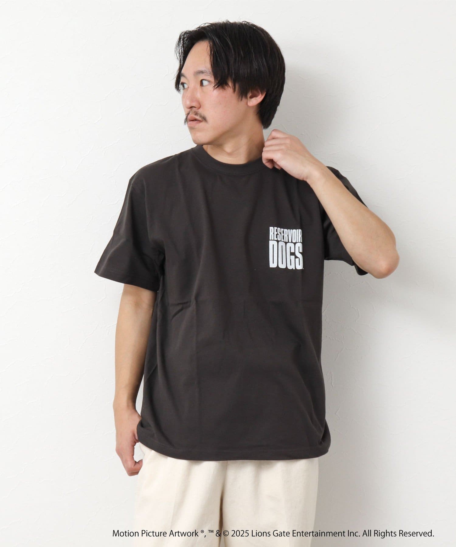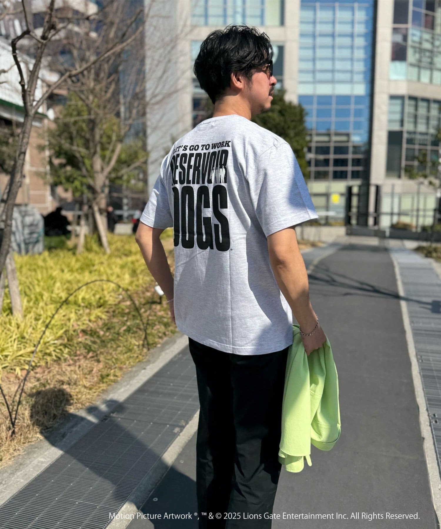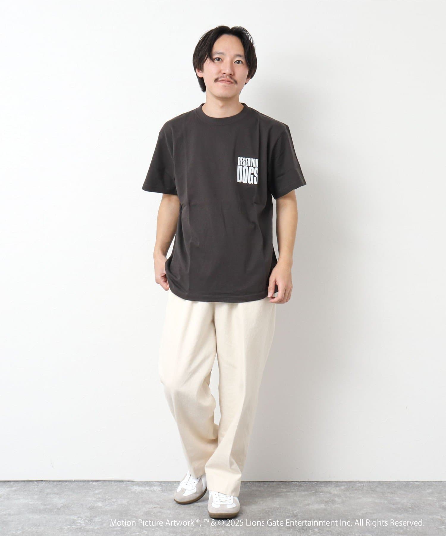 映画のオープニングのワンシーンと共にジョーのセリフ「LETS GO TO WORK」をバックに、フロント左胸には「RESERVOIR DOGS」のロゴをプリント。