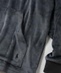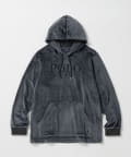環境に配慮されたリサイクルポリエステルとポリウレタンの混紡による、上質な裏起毛ベロア素材を使用したロングスリーブフーディです。