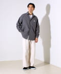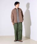 前を開けてラフに羽織り、プリントTやボーダーTで抜け感のある休日スタイルに。