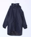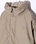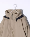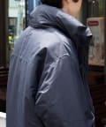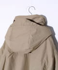 ネック部分にはフードが収納されており、天候やスタイリングに合わせてお使いいただけます。