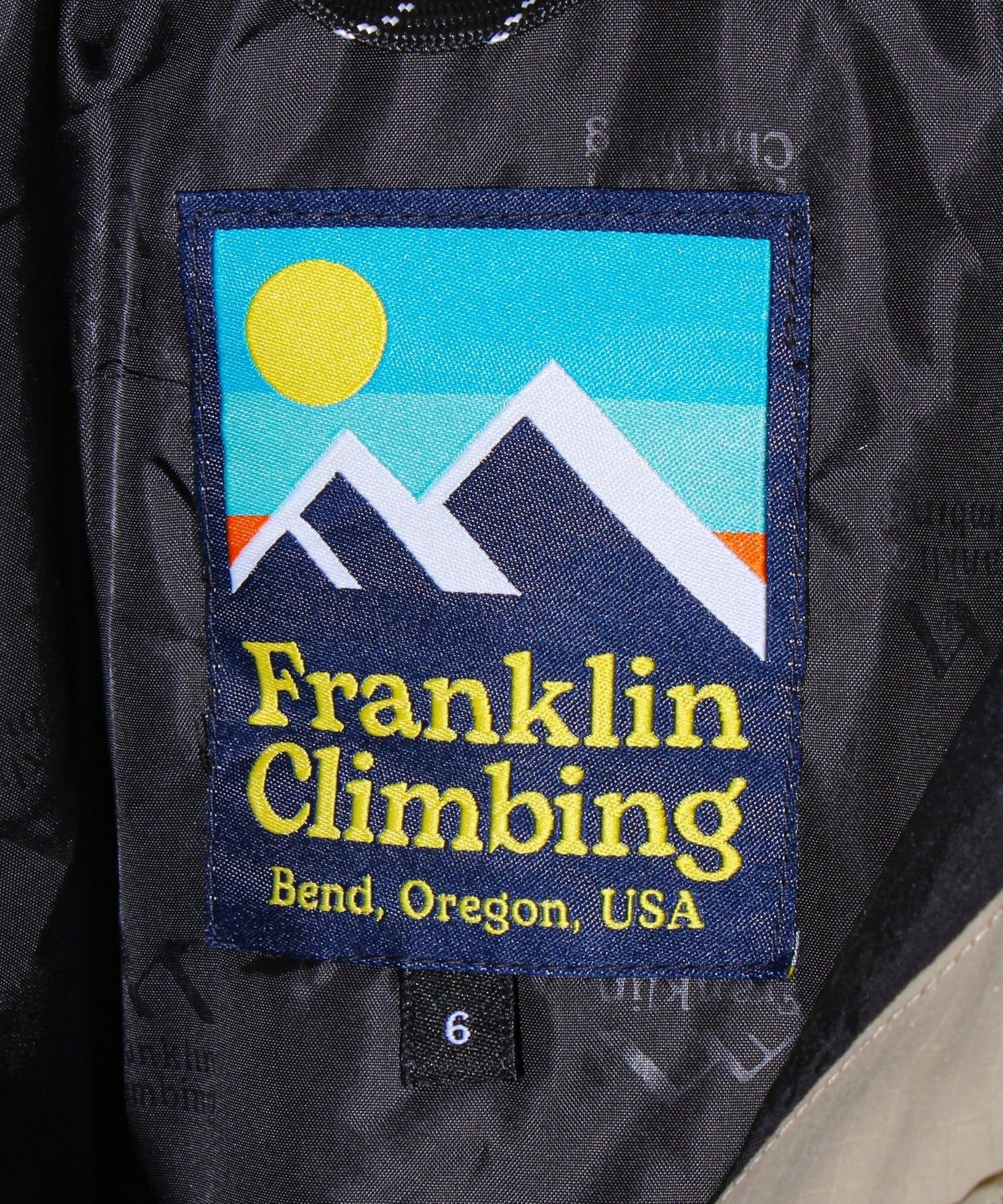 フランクリンクライミングは、1995年アメリカのオレゴン州にて誕生しました。クライミングホールドやギアの制作、販売を行い世界中のクライマーから支持を集めました。その後、本国でアパレル商品の販売を開始し、90年代後半から2000年初頭そのデザイン性からギアだけでなくアパレル商品も人気になり一躍有名になりました。2005年には大手クライミングギア会社に統合され消滅したクライミングブランドです。