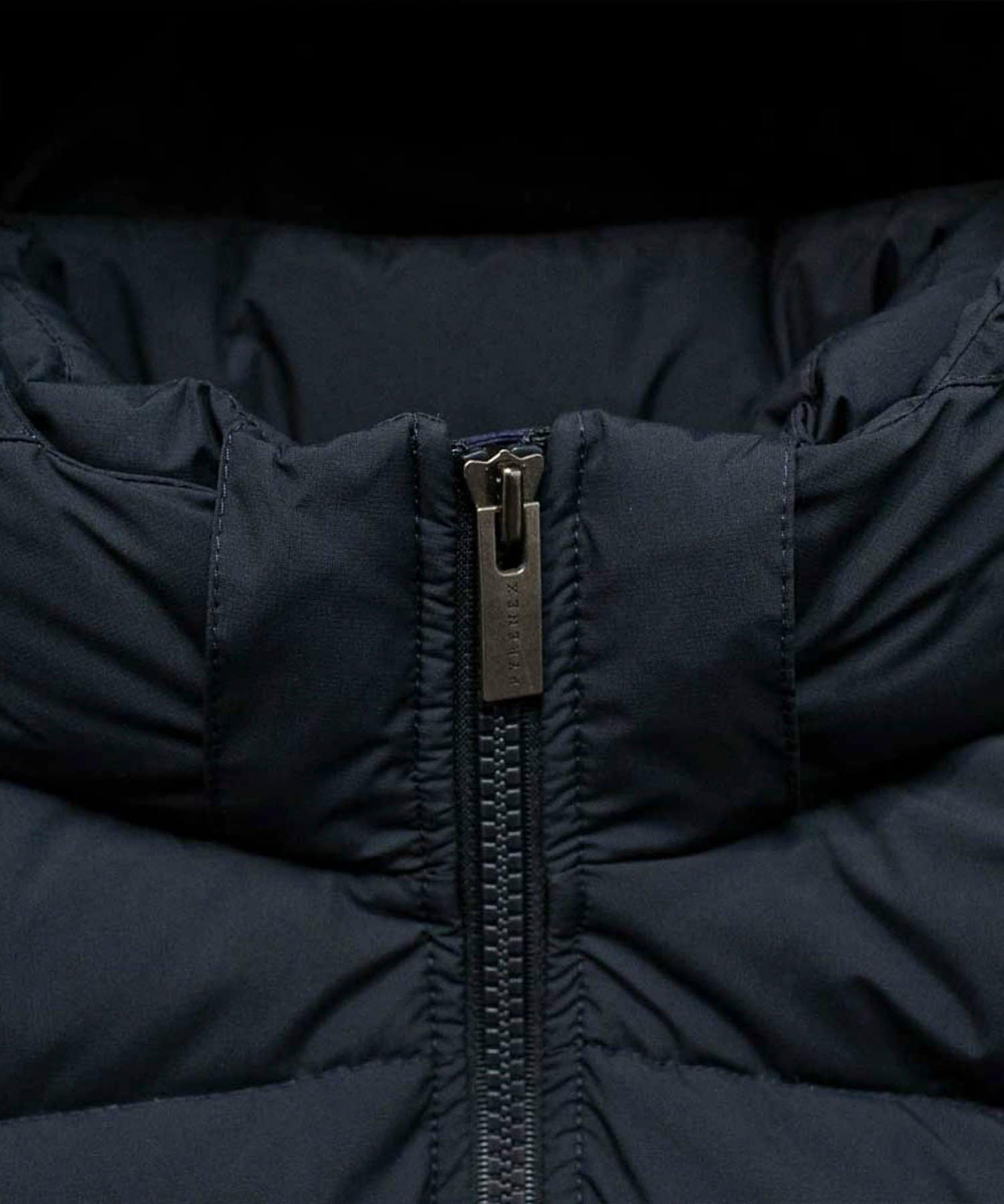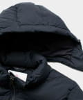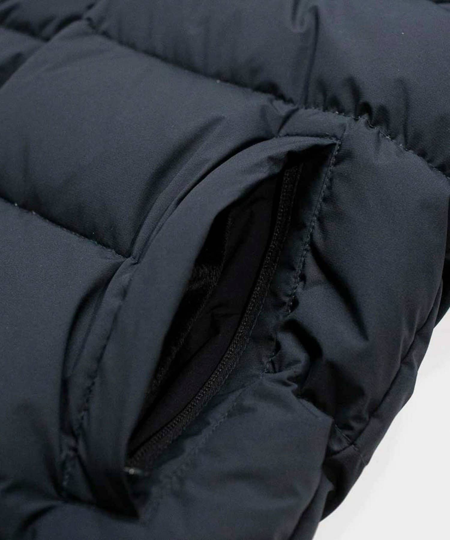 ロフト感のある上質なフレンチダックダウンを充填しており、表地には軽量ながらも耐久性にも優れるポリエステル製ミニリップストップを採用して軽快に仕上げています。