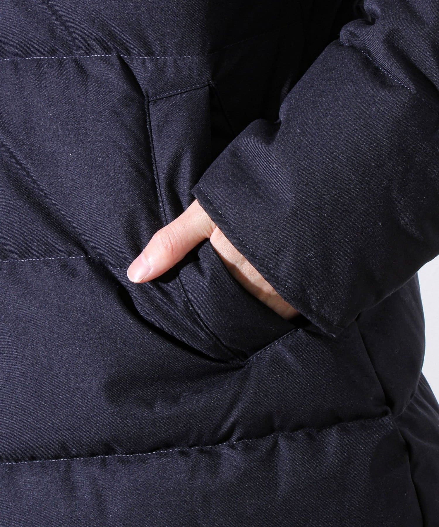 全体的にダウンのボリュームはやや抑えてはいますが、フリースライニングのフロントポケットや、袖口には冷気の侵入を防ぐ為のリブも装備しているので、防寒性能は高いレベルをキープしています。