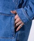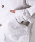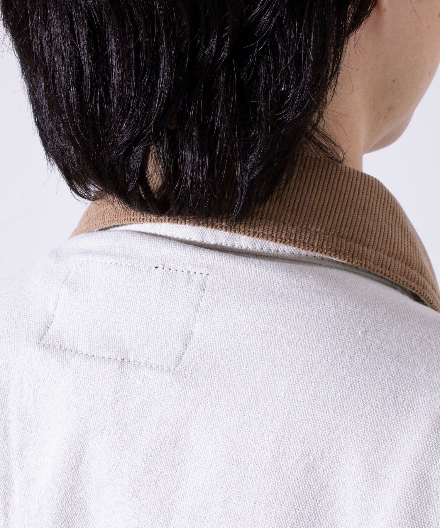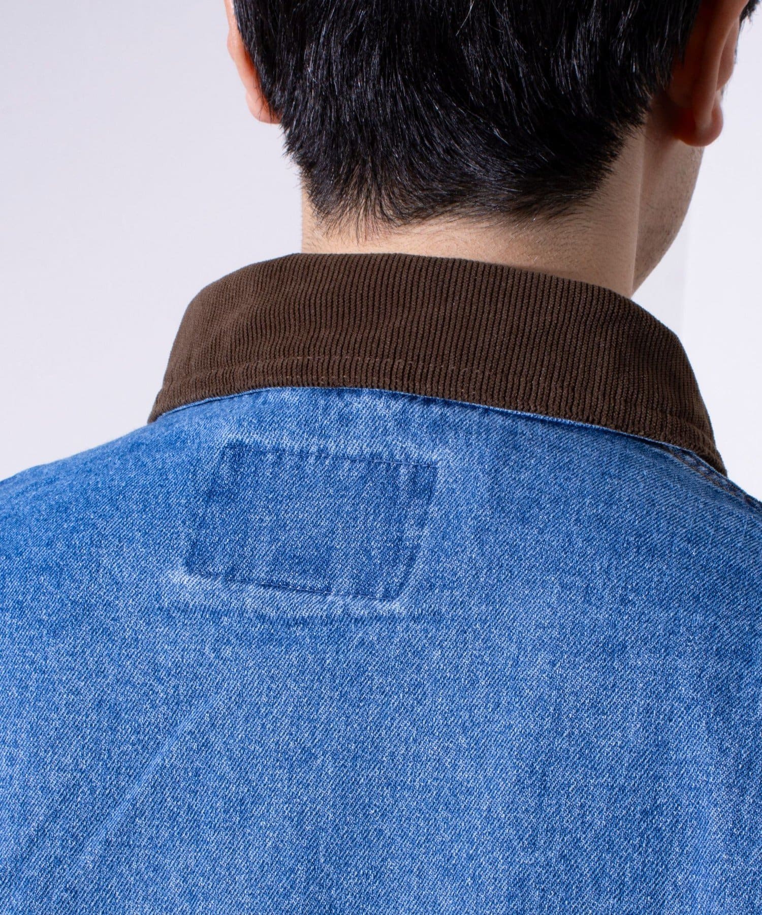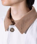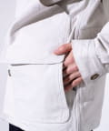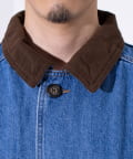 襟のコーデュロイの切替や、フロントに配置した収納力に優れた大きなポケットが、デザインを印象的に魅せるアクセントに。