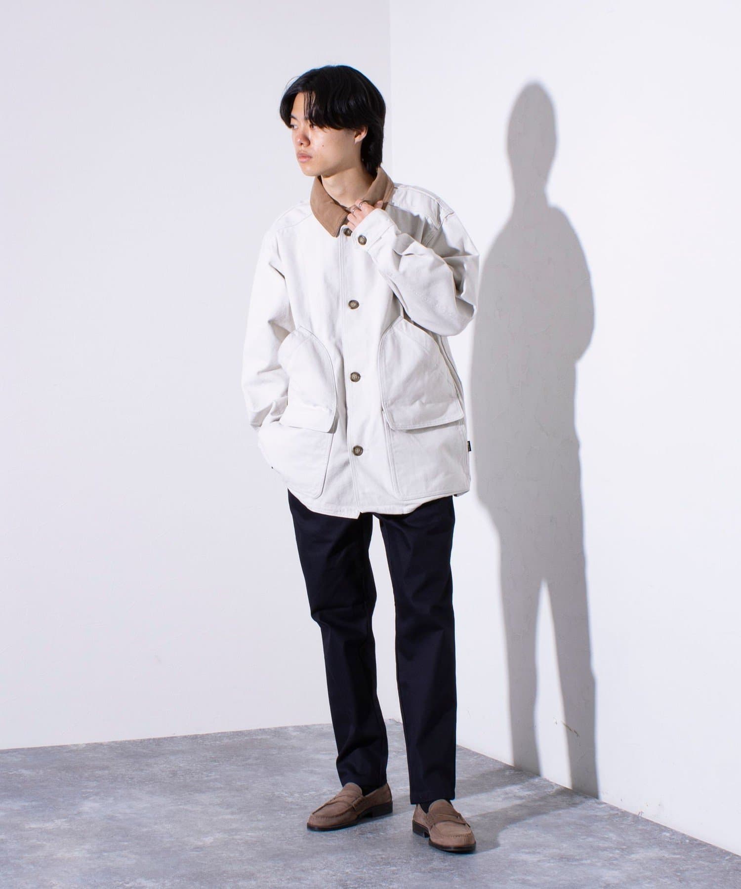 クラシックな印象のやや大きめなサイズ感で、リラックスした着心地のため、厚手のインナーとのレイヤードも可能。