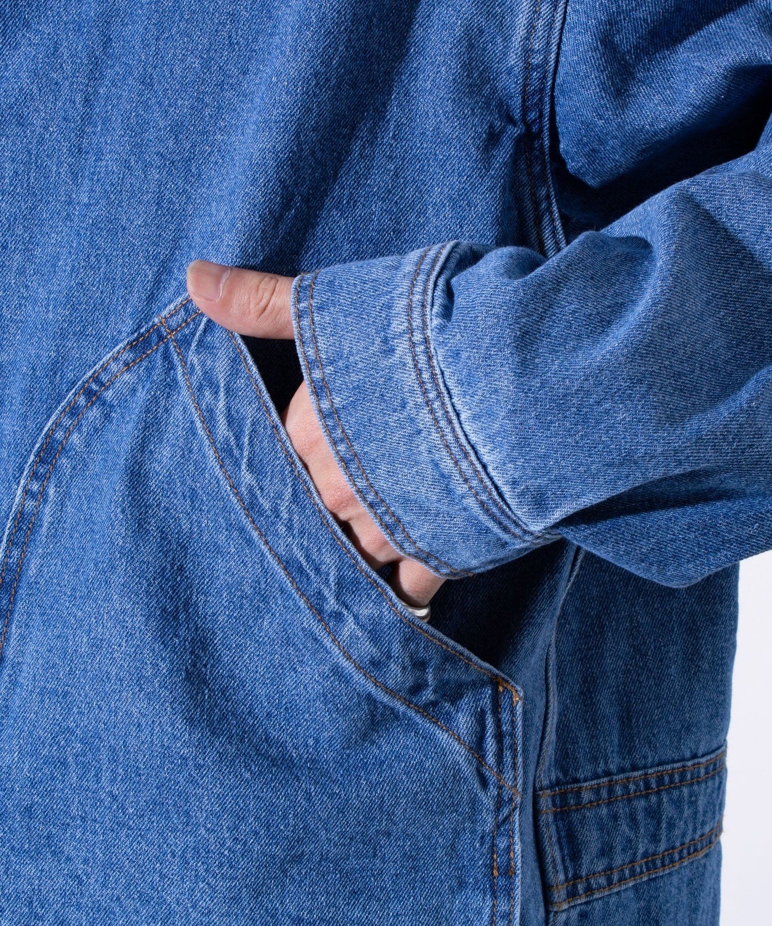 表地には、丈夫なデニム生地とダック生地を使用。