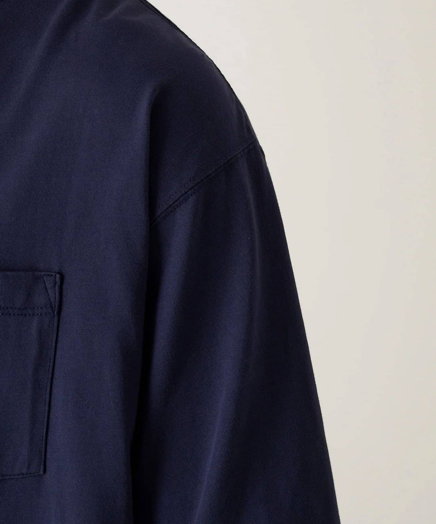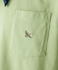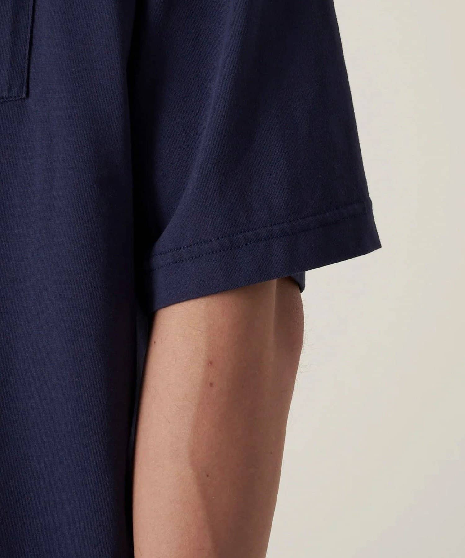 ポケットにはワンポイントのロゴ刺繍があり、肩線はタコバインダー仕様で、肌あたりの軽減とデザインのアクセントに。