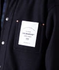 フロントのシルバーに輝く5つのタックボタンや、コッパーリベットで補強された四角いポケットなど、無駄なディテールを排したミニマルなデザインなので着る人を選びません。