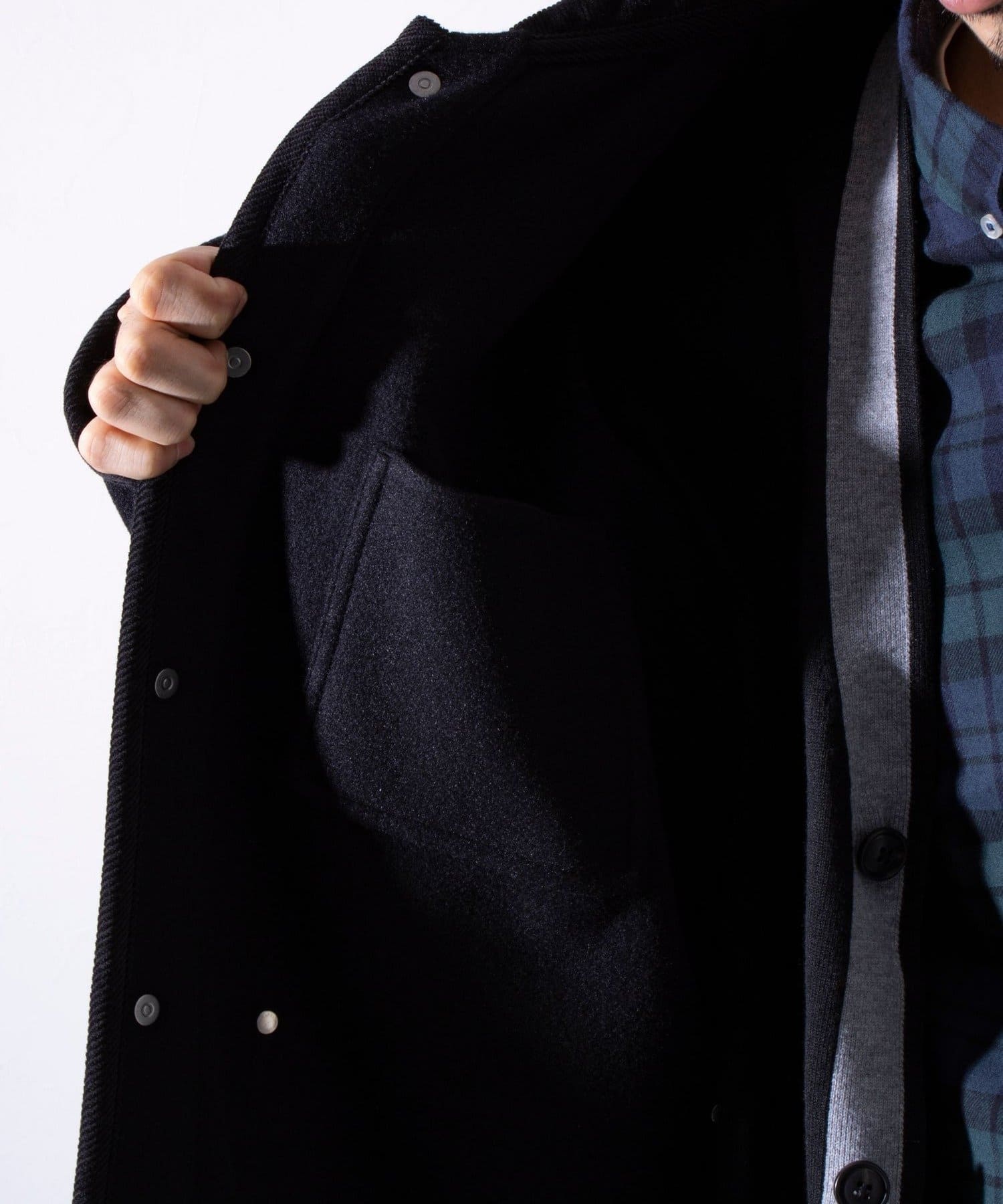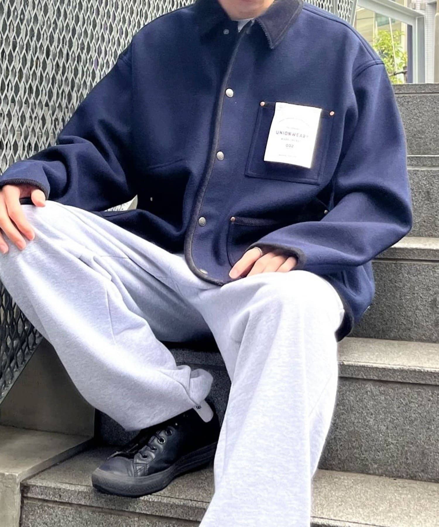 こちらのワークジャケット 002は、きちんと感がありながら、ドロップショルダーでボクシーなシルエットが魅力のカバーオールジャケットです。