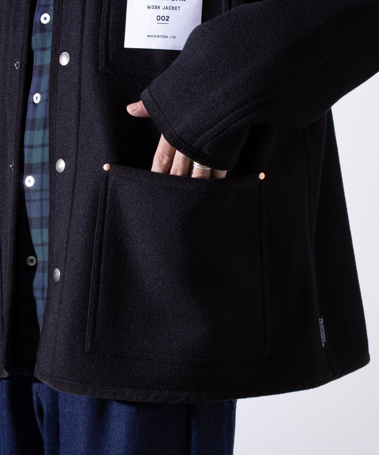 襟やパイピングには太畝のコーデュロイを使用した、英国らしいきちんとした印象のワークジャケットです。