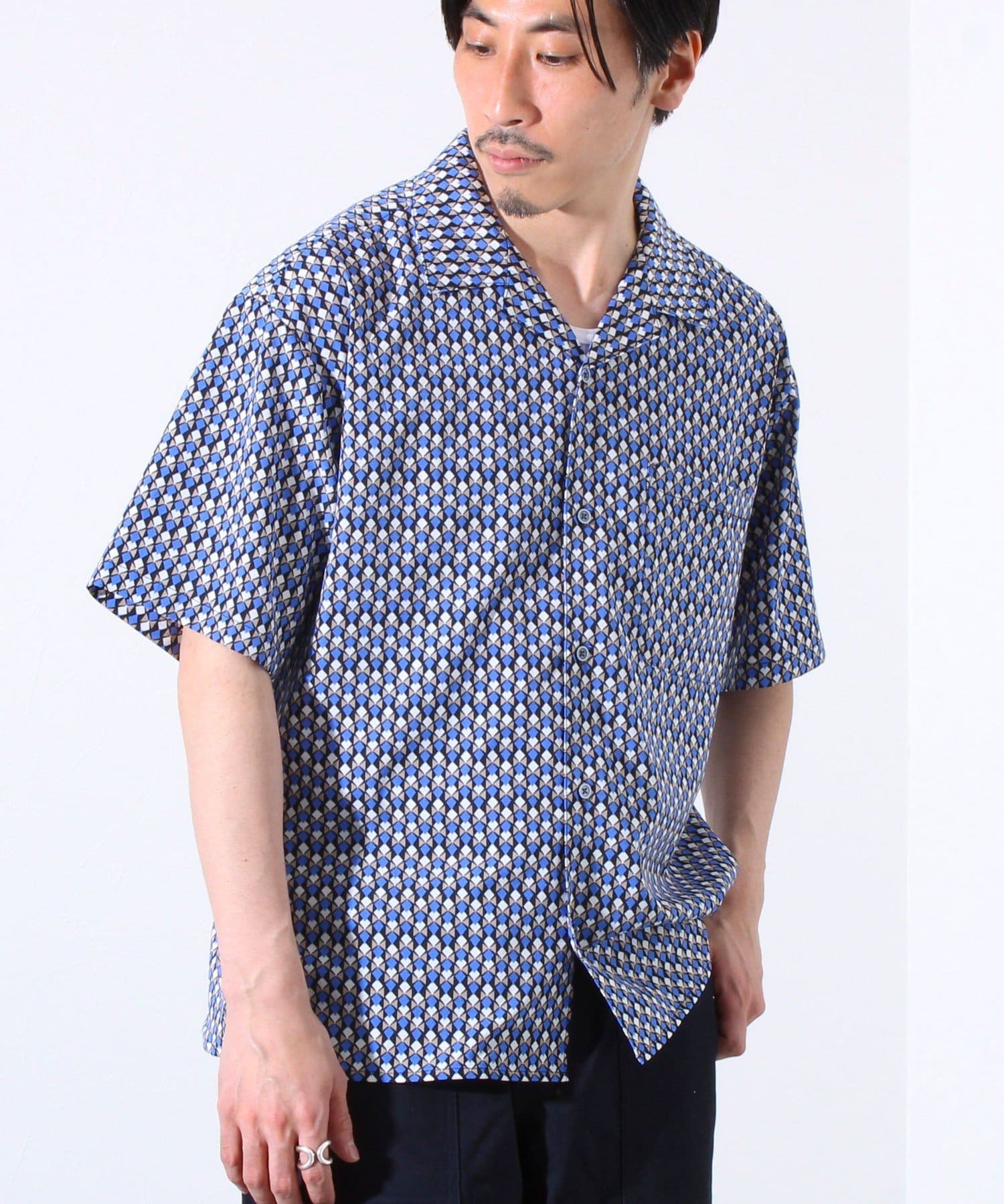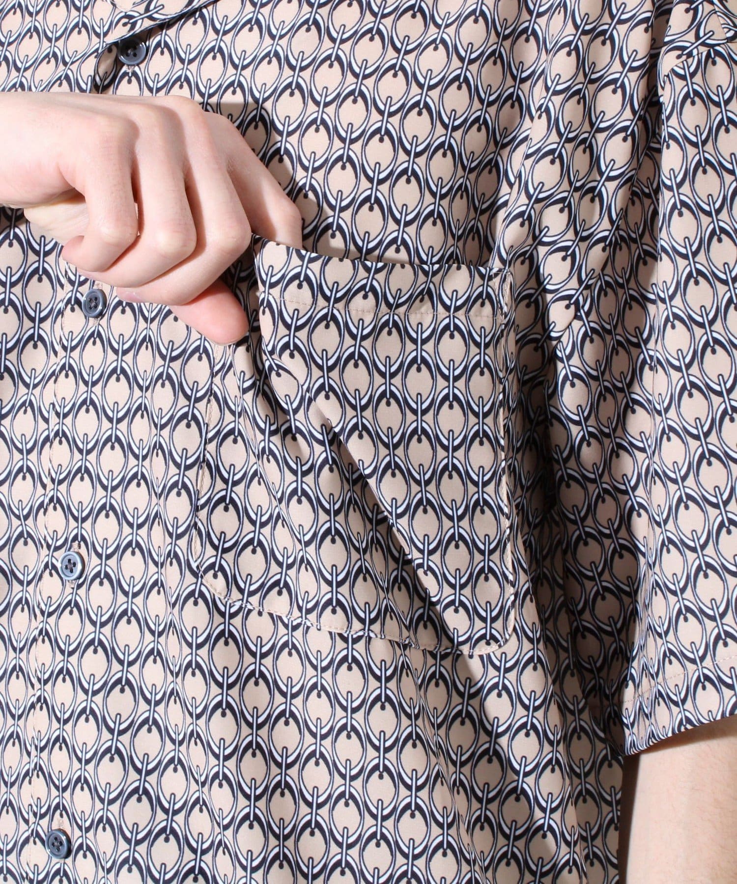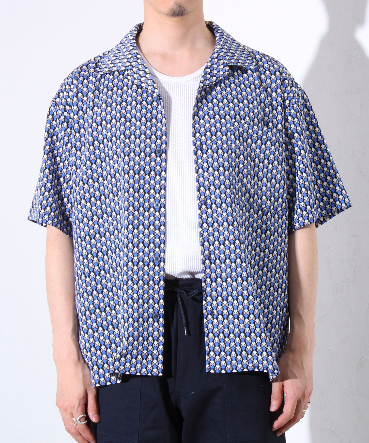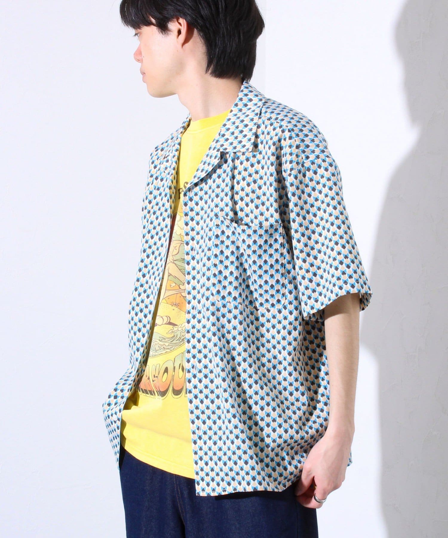 【GLOSTER】オールオーバーパターン 柄シャツ アロハシャツ オープンカラー