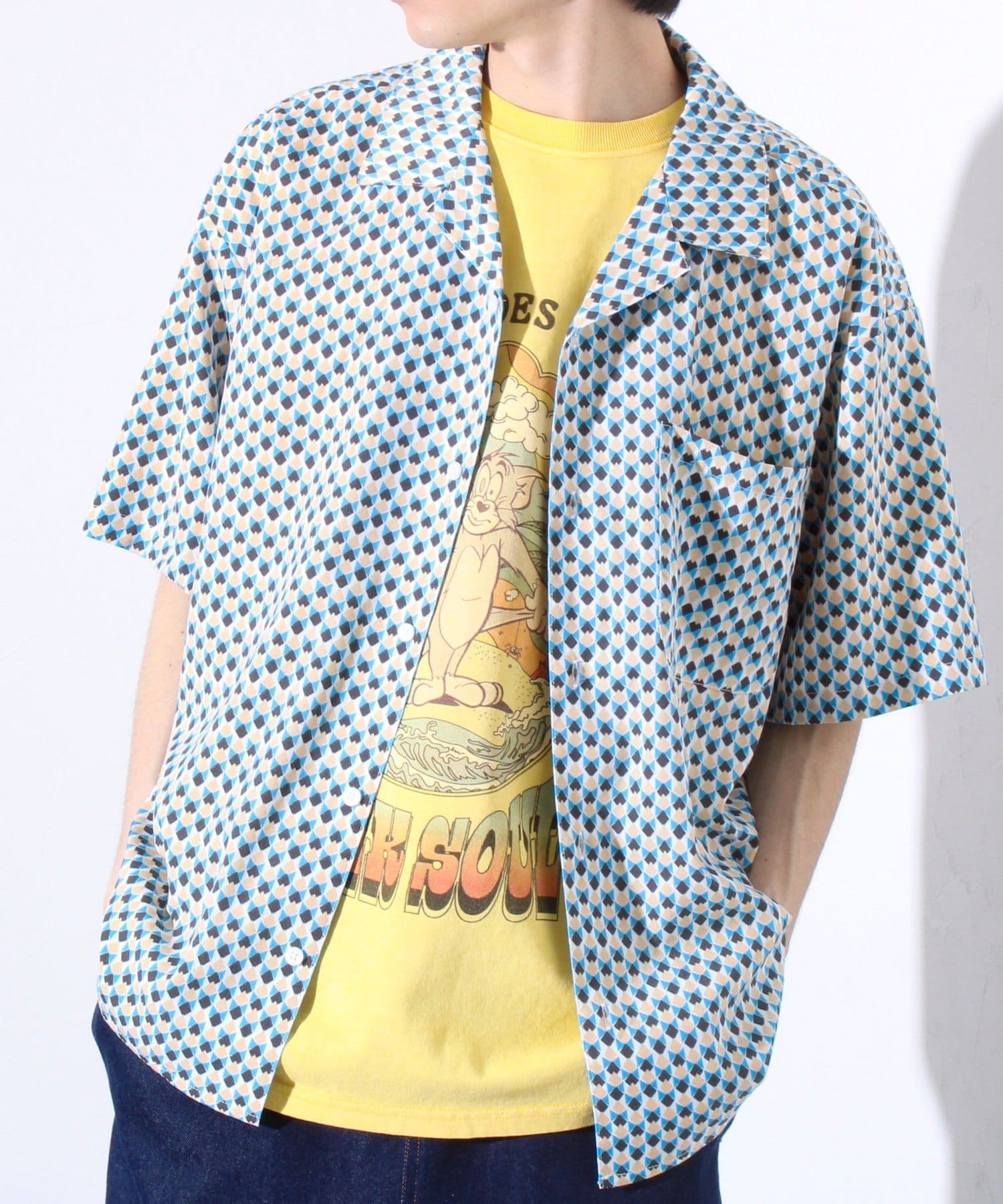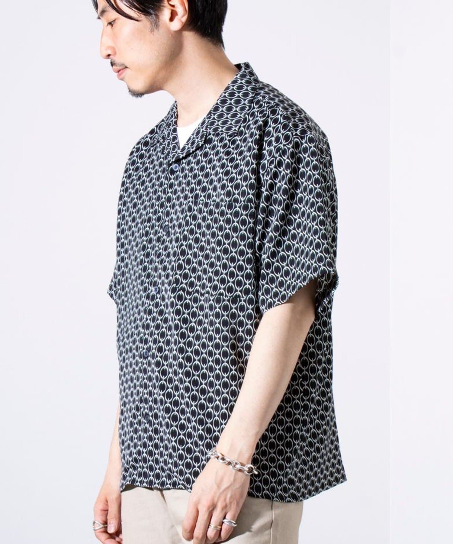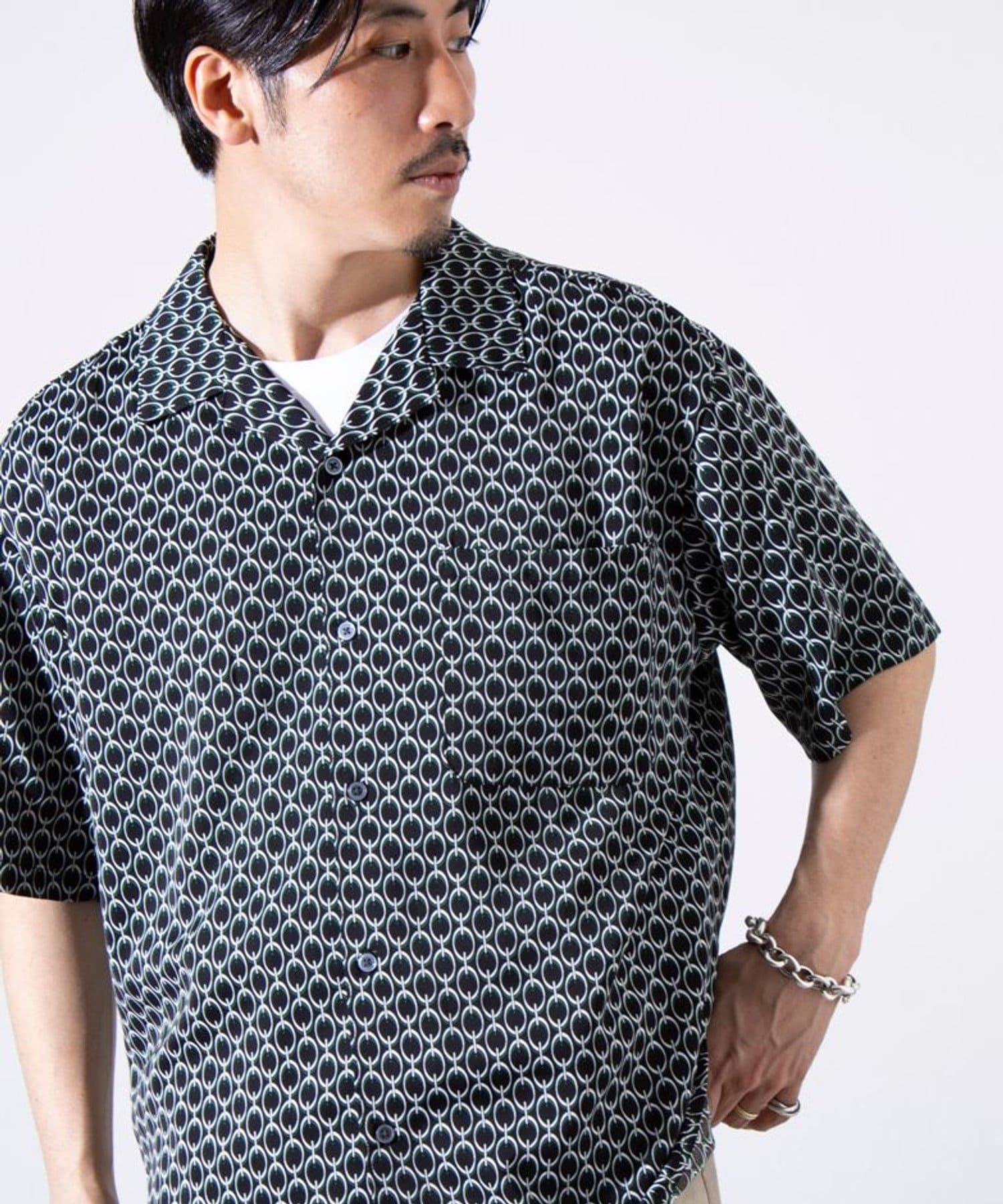 【GLOSTER】オールオーバーパターン 柄シャツ アロハシャツ オープンカラー