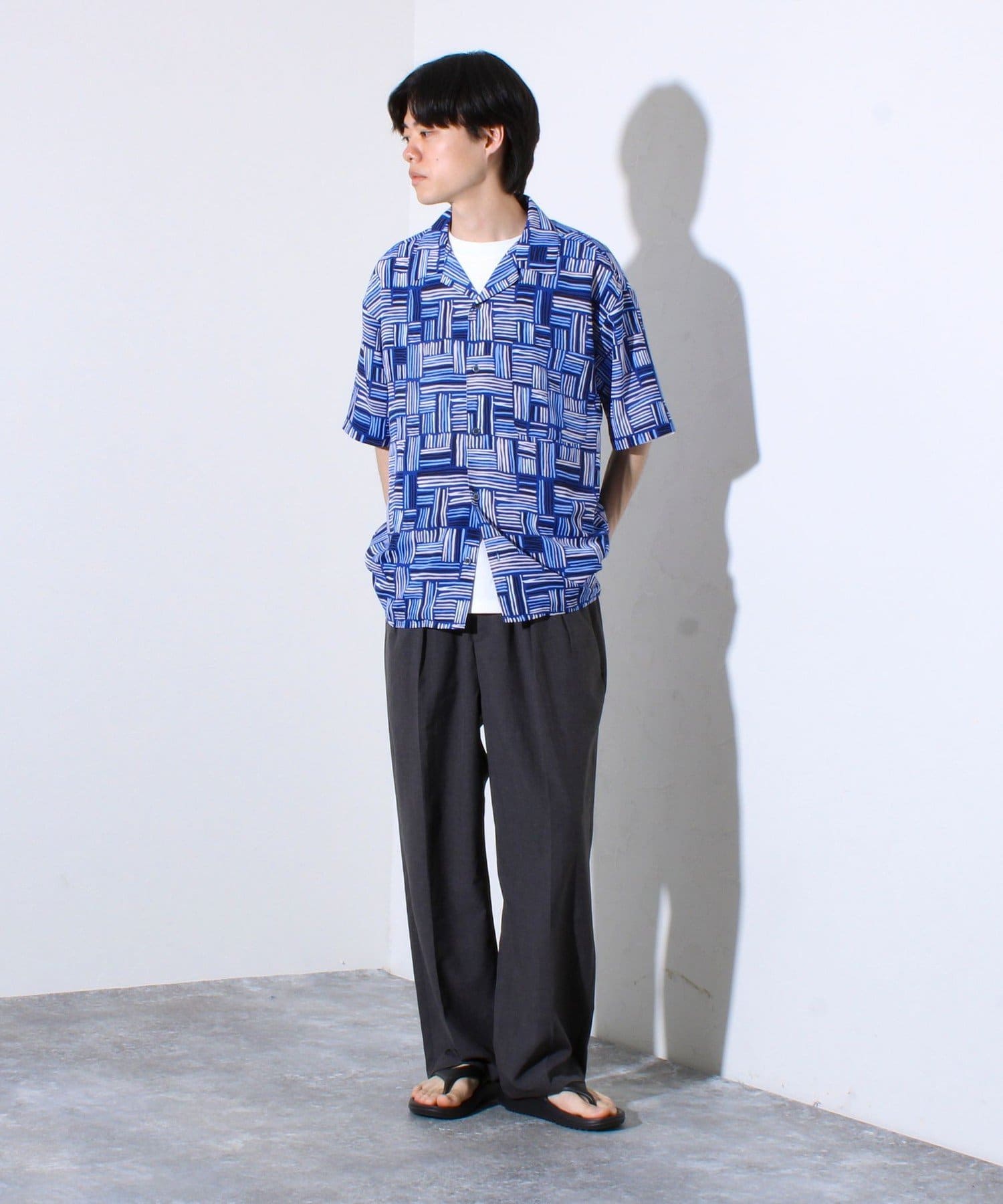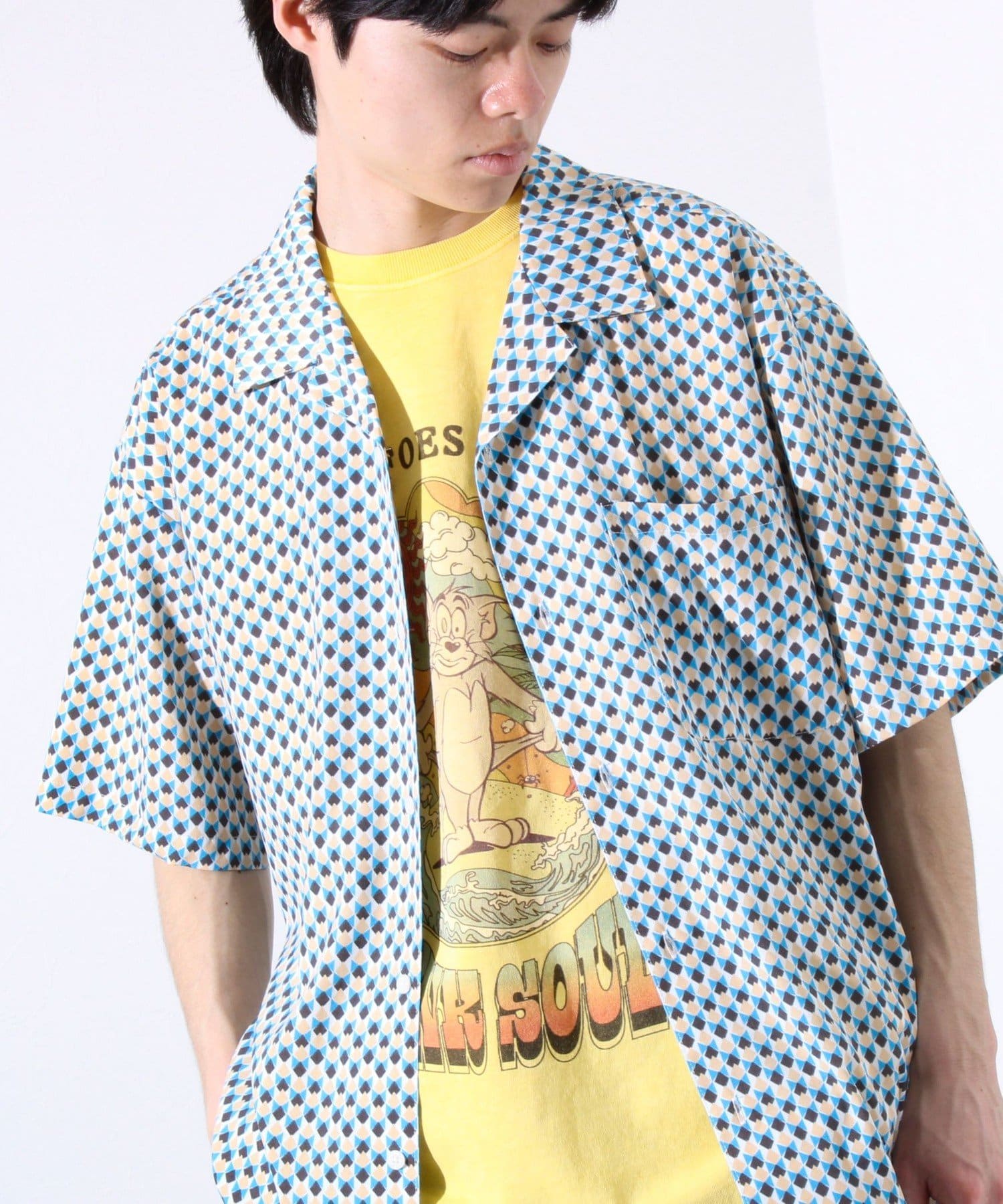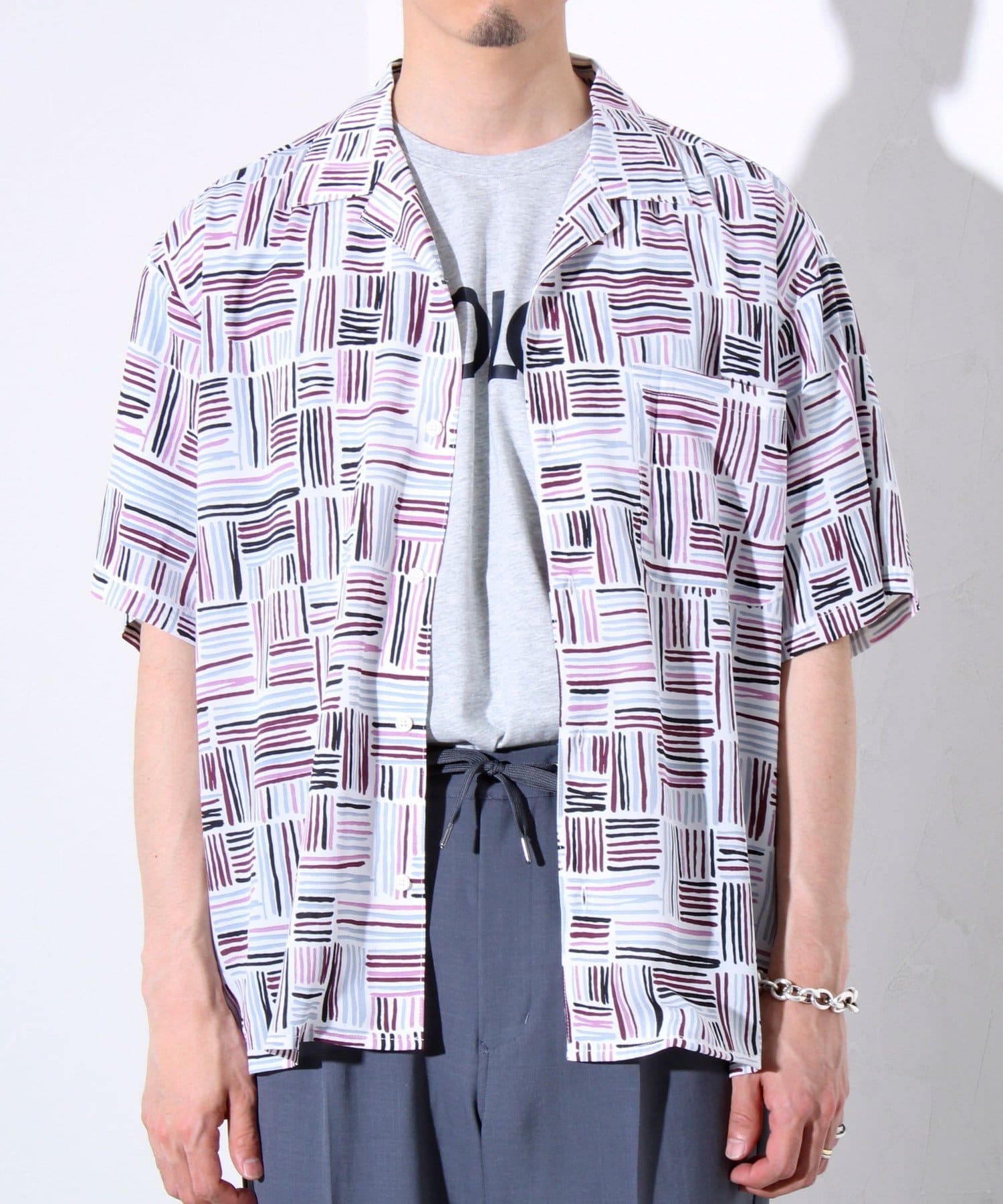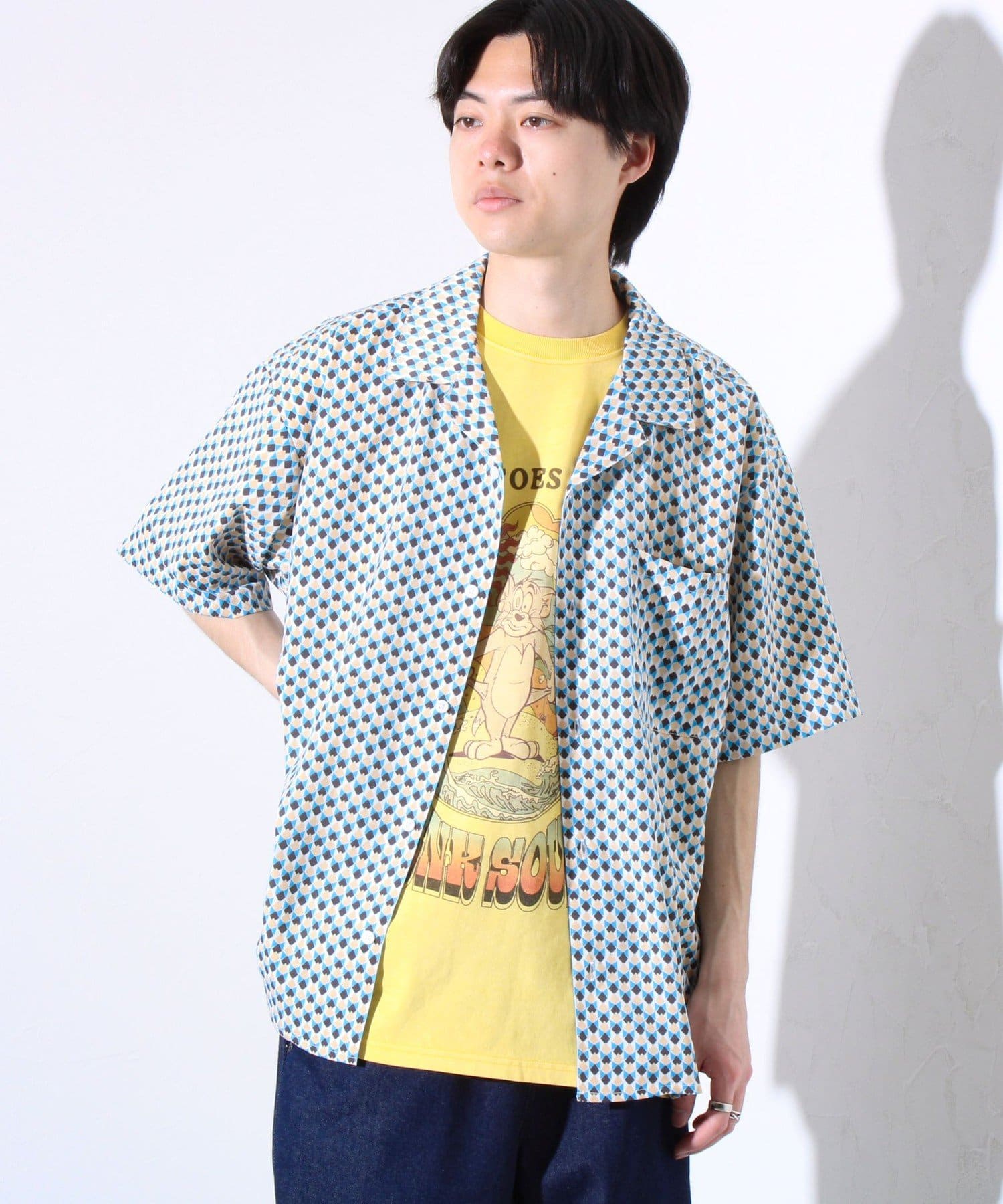【GLOSTER】オールオーバーパターン 柄シャツ アロハシャツ オープンカラー